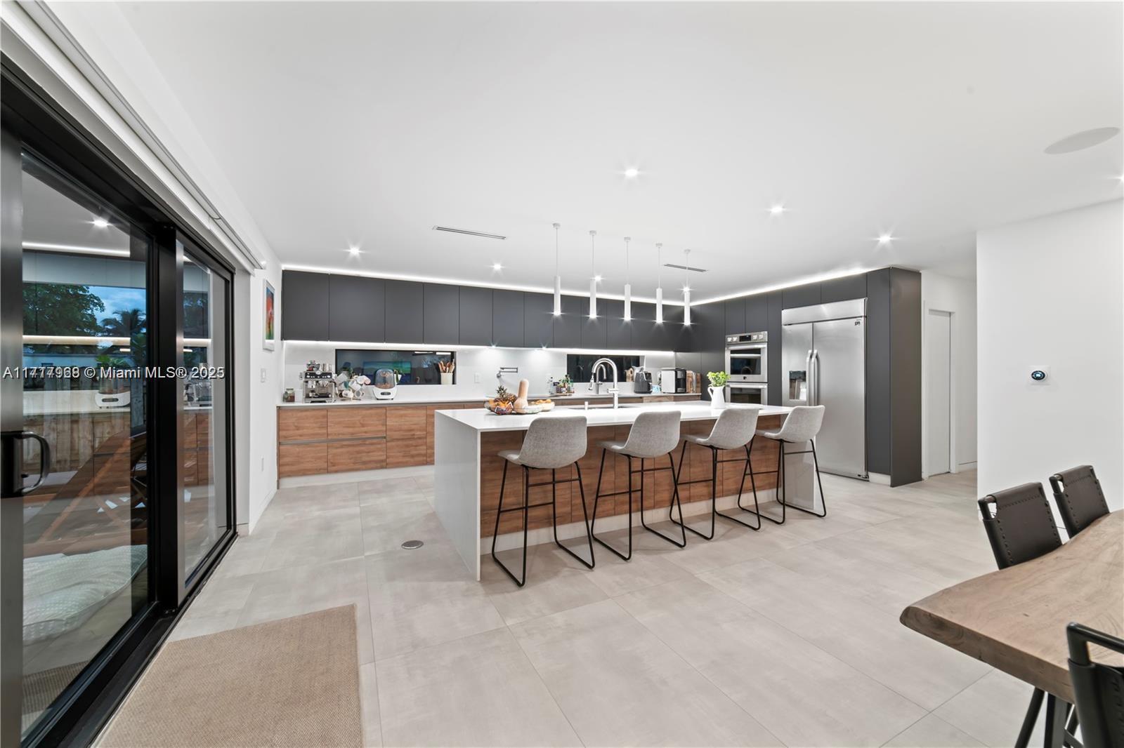 Fully renovated home in the heart of Emerald Hills, 4 beds / 3.5 baths. All renovations done with permits. Open and Spacious layout with new gourmet kitchen with 2 ovens, 2 sinks and big island with quartz counter tops. Big master bathroom with a double shower and freestanding shower, Huge gorgeous custom made walk-in closet. Three of the bedrooms with private full bathroom. New flat roof installed in 2023, Featuring all hurricane Impact windows Security system with strategic cameras, Interior and exterior Sonos sound system, double car garage, tons of storage space, new AC unit, outdoors kitchen with a BBQ area, stylish patio and new finish and outdoor TV stand, renovated pool. A must see!