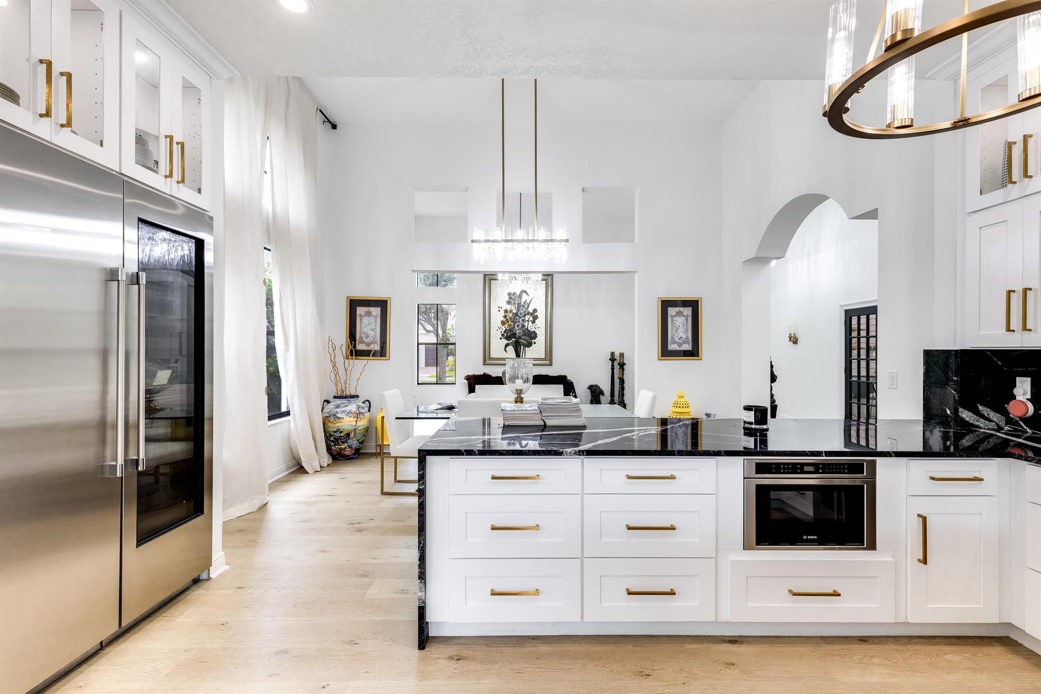 Step into this stunning architectural masterpiece, a fully renovated gem that exudes warmth, style, and modern elegance. Nestled in a prime location, this hidden jewel offers an abundance of natural light and a thoughtfully designed floor plan, perfect for both relaxing and entertaining.As you enter, you'll be captivated by the spacious living room featuring soaring ceilings, creating an airy ambiance that flows seamlessly into the formal dining room. Whether hosting a dinner party or enjoying a quiet evening, this space provides the ideal setting for creating unforgettable memories.At the heart of the home lies the state-of-the-art kitchen, a chef's paradise equipped with gourmet appliances, sleek countertops, and ample storage. Every detail has been meticulously curated