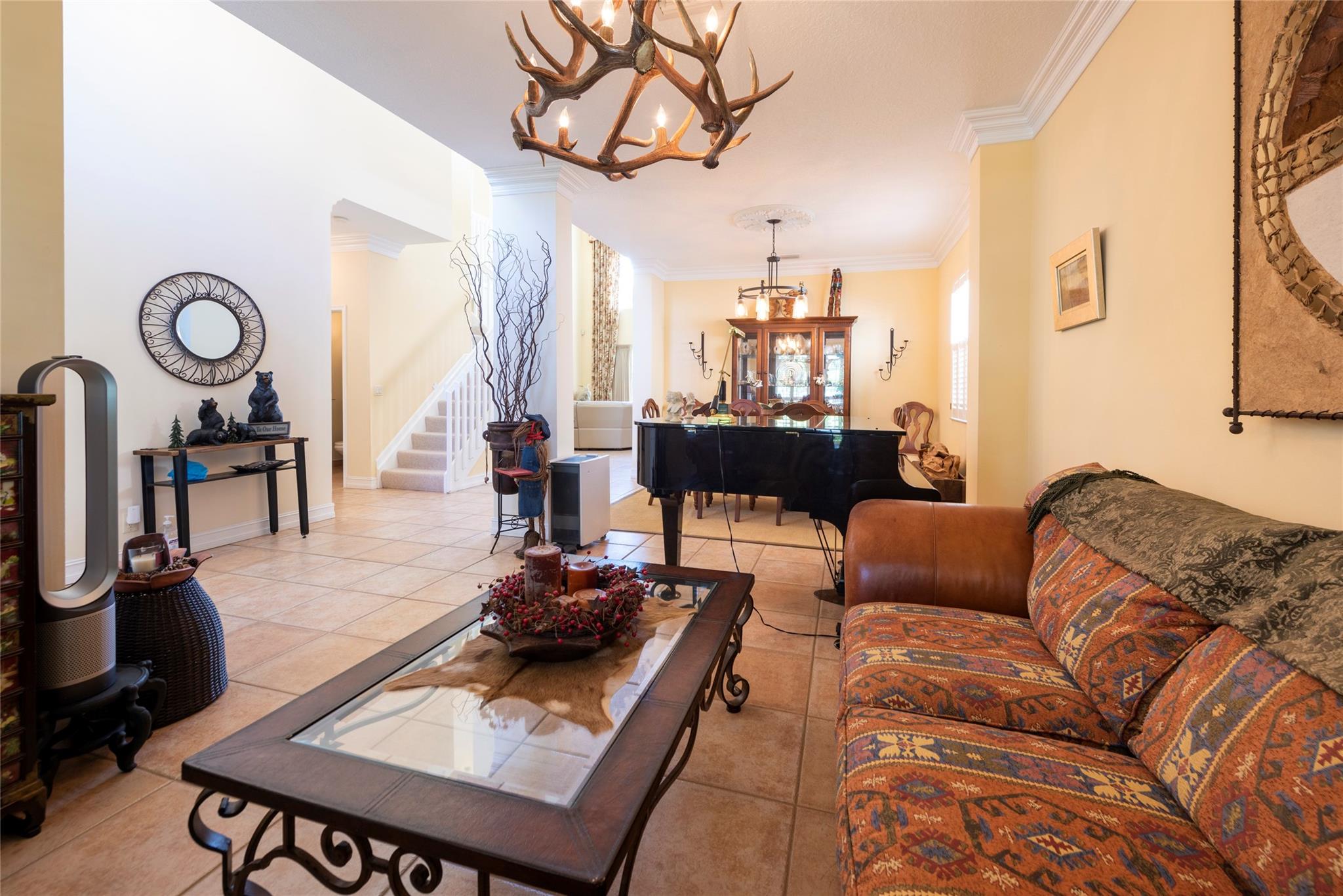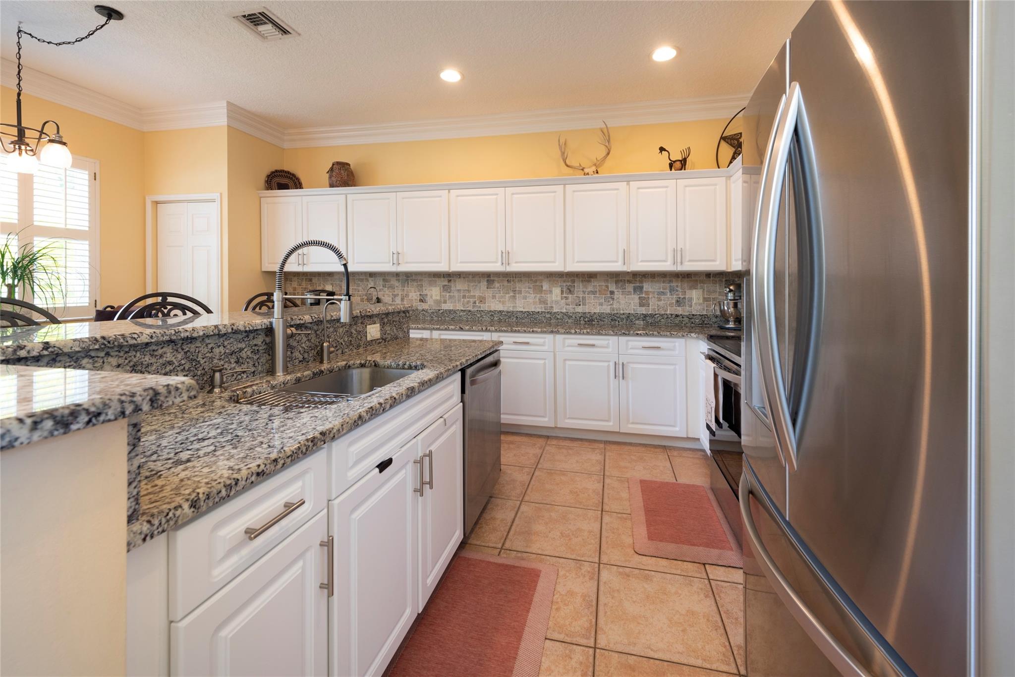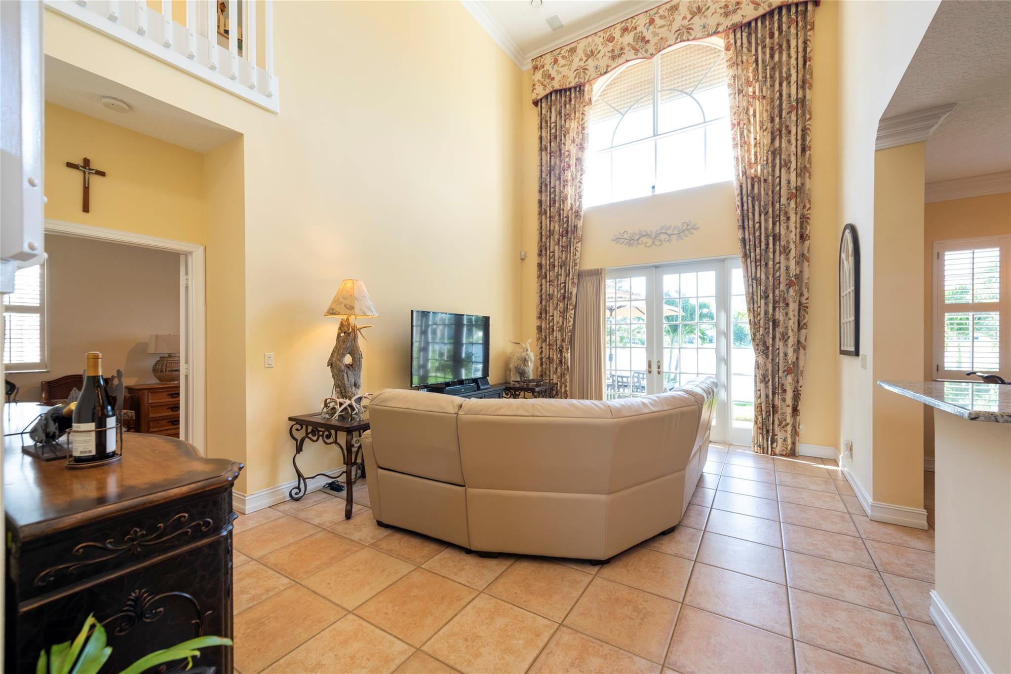 Stunning Lakefront views from this 4 BR/2.5 BA/ 2 car garage, featuring METAL barrel roof, 1st floor impact windows & rear French doors, 2nd floor accordions, 2 Rolladen shutters on large bay windows. Updated kitchen with spacious granite counters, snack counter, & eat in kitchen area. Kitchen opens to the family room featuring volume ceiling. LED lighting, and overhead speakers. Plenty of natural light. Master Suite downstairs. Upstairs carpeted. The 4th BR overlooks the lake & has a custom built-in office for a fantastic work from home environment. Internal laundry room w/ updated cabinets, plantation shutter window treatments, kitchen H2O filtration system, lightning rod system, & rain gutters. Electrical panel/box wired to support an external portable generator.