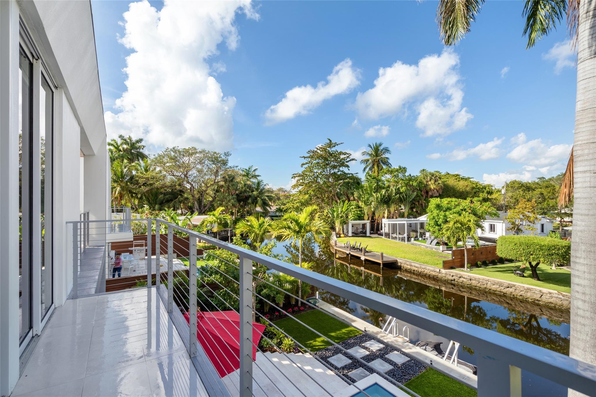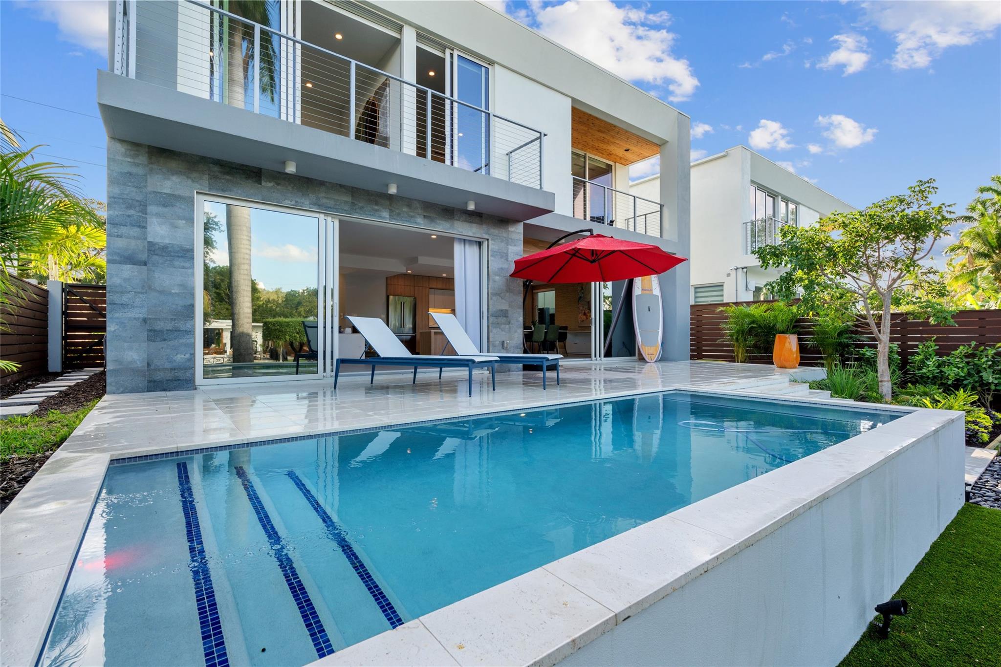 Brand New Museum Modern Waterfront Estate with Private Pool and Jetski Dock, minutes to Downtown Fort Lauderdale & FLL International Airport. This 4 Bedroom plus den, 4 Full Bath, all en-suite, is sited on 50' of waterfront with only one fixed bridge offering quick ocean access. Recently completed in Sept. of 2024, this 2 story modern boasts high end designer finishes, a 2 bay garage, huge master closet, and includes a full-coverage builder warranty. The waterside backyard and private sun-splashed pool is quiet and bright with low maintenance tropical landscaping and outdoor lighting. Enjoy all of the same benefits as a Las Olas waterfront front home for a fraction of the price!