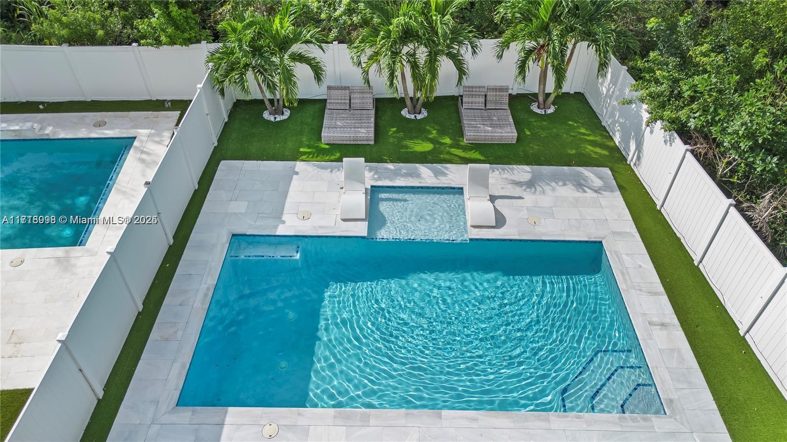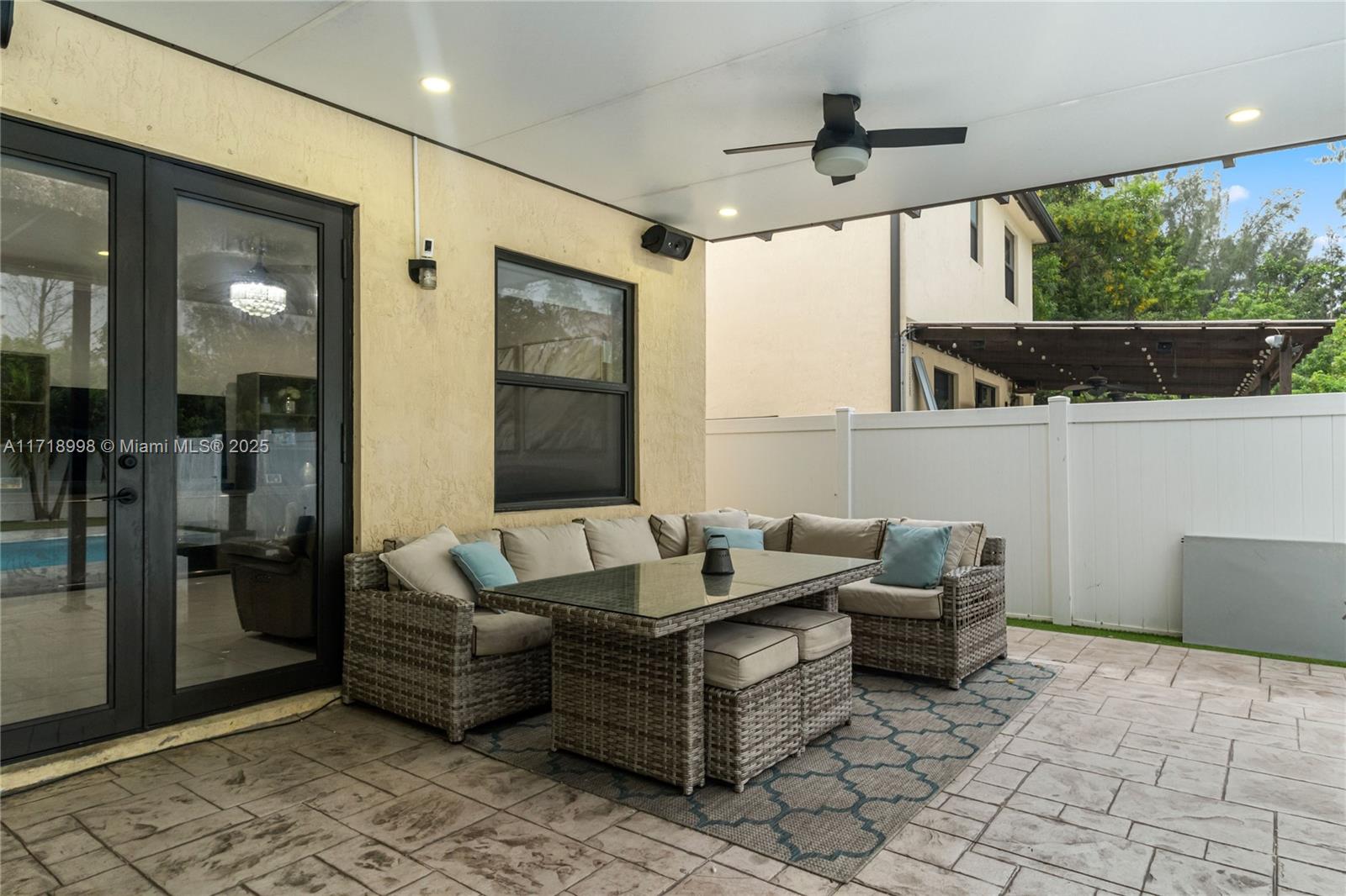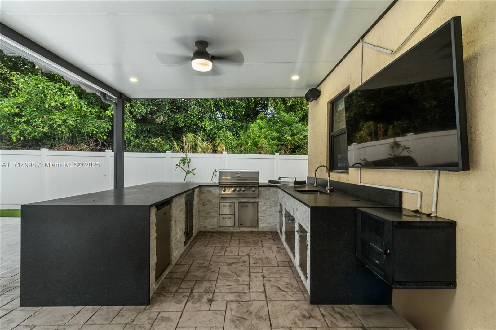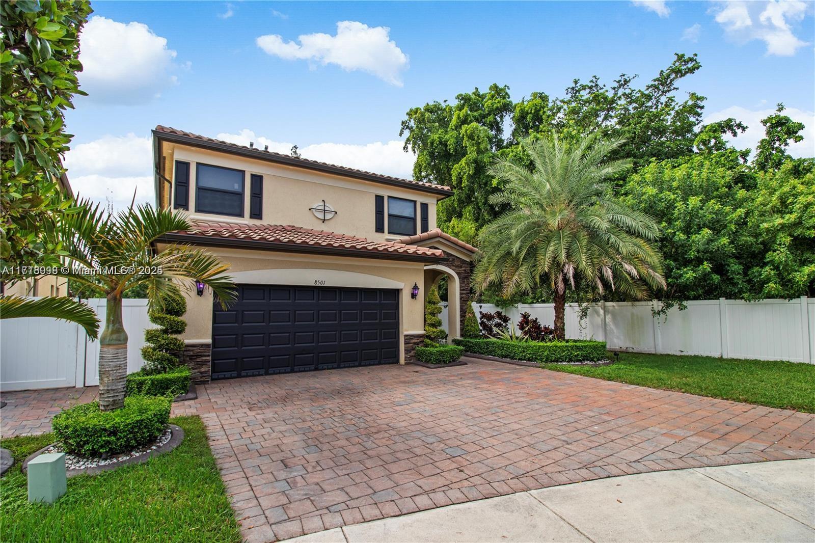 Located in a Cul De Sac! This beautiful Single Family Home is the only one with all these features and upgrades available in the market: One of the four bedrooms is located on the first floor with a full bathroom, that makes it perfect for a home office or the family convenience / privacy. Extended driveway that allows you to park 4 cars outside + 2 parking spaces inside the garage. Porcelain floor on the first floor, crown molding, newer and upgraded appliances in kitchen, high impact windows and doors throughout the house. The patio features a 14 x 28 pool (salt water, lights at night) and a covered area with a modern outdoor kitchen and counter that includes bbq, gas stove, wine cooler, mini fridge. Premium location in the perimeter, so no other house behind your patio