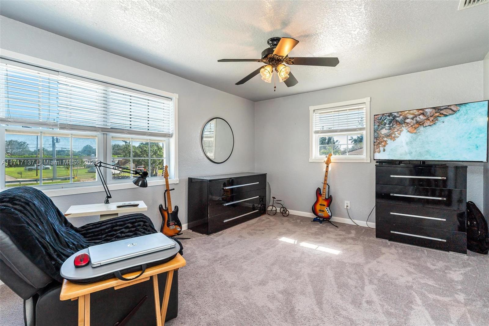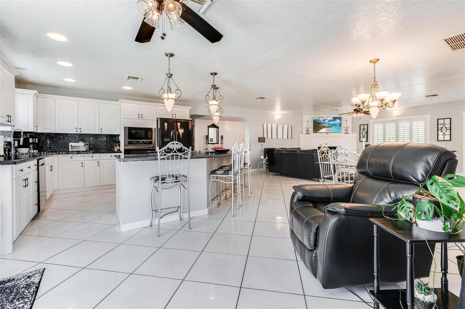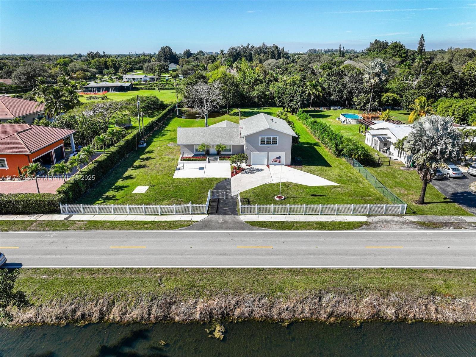 If you have been looking for a pristine Davie acre home with a storybook view...this one is for you. Custom built 5 bedroom with almost 3000 sf under air & over 43,500 sf lot. Gated property with a garage that fits 3 cars & has a safe room. Step in to the open airy floor-plan featuring recently painted great room, dining area, snack bar & gorgeous open kitchen. Primary bedroom conveniently located on first floor. Large bedrooms & handy office space upstairs. Upgrades include plantation shutters, granite & wood cabinetry, pretty flooring & rated garage doors, water filtration system & beautifully updated bathrooms. FPL just put electric lines under ground. Enjoy your private pond view from raised deck and covered patio. Pad with electric is ready for hot tub or RV. Terrific Davie schools