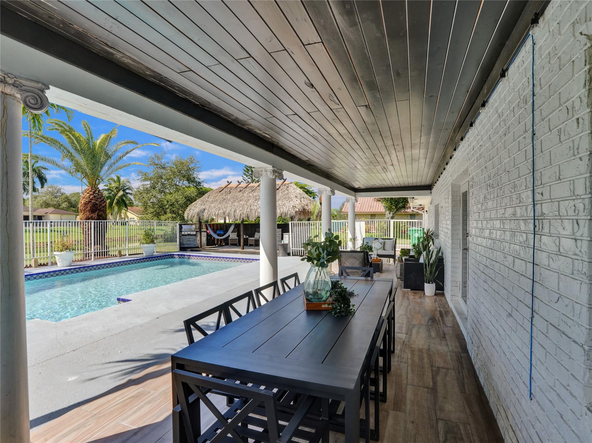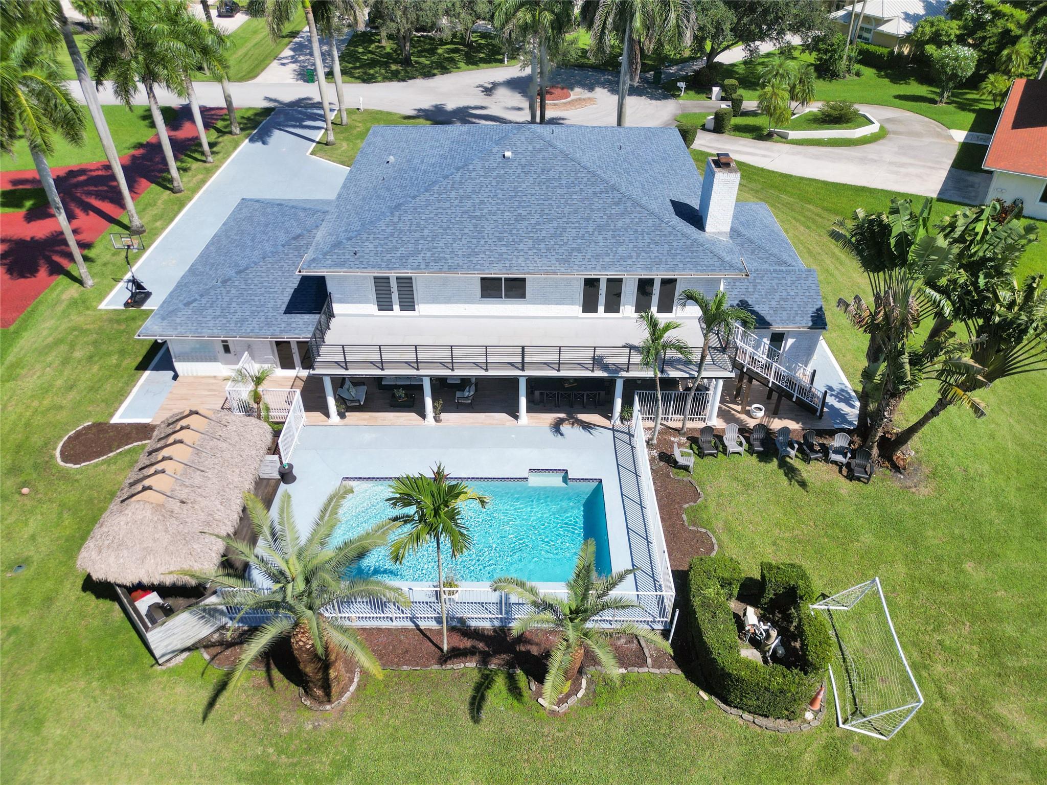 Welcome to this completely renovated&spacious estate on a sprawling 40,289 sqft lot. Immediately greeted by a grand circular driveway lined w/majestic palm trees;this expansive home features 6 bedrooms, one of which is used as an office w/a fireplace,& a bonus den off the primary—ideal for an addtl office, library, nursery, or gym & 5.5 bathrooms. Opulence exudes from the stunning foyer w/a spiral staircase & dripping crystal chandelier. Enjoy mirrored living rooms, 2 primary suites, a beautifully renovated kitchen, elegant bathrooms & gorgeous tile floors. The upstairs primary offers a fireplace & balcony w/views of the lush grounds & sparkling pool. Entertain under the covered patio & tiki hut. Full impact windows & doors complete this move-in-ready masterpiece! Easy to see, call today!