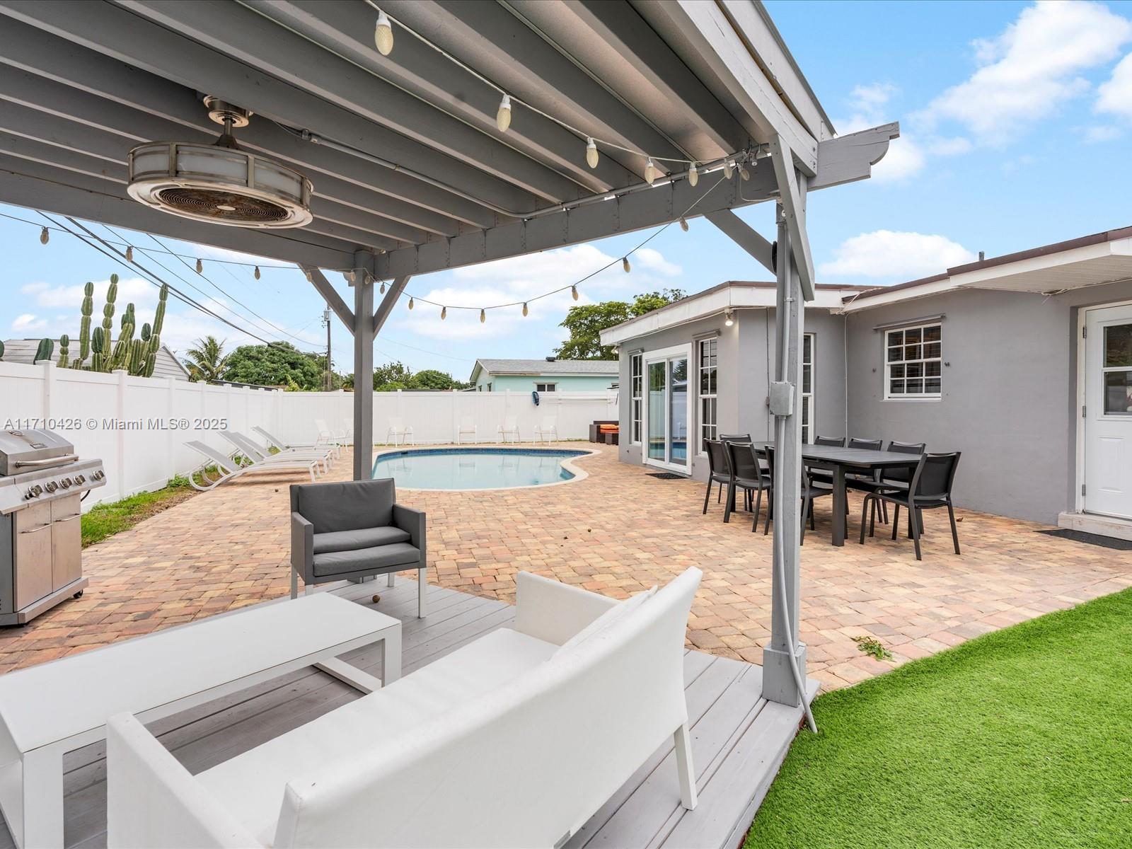 Discover the excitement in this fully remodeled 4 bedroom 2 bathroom home with a fun backyard consisting of a pool, pergola and multiple sitting stations. Ideal for entertaining, the open floor plan features, renovated kitchen and bathrooms, tile floors, and LED lights. The new kitchen is carefully designed for cooking and storage, marble countertops, and top-of-the-line stainless steel appliances. Super close to Publix, unique cafes, and shopping centers. Enjoy the privacy of a fenced backyard. Move-in ready, this home seamlessly combines modern luxury with functionality. Discover the epitome of comfort and style in this meticulously crafted residence.