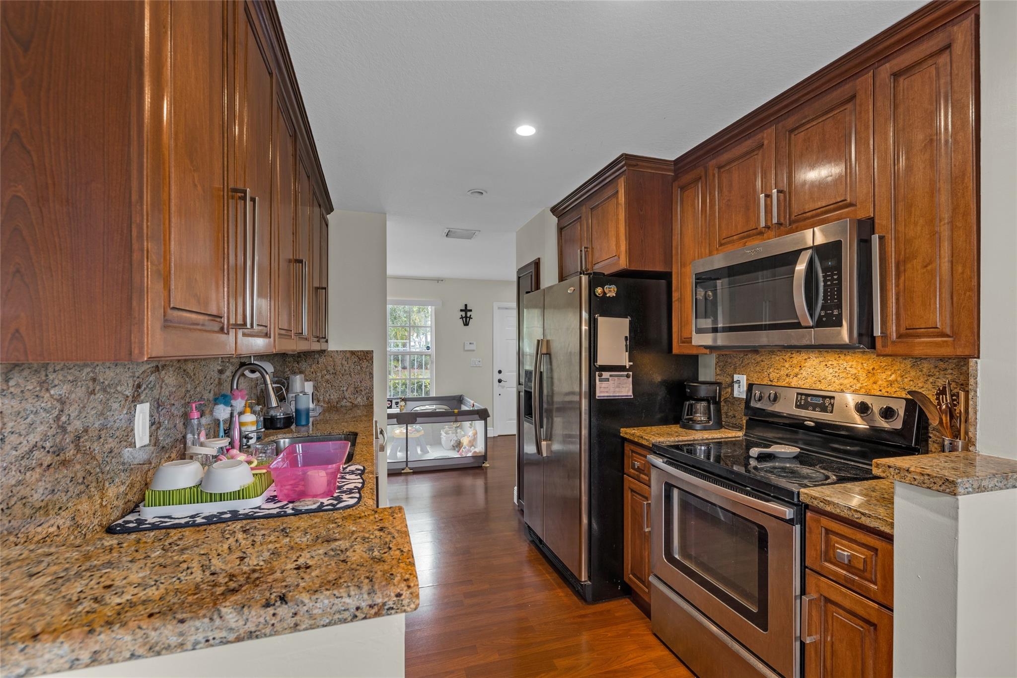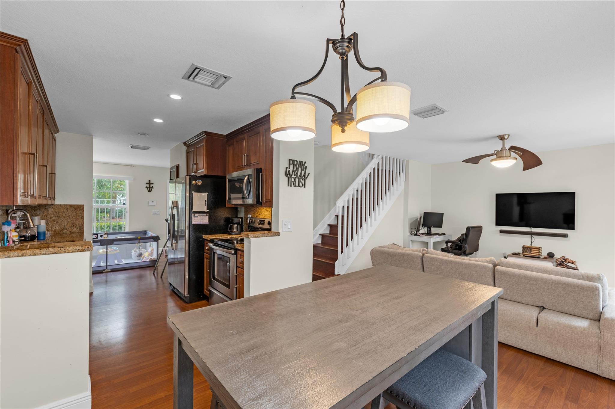 Townhome featuring a completely renovated kitchen, bathrooms, and floors. This 3 bedroom, 2.5 bath home is ready to move in. Laundry room in first floor. Located in the highly desirable community of Pembroke Isles. It includes a covered garage space and an additional space in the driveway and guest parking. Low HOA covers landscaping, cable, internet, 24-hour surveillance, guard patrol, and access to a recently renovated clubhouse. Enjoy a resort style living with amenities that include: Gym, Yoga room, Sauna, 3 pools, 2 playgrounds, volleyball court Soccer field Basketball, tennis, and pickleball courts, Boat ramp and trails. Conveniently located close to I-75, shopping centers, restaurants, hospitals, and A-rated schools.