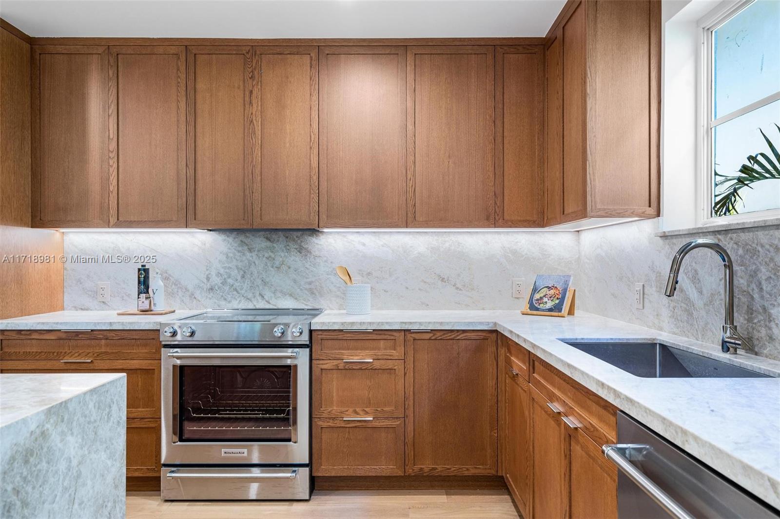 Discover this exquisite 1925 Old Spanish-style residence in the heart of Coral Gables. With its rich architectural details and a complete remodel, this home seamlessly blends historic charm with modern luxury. Enjoy a new electrical system, PVC plumbing, a brand-new roof, and impact windows/doors for peace of mind. The stunning kitchen features natural oak cabinetry and luxurious Taj Mahal quartzite countertops, perfect for entertaining. Step outside to a beautifully landscaped brick paver patio and a fully functioning attached guest house, ideal for visitors. Experience the vibrant Coral Gables lifestyle, with lush greenery and nearby dining and shopping.