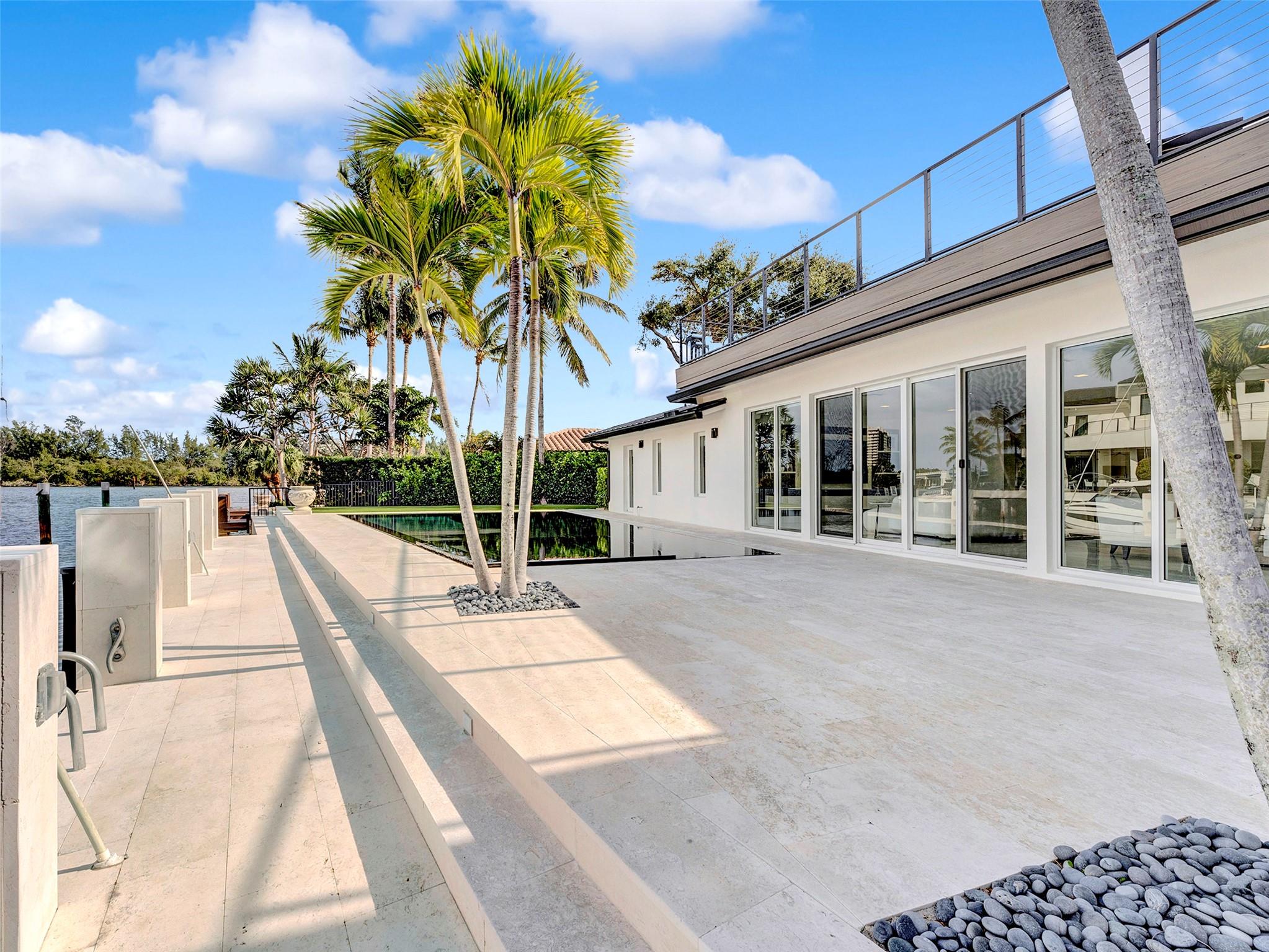Welcome to this stunning, fully renovated waterfront home in the Lake Rogers neighborhood of Boca Raton. Boasting over 115' of dock space, this property is perfect for boating enthusiasts! Step inside to discover a meticulously designed interior featuring a custom kitchen with high-end finishes, bespoke cabinetry, and an open-concept layout that seamlessly blends style and functionality. Sunlight pours into every room, highlighting breathtaking water views from every angle. Outdoors, indulge in your private oasis with a custom-designed pool just steps from the Intracoastal. Perfect for entertaining or relaxing, the spacious patio offers a seamless indoor-outdoor flow. Offering a short 5 minute walk to the beach, this home is a masterpiece of design and location!