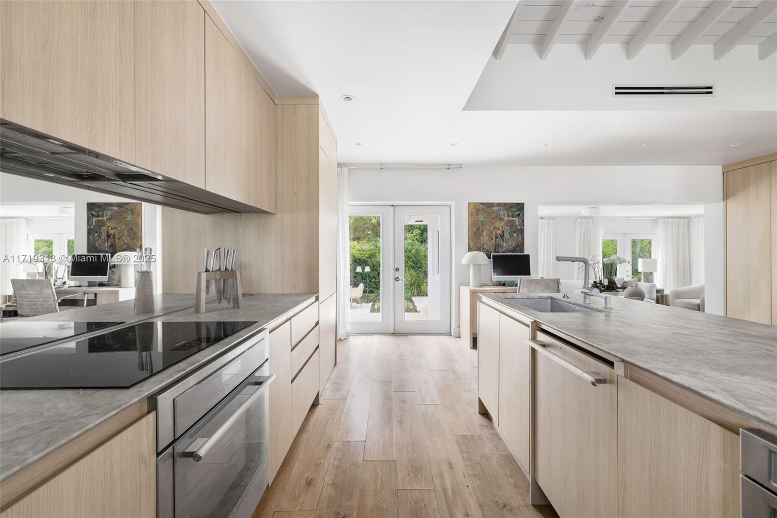 This stunning Coral Gables home features a perfect blend of modern design and timeless elegance. Vaulted ceilings and an open floor plan create a sense of space and light. The home boasts impact windows, wood laminate flooring, and custom built-out closets. The gourmet kitchen includes Thermador appliances and Taj Mahal Quartzite countertops. The bathrooms have been renovated with high-end finishes and electric toilets for added luxury. Outdoors, enjoy a private 10,000 sq ft lot with a Florida Coral Stone terrace and beautiful landscaping. A refreshed exterior, a new barrel clay tile roof, and a 1-car garage add convenience and style to this exquisite​​‌​​​​‌​‌​​​​‌‌​‌​​​​‌‌​​‌‌​​‌‌ home.