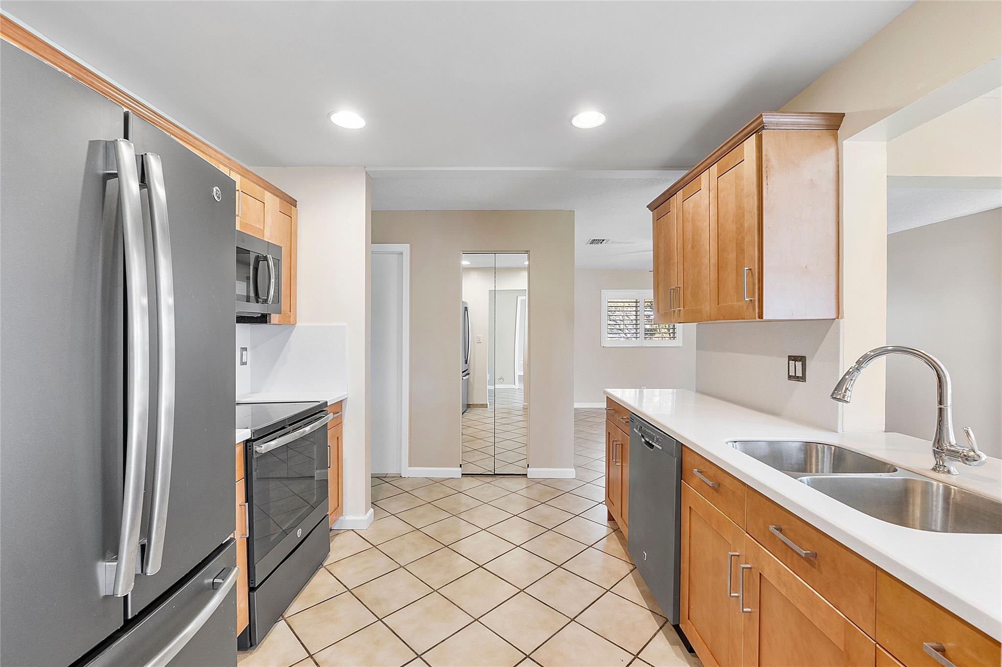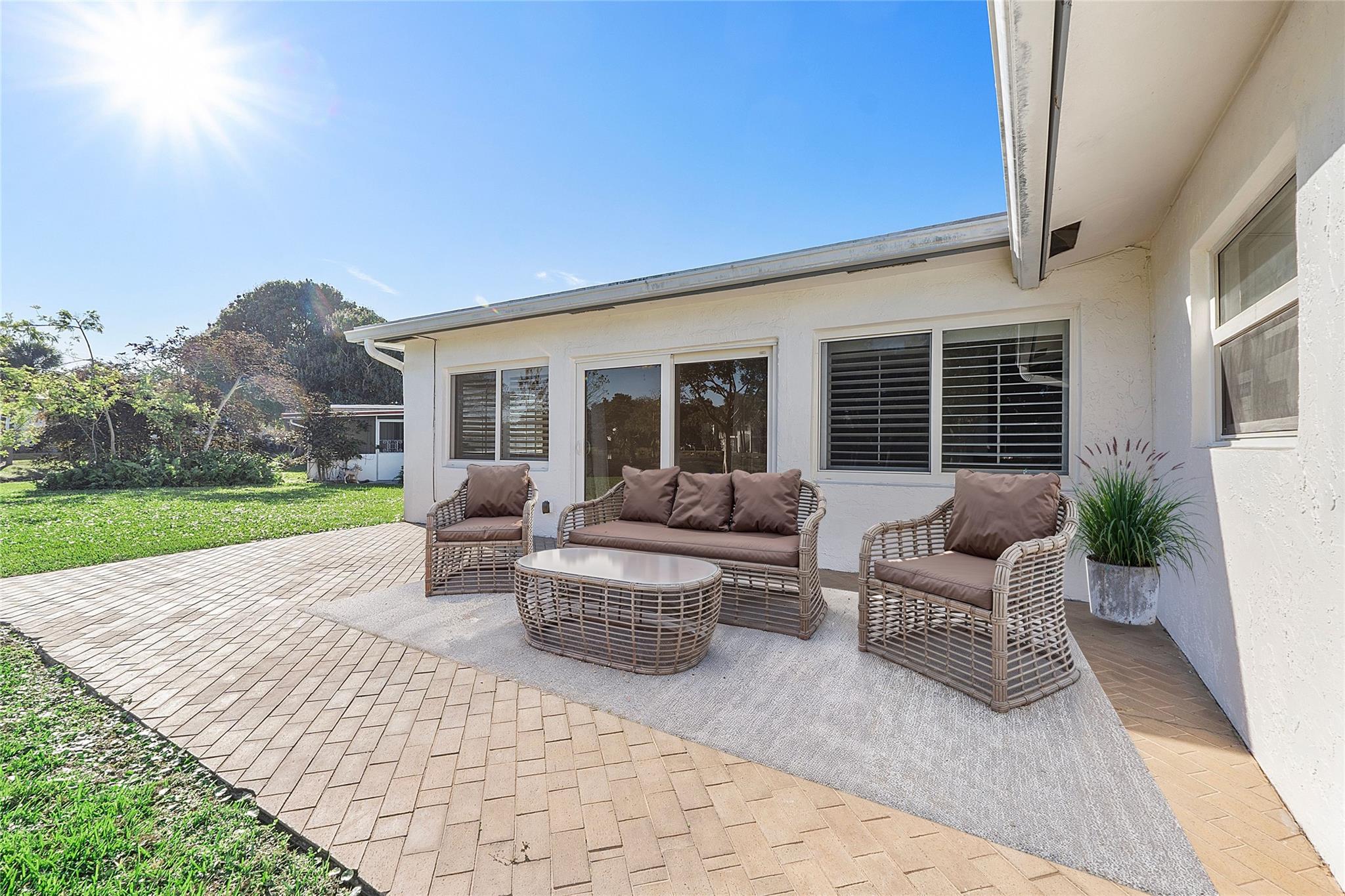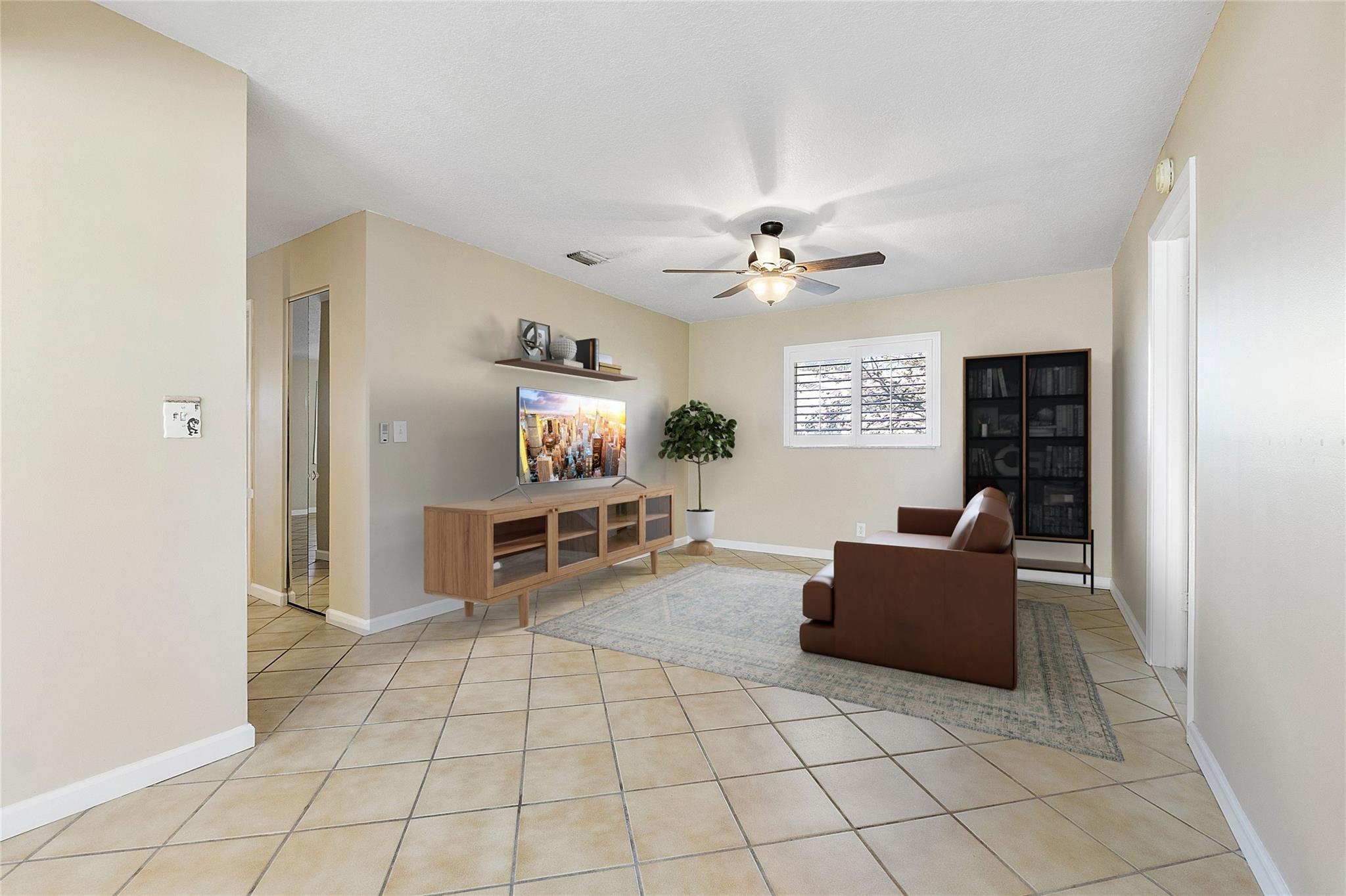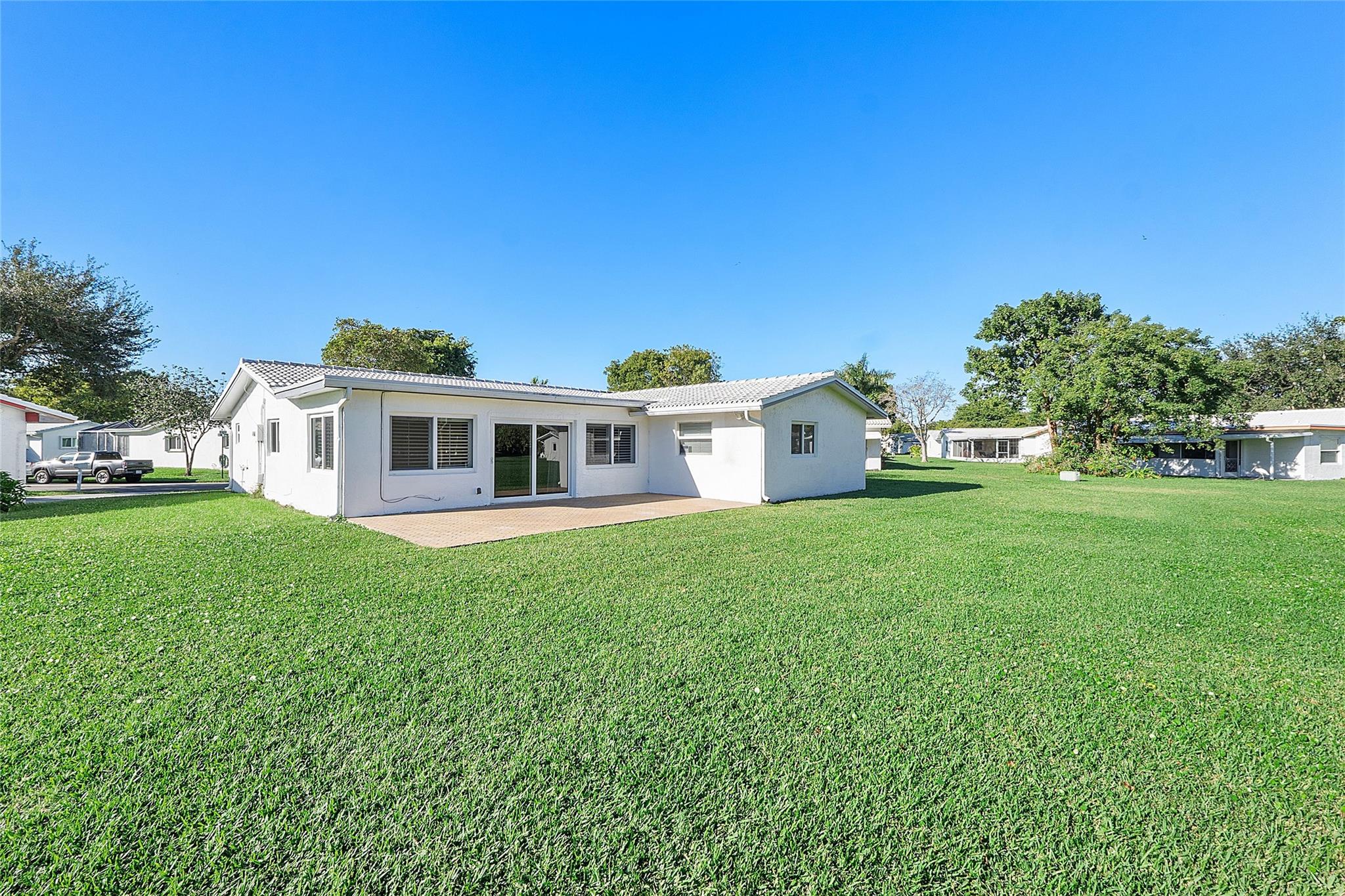 Discover the perfect blend of comfort and style in this beautifully maintained home. Tile flooring flows throughout, complementing the updated kitchen with white quartz countertops, wood cabinets, and stainless-steel appliances. Natural light fills the living areas, creating a warm ambiance. Situated on a desirable lot, this home offers privacy and tranquility. Enjoy a spacious backyard with serene water views ideal for entertaining or relaxing. Hurricane impact windows and Plantation shutters provide both peace of mind and style, while the HOA handles the roof and lawn for easy living. Located in Lauderdale West, a 55+ community with exceptional amenities, residents have convenient access to highways, shopping, parks, golf, and airports. Make this charming home yours today!