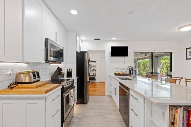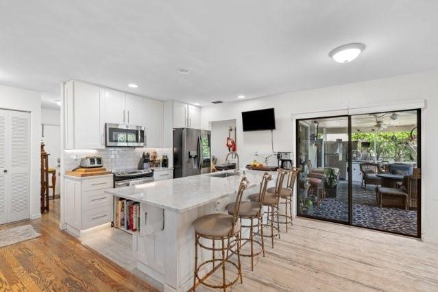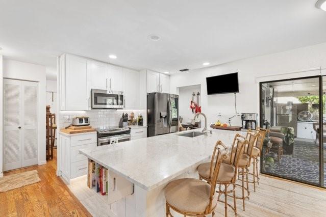 Beautiful 3 bed, 2 bath single-family home with a split floor plan, 2-car garage, and private pool. No association! Features include Carrara marble countertops, shaker cabinets, SS appliances, real red oak wood floors, and flat ceilings with LED lighting. Equipped with a top-tier Trane A/C with new ducts, hurricane shutters and impact windows. Freshly painted exterior. Enjoy an open-concept layout, shaded back patio, and corner lot privacy. Walk to Mullins Park, Parkside Elementary, and the shops/restaurants at “The Walk.” Perfect for entertaining and family living!