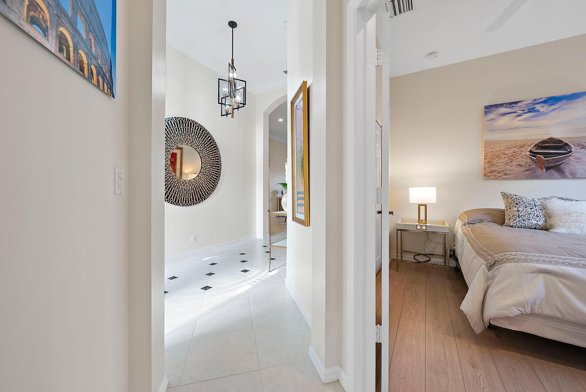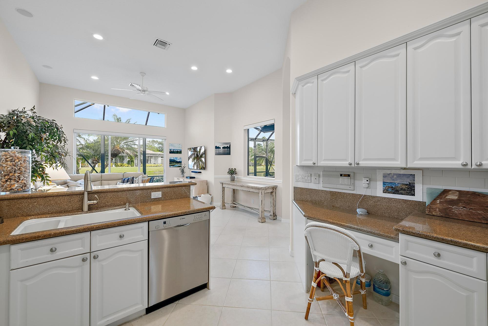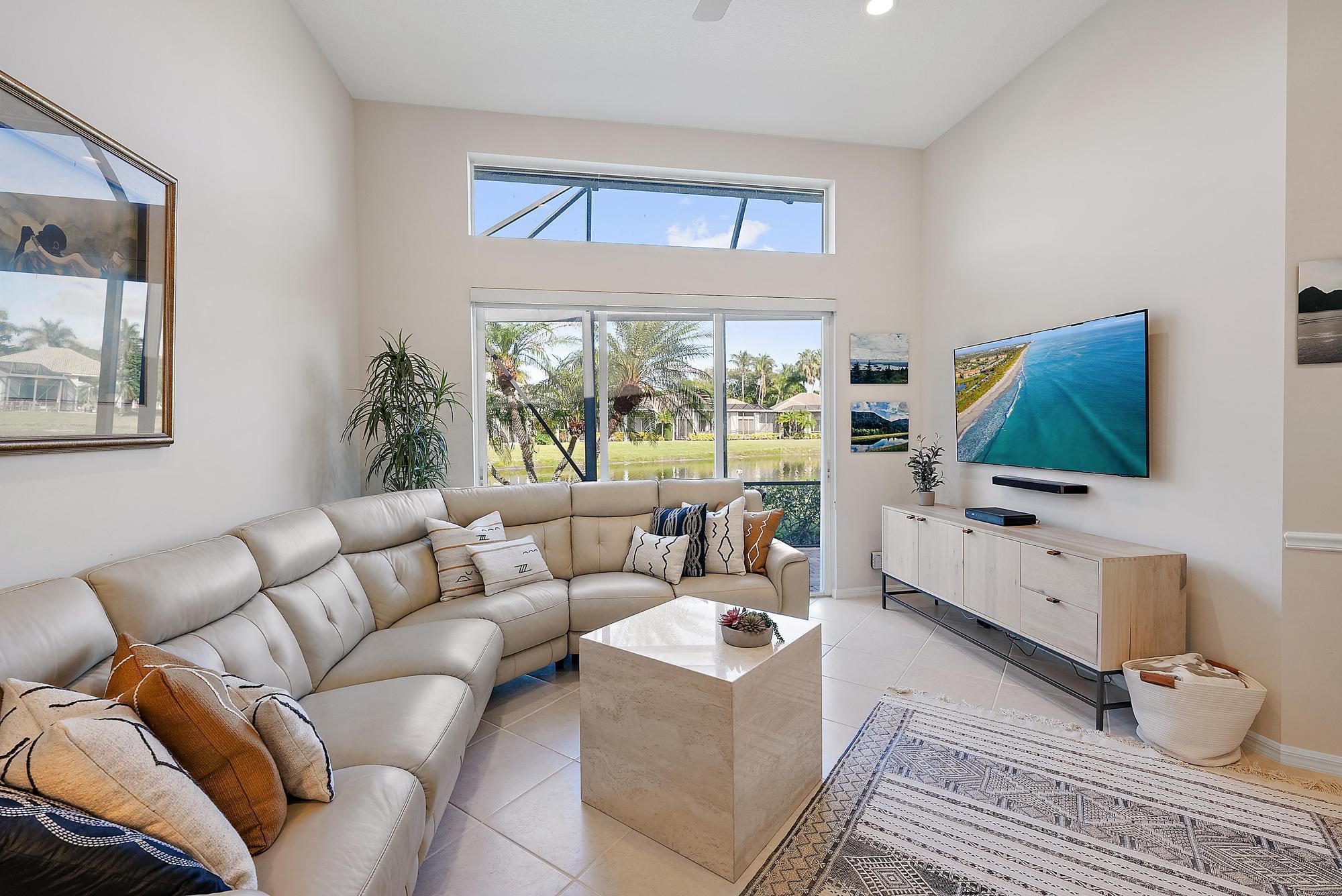 BRAND NEW 2025 ROOF! With 50 FEET OF WATER FRONTAGE, this 3BR/2.5BA upgraded home expands beautifully to the outdoors. Enjoy serene water views from this 2200 SF single-family home. The popular Hamilton floor plan offers soaring ceilings, and generous space. Accordian shutters and Impact Glass double front doors provide ample hurricane protection. Light, bright, and neutral, this immaculate home boasts a redone primary bath, upgraded kitchen with stainless appliances, granite counters, and elegant subway tile backsplash. The large screened enclosure provides fabulous outdoor living space, overlooking the premium lake view. Many upgrades throughout the property: