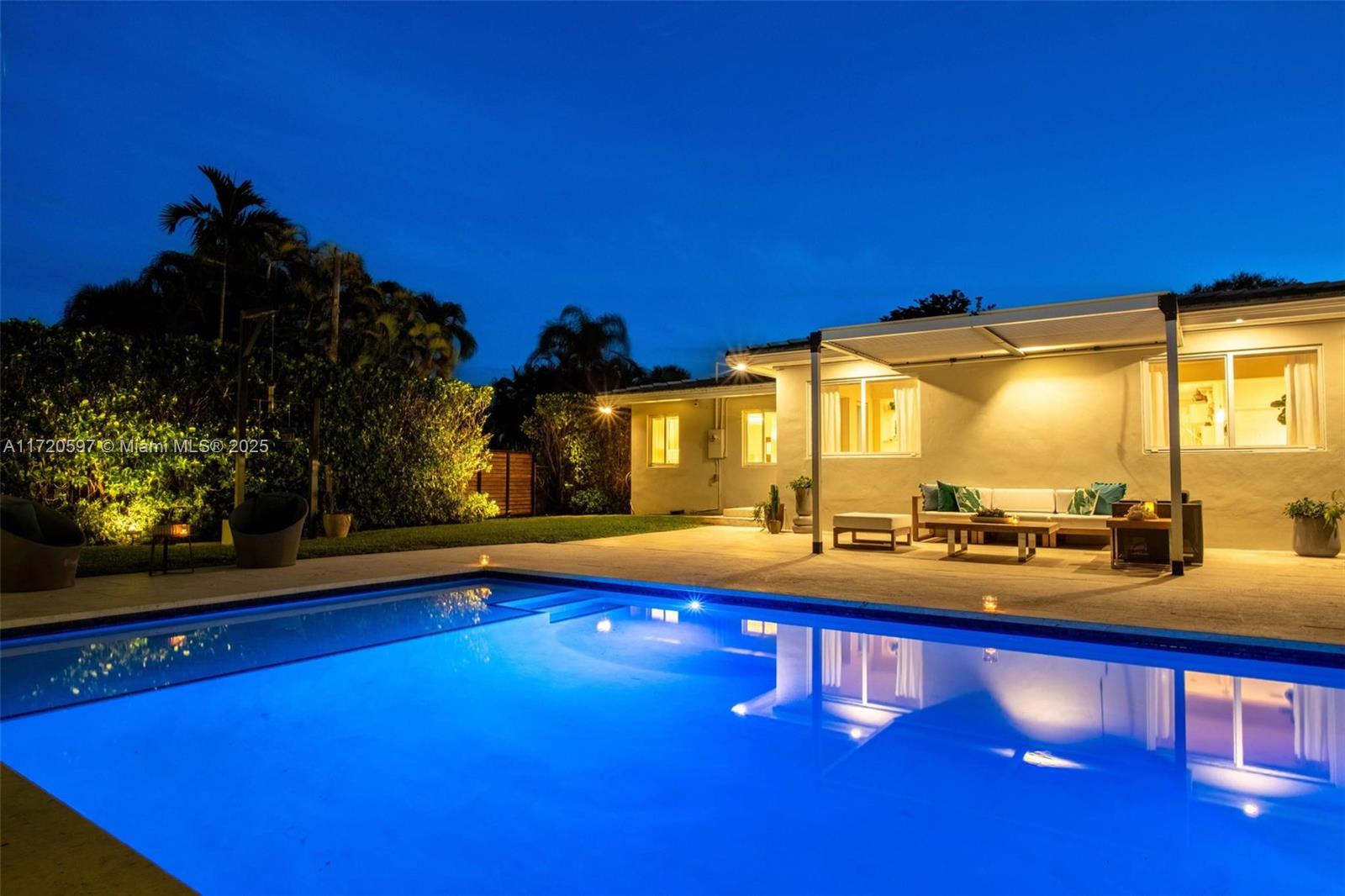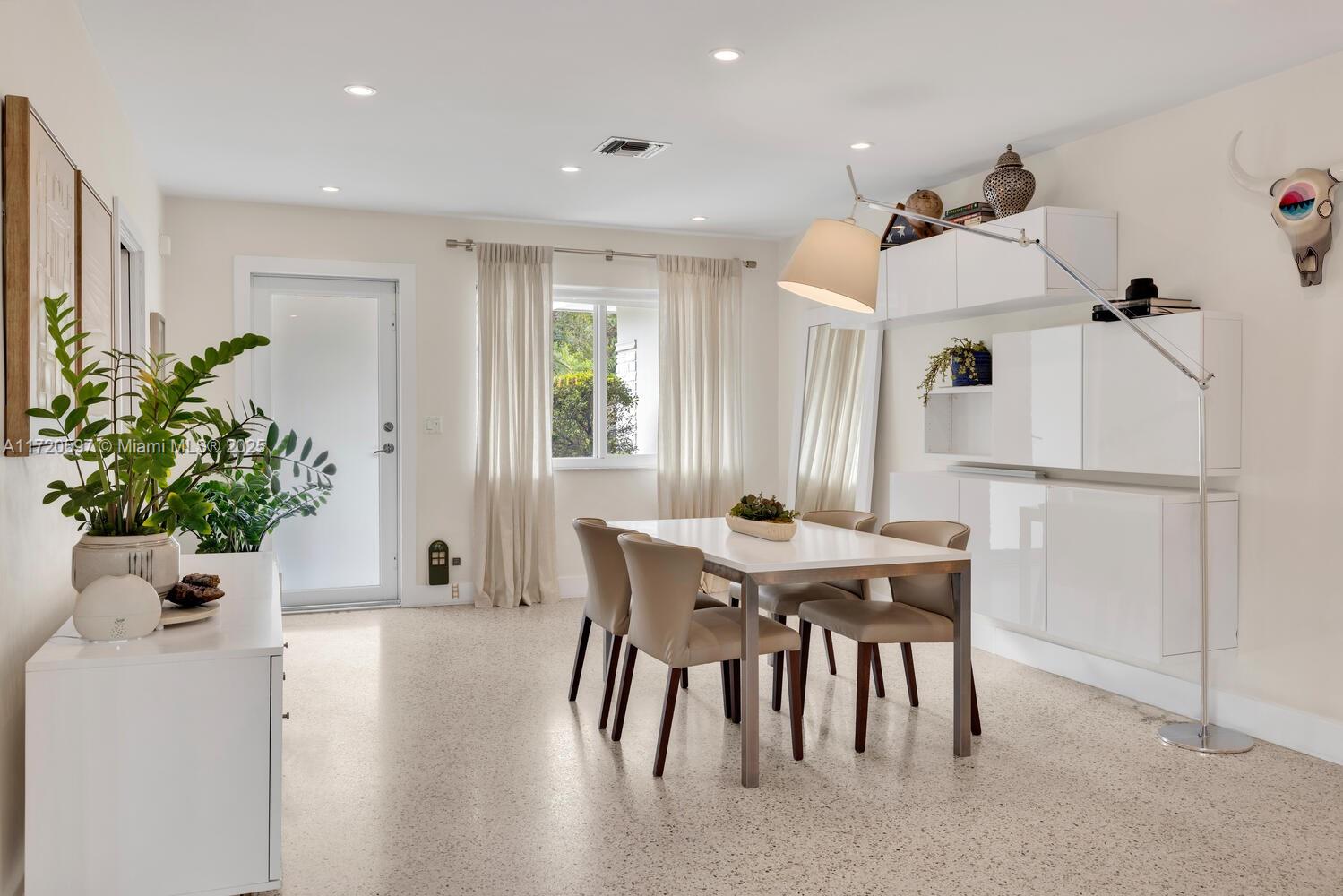 This mid-century modern pool home is unquestionably the best value right now in all of The Shores! Welcome to Villa Julia. You’ll instantly feel welcomed as you enter this light, bright, airy, spacious ~1,800 SF updated home with signature wide open flow living, dining, and grand gourmet eat-in kitchen, all opening to the lush gardens, entertainment patios, and sparkling pool. Equipped with a stacked three bedroom, two bath plan, including a roomy principal en-suite retreat with walk-in closet. Great features: new pool, new AC, designer kitchen and baths, impact windows and doors, beautifully refinished terrazzo floors, updated electrical, plenty of guest parking, and a one car garage. All in a convenient location, nestled on a sprawling 9,225 SF lot, just blocks to Downtown Miami Shores.