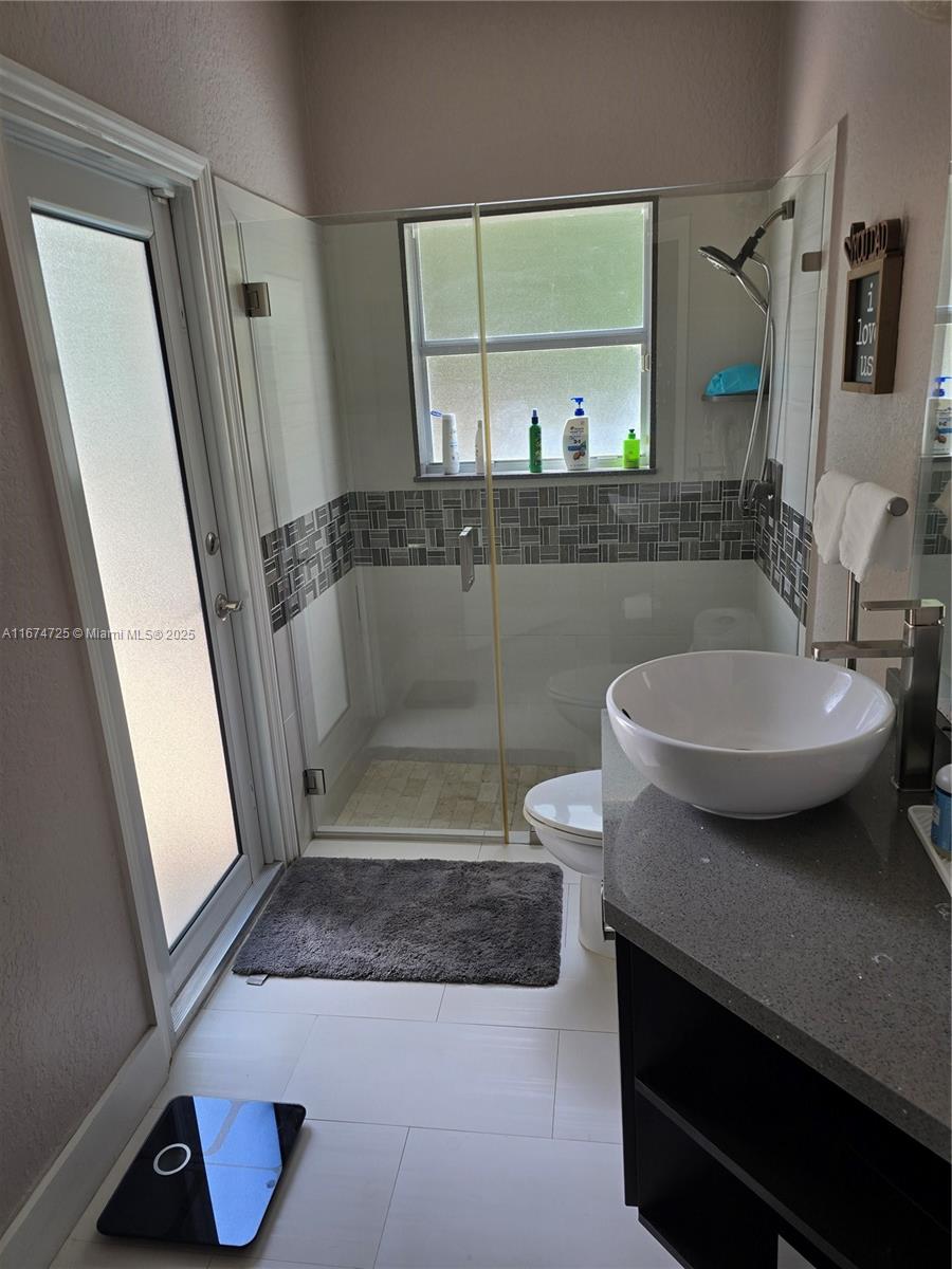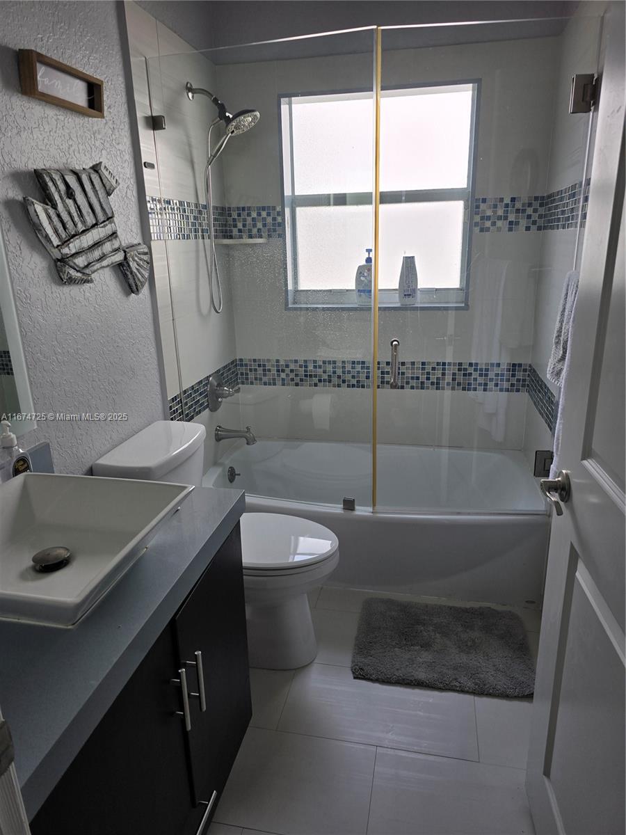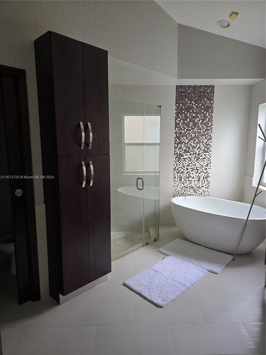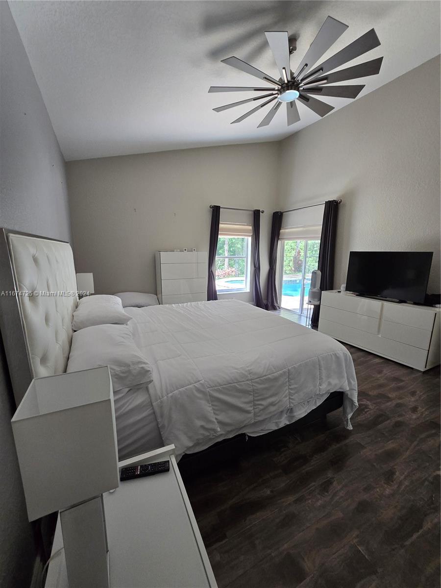This stunning five-bedroom, three-bathroom, with two car garage home in the desirable Pembroke Shores neighborhood offers a perfect blend of comfort, style and functionality. The home boasts an open spacious split floor plan with vaulted ceilings, 32x32 porcelain tiles throughout the living areas, a large open style kitchen with white quartz counter tops, a huge island with extra storage, stainless steel appliances, a gas stove, and ample cabinet space. This home has an elegant main suite with his and hers closets and a large bathroom with a split tub and shower. Rear double French doors lead to a Free-form pool/spa with natural stone pavers, which overlooks a natural preserve with wooded views. The backyard is ideal for entertaining. Located near top-rated schools, shopping, and dining.