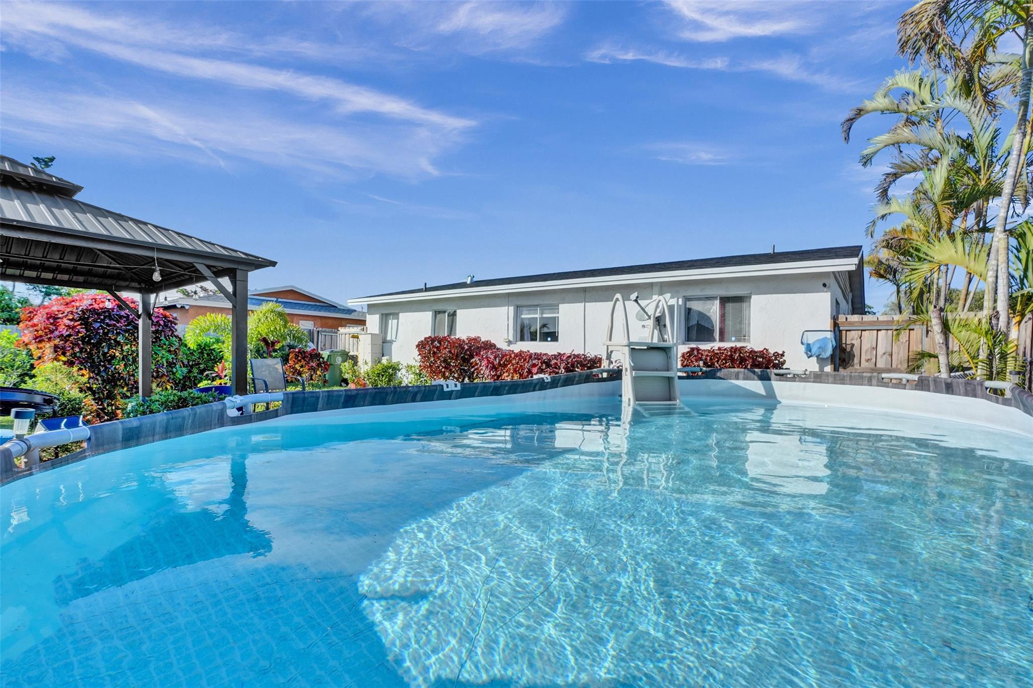Quiet and Beautiful Maintained Single Family Home waiting for your Family. This home boasts a New Roof Installed May 2024, Above Ground Pool, Relaxing Gazebo and Backyard Ambiance Great for Entertaining, Privacy Fence, Security Camera System around Perimeter of Home. Also, Inside this Home is a Split Bedroom Floor Plan, Smoke Detectors throuhoout, Stainless Steel Appliances, A/C and Washer/Dryer approximately 1 1/2 years old. Great Curb Appeal, A MUST SEE!!