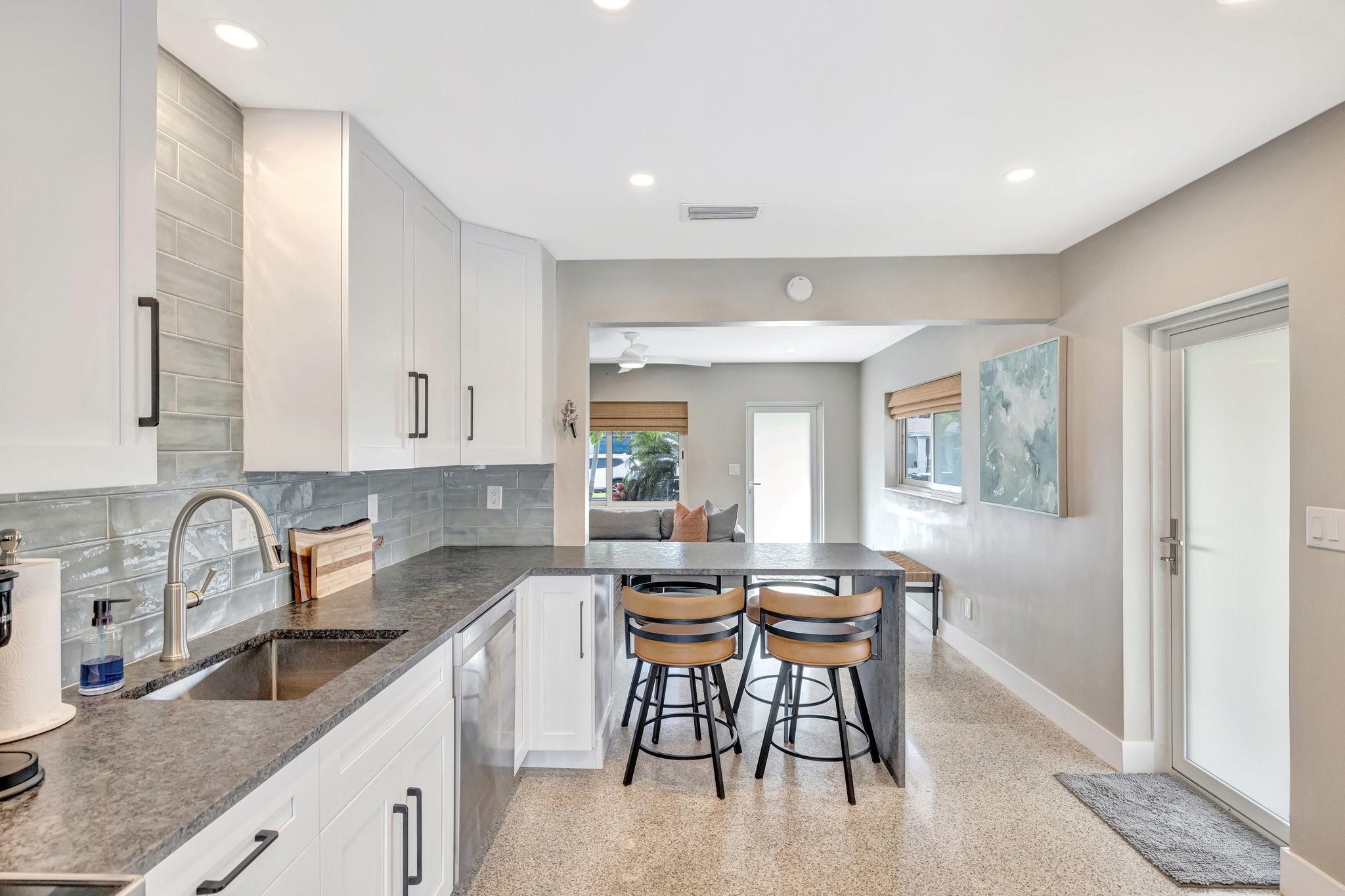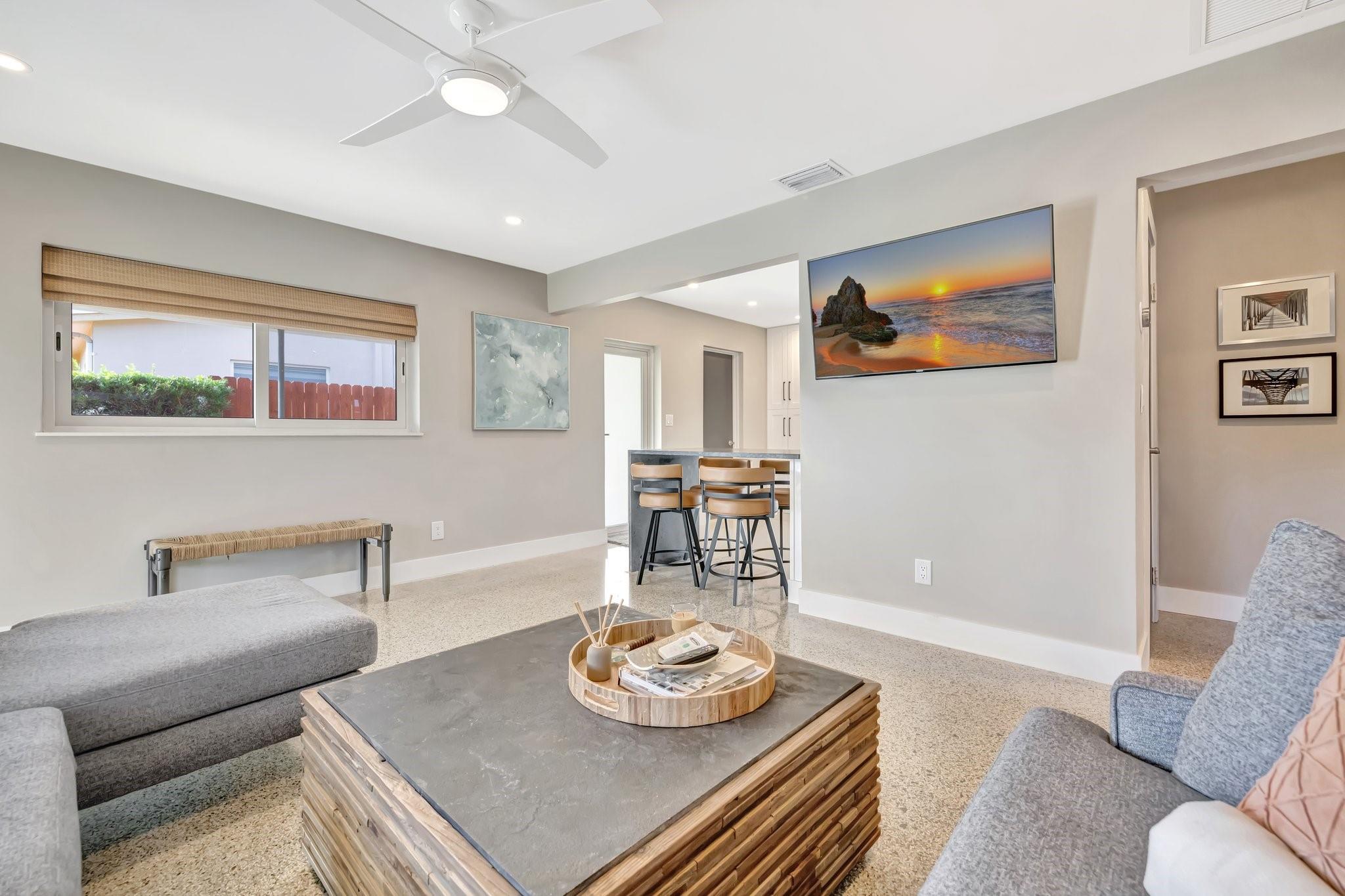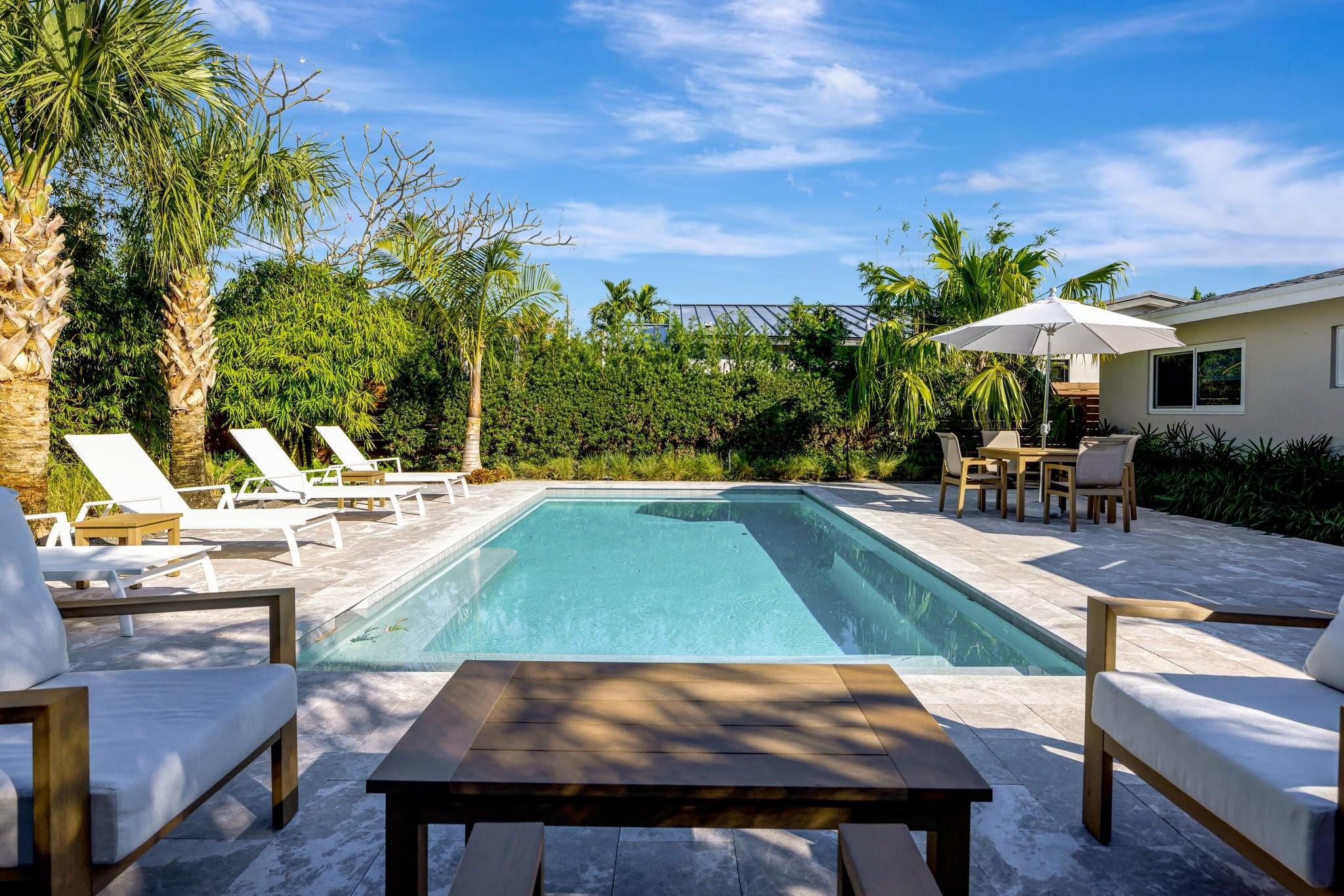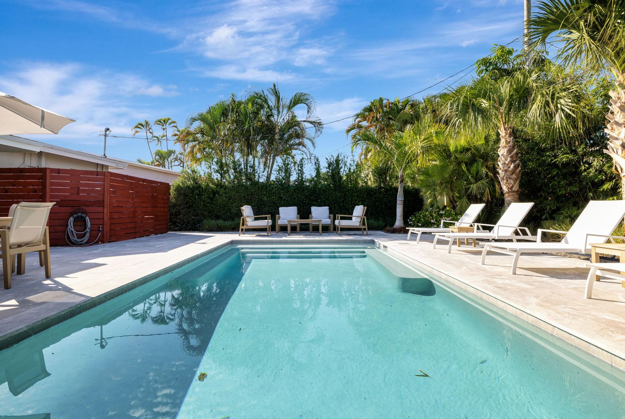 Welcome to this beautifully renovated home in the popular North Andrews Gardens neighborhood. Featuring a brand-new heated & chilled saltwater pool and resort-style landscaping, this home has been thoughtfully remodeled with high-quality finishes rarely found at this price point. The exquisite refinished terrazzo flooring flows throughout most of the home. The updated kitchen boasts leather-finished granite, stainless steel appliances, and shaker-style cabinetry. Other highlights include updated bathrooms, new roof, electrical, plumbing, HVAC, and impact windows/doors. Custom bamboo roman shade window treatments, freshly painted inside & out, private backyard oasis, open front porch, and easy access to beaches, downtown Fort Lauderdale, and I-95 complete this gem!