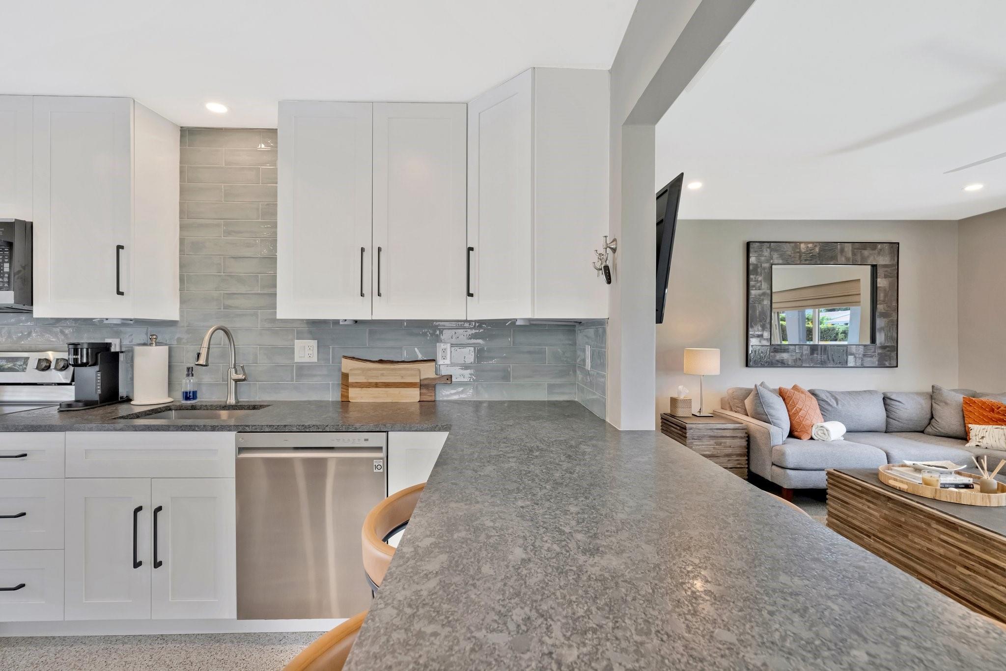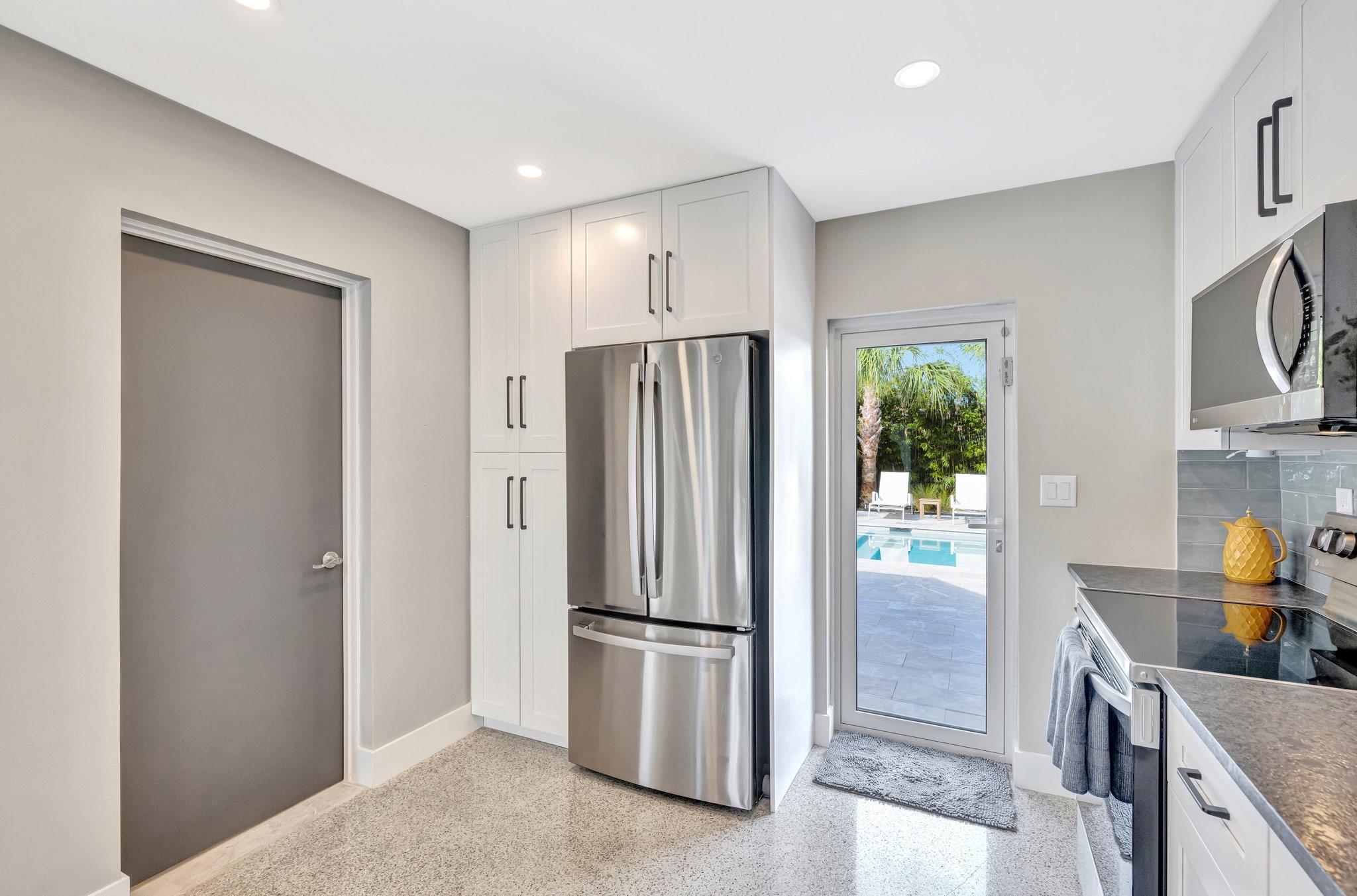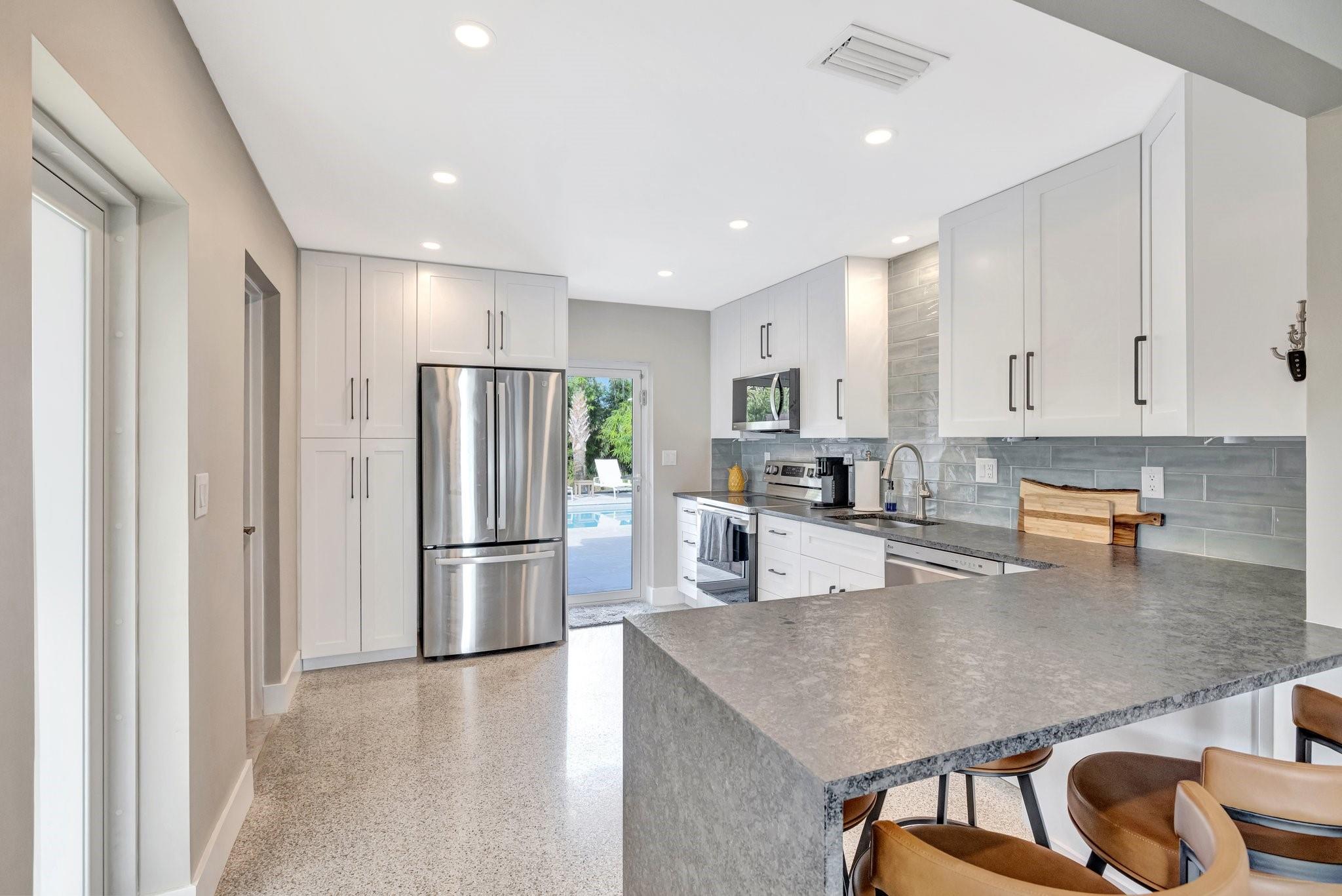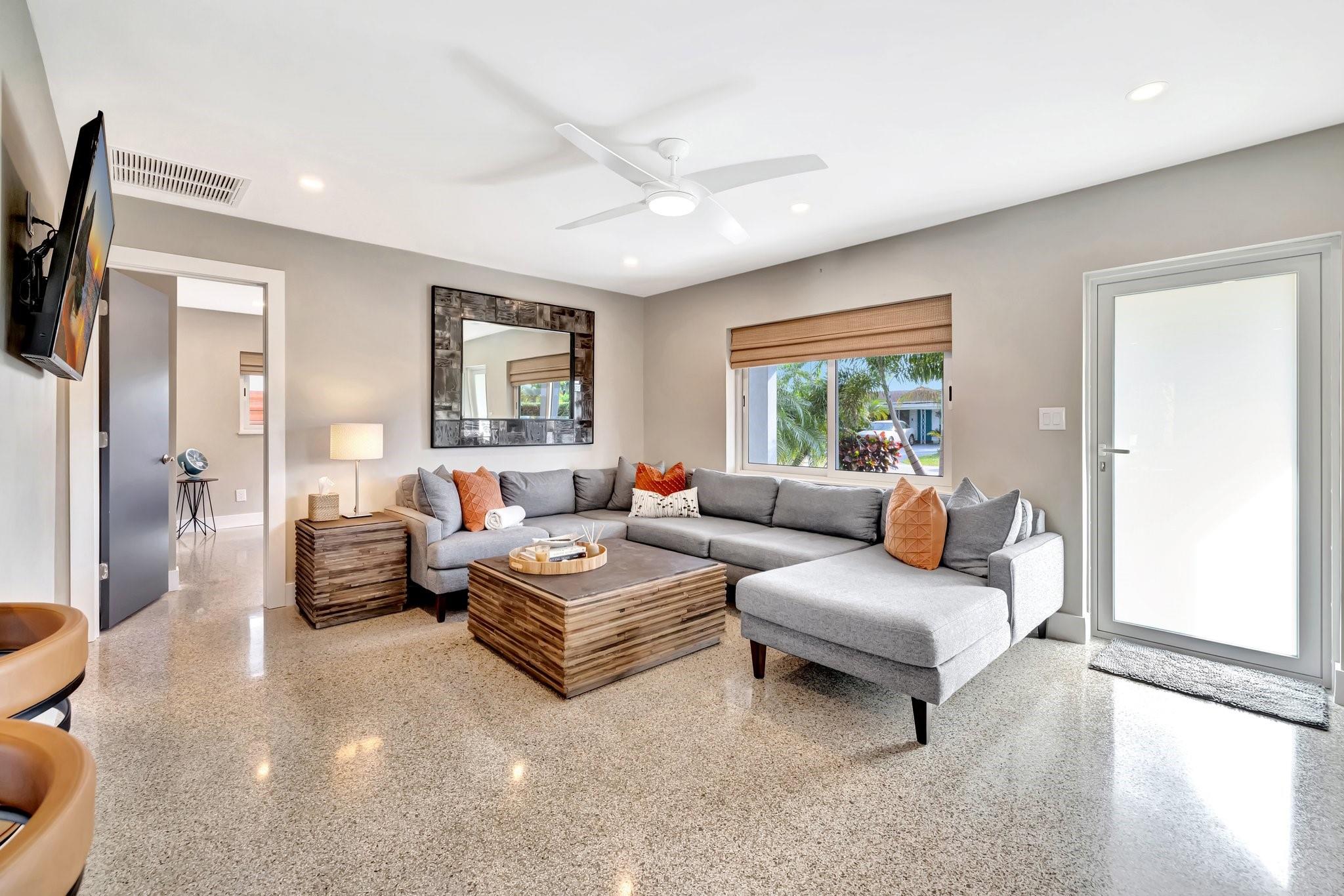 Welcome to this beautifully renovated home in the popular North Andrews Gardens neighborhood. Featuring a brand-new heated & chilled saltwater pool and resort-style landscaping, this home has been thoughtfully remodeled with high-quality finishes rarely found at this price point. The exquisite refinished terrazzo flooring flows throughout most of the home. The updated kitchen boasts leather-finished granite, stainless steel appliances, and shaker-style cabinetry. Other highlights include updated bathrooms, new roof, electrical, plumbing, HVAC, and impact windows/doors. Custom bamboo roman shade window treatments, freshly painted inside & out, private backyard oasis, open front porch, and easy access to beaches, downtown Fort Lauderdale, and I-95 complete this gem!
