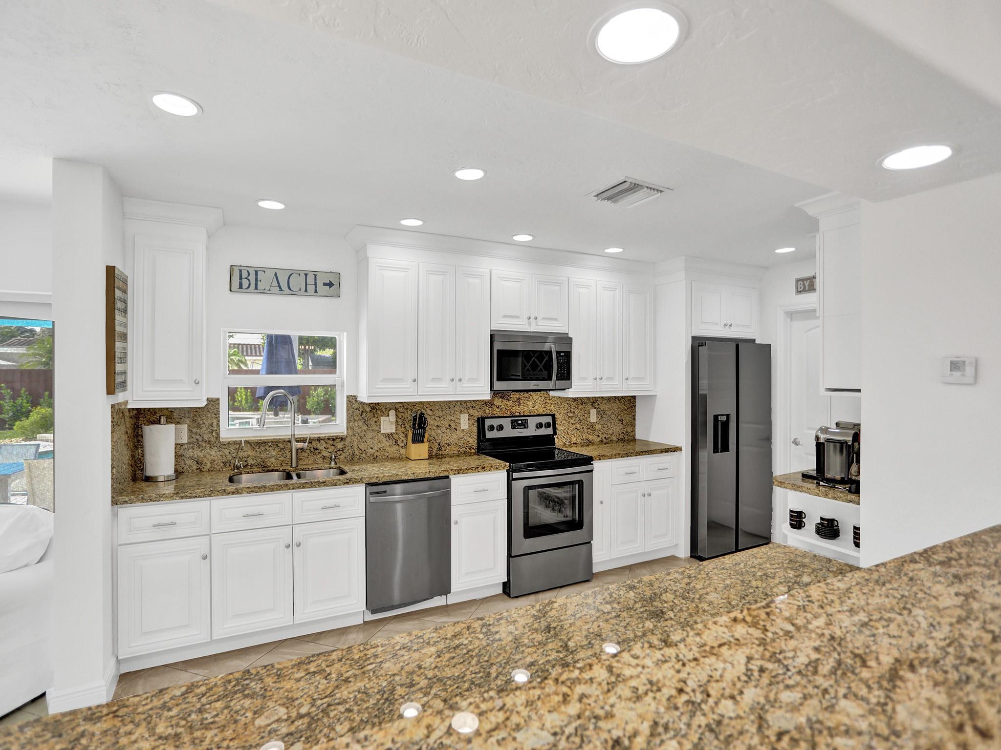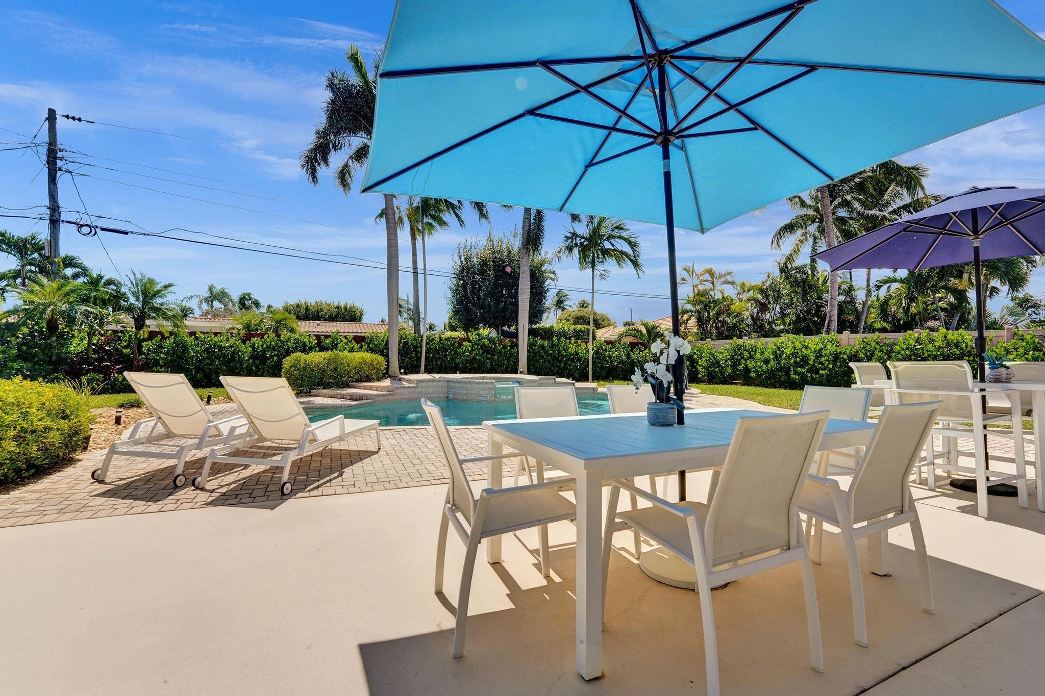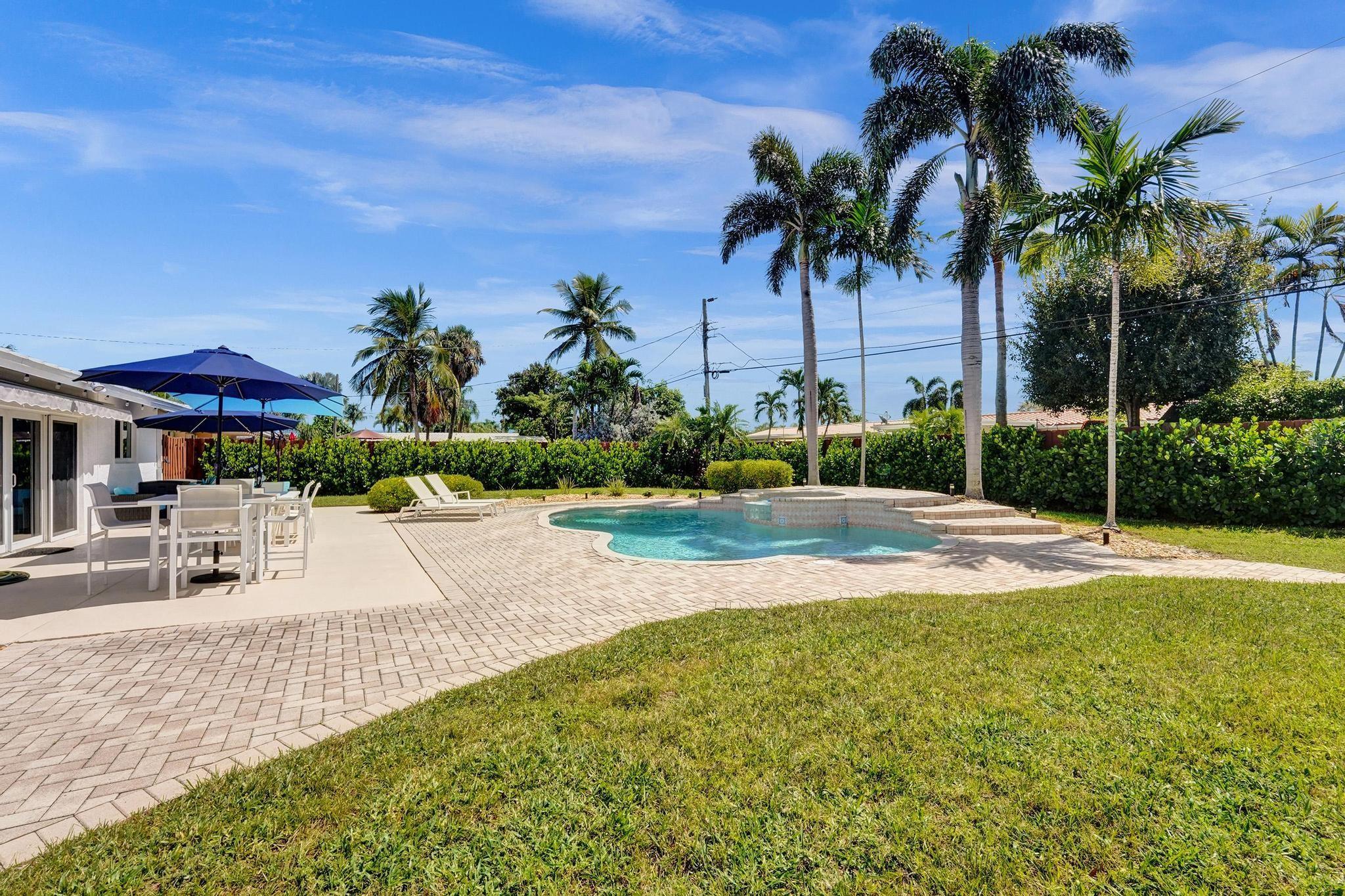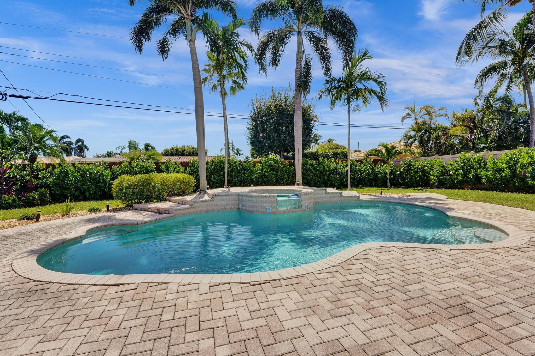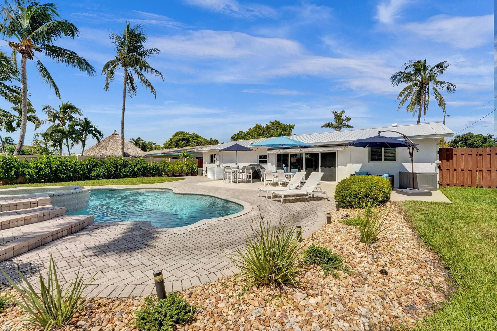 A true Entertainer's Paradise that needs nothing but someone to call it home. Enter into an open floor plan with impact glass doors that frame stunning views of the large backyard & pool. The expansive kitchen can fit an island & is open to the dining & living rooms. The primary suite offers an ensuite bathroom with a double vanity & walk-in shower. A fully renovated second bath (2023) boasts a double vanity & a deep soaker tub/shower combo. The true highlight is the fully landscaped backyard with a sparkling heated pool, hot tub & large patio perfect for relaxation or entertaining. The air-conditioned 1-car garage can easily be converted back into a 3rd bedroom as it is insulated has a window and a separate entrance. Additional upgrades include impact windows & doors & a metal roof (2023)