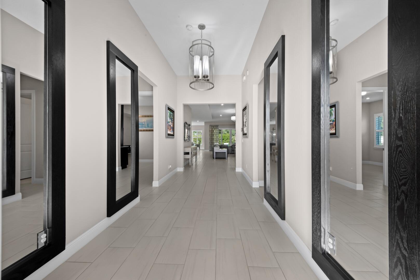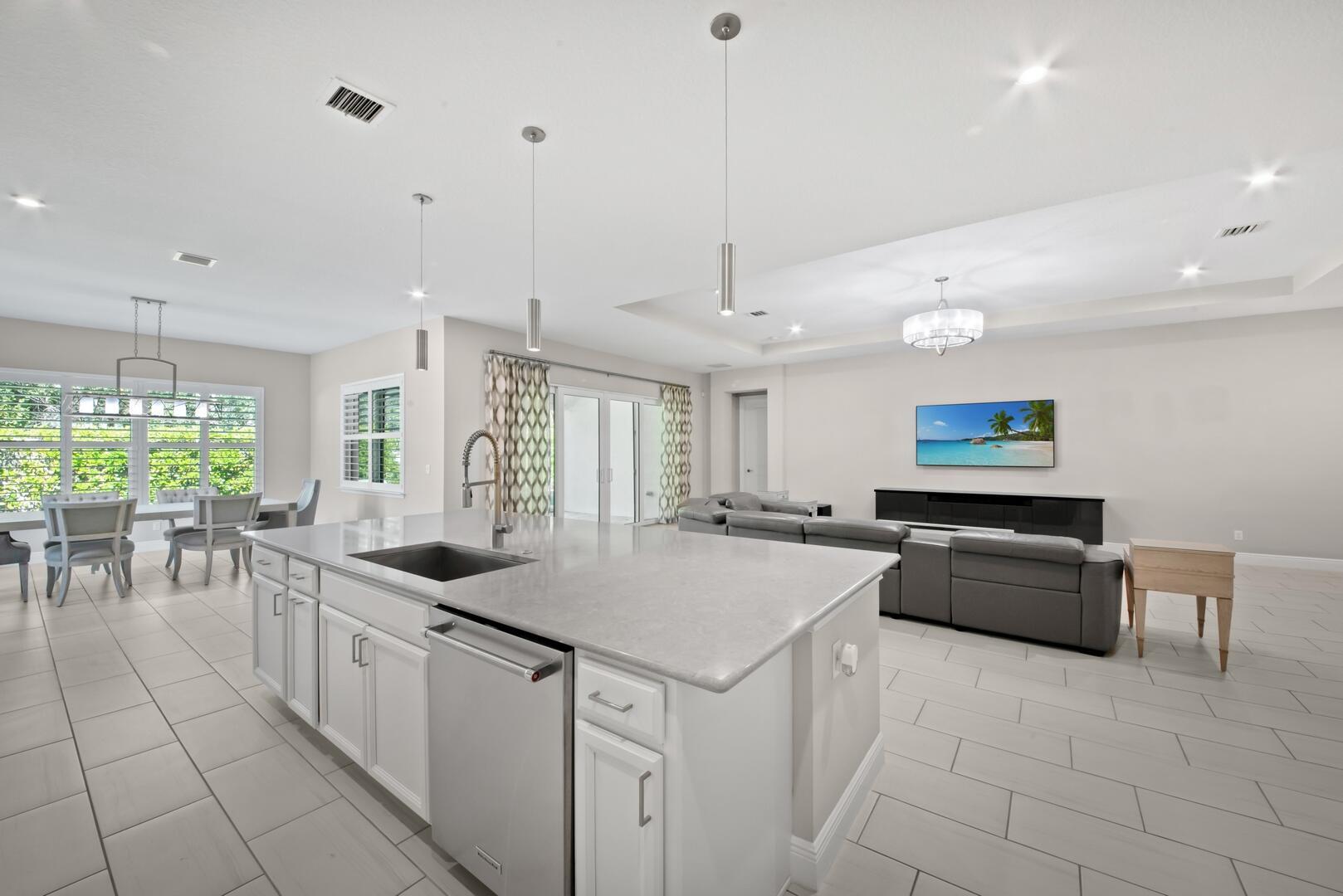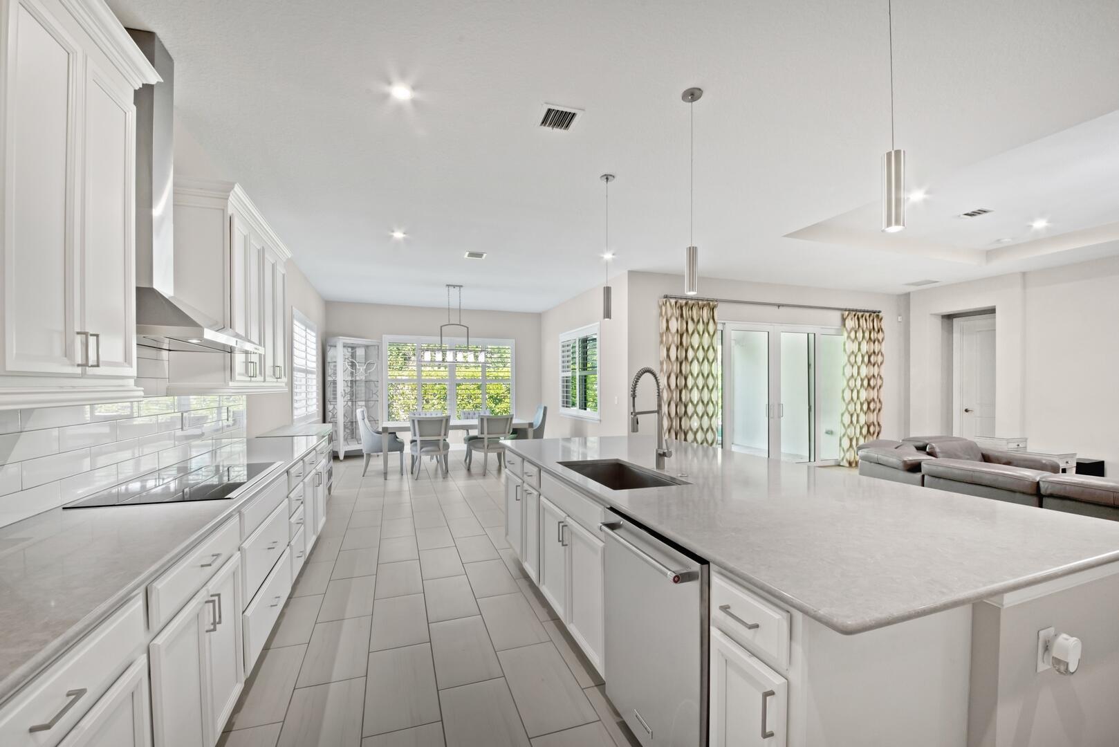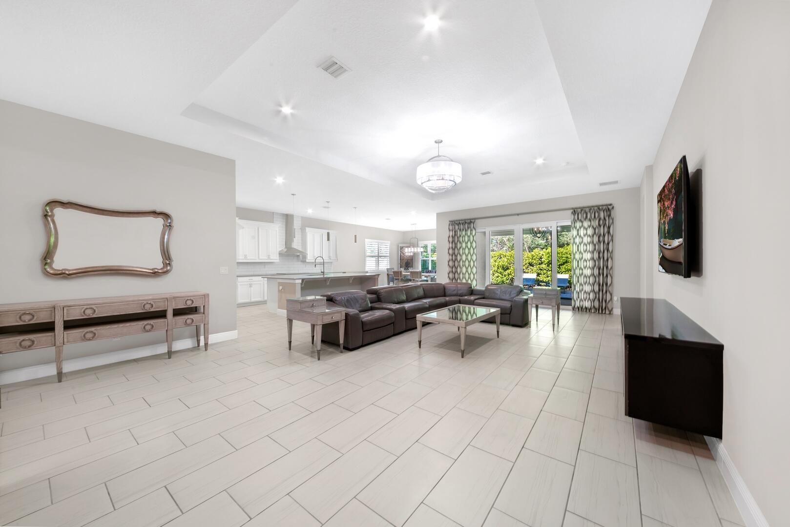 Welcome to this exquisite 4-bedroom, 3.5-bathroom single-story home, designed to impress with every detail. Nestled on a private lot backing to a serene preserve with no rear neighbors, this residence offers the ultimate in privacy, comfort, and contemporary luxury. Upon entering the inviting foyer, you'll be captivated by the open floorplan featuring neutral flooring, coffered ceilings, and custom lighting. The home's smart features include a Ring system and advanced smart home technology. Impact windows, a whole-house Generac generator, and a water softener provide security and convenience. The dream kitchen is a culinary masterpiece with classic white cabinetry, a tiled backsplash, stainless steel appliances, a wall oven, a walk-in pantry, pendant lighting, and a snack bar.