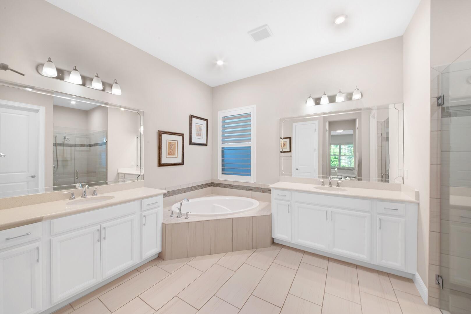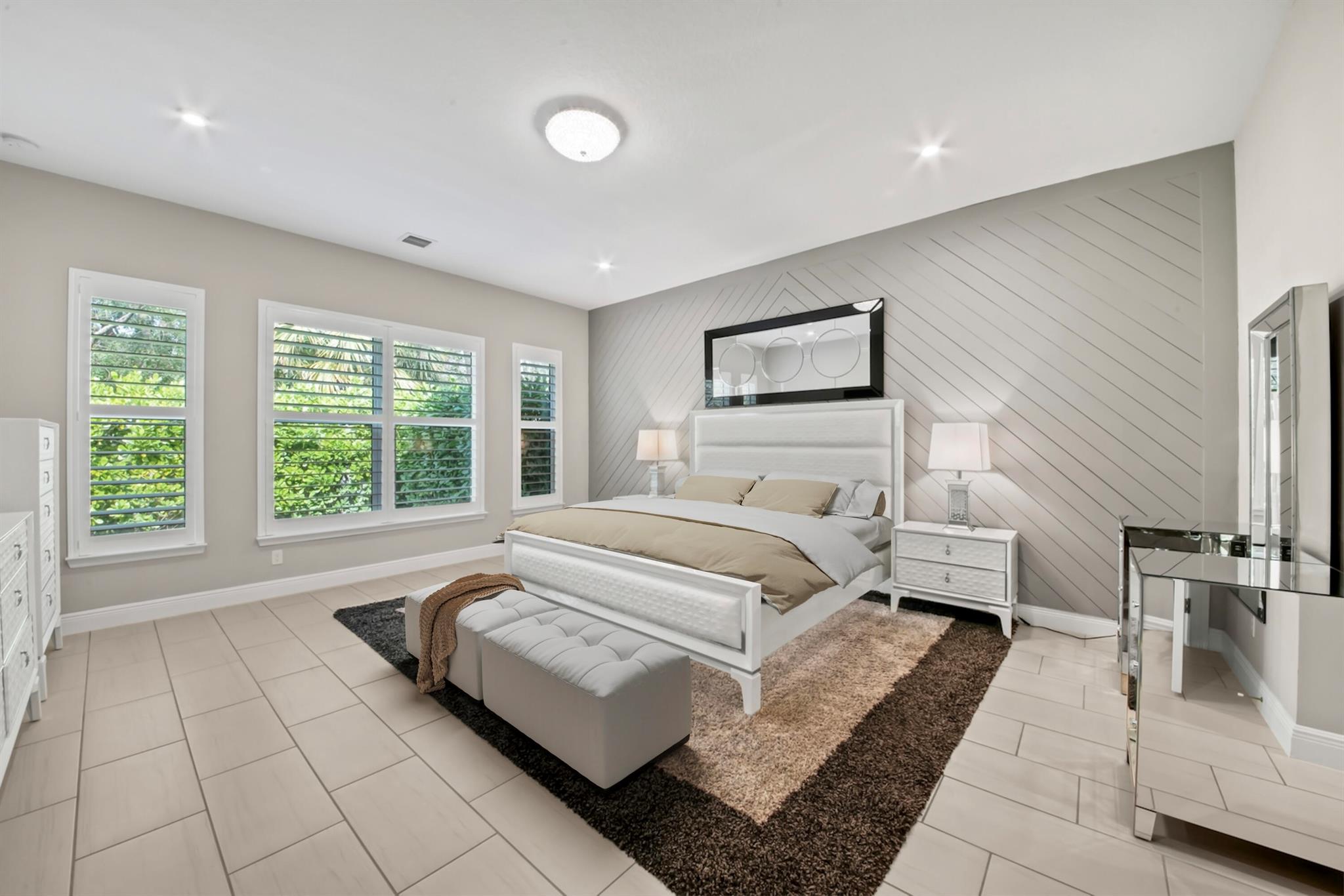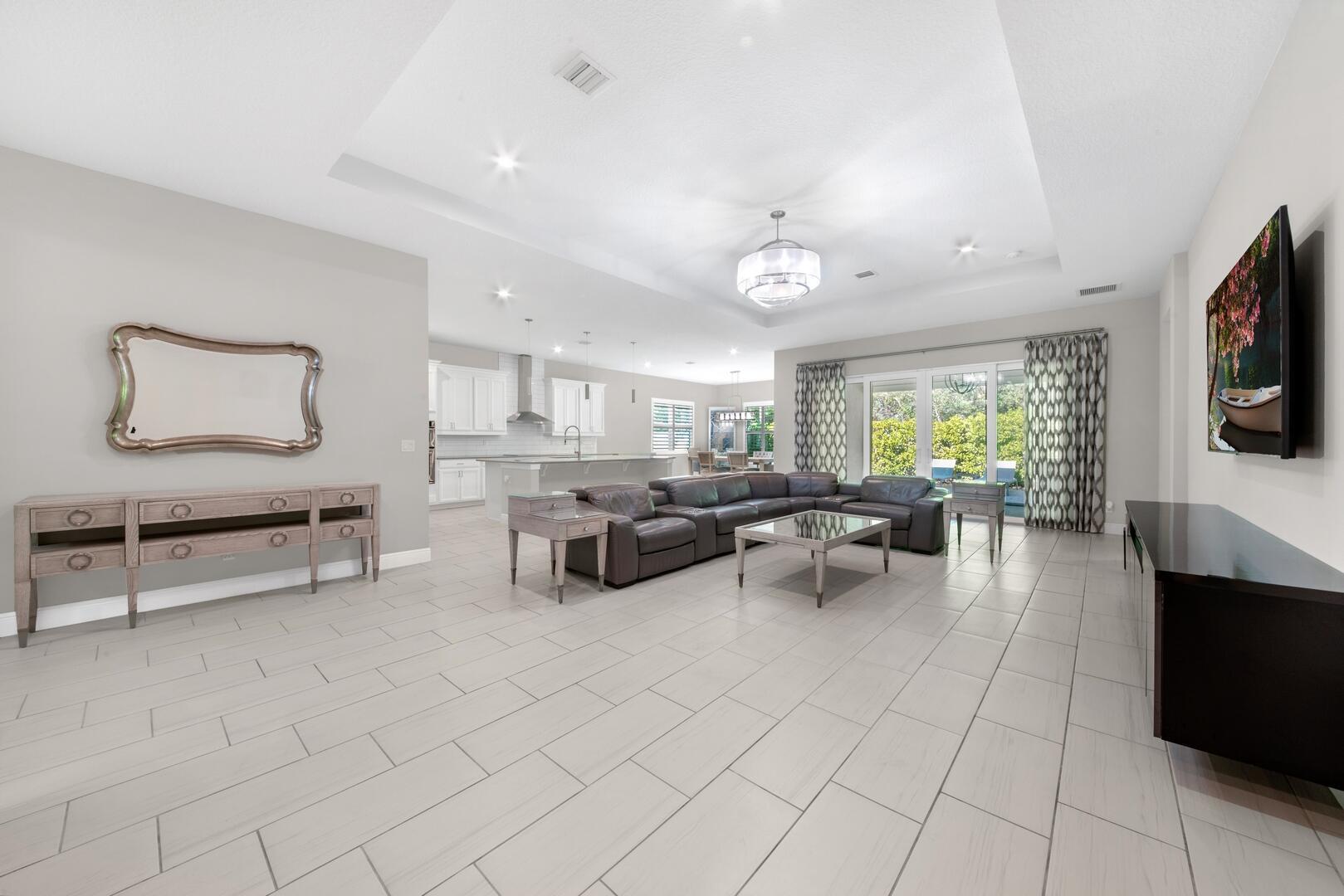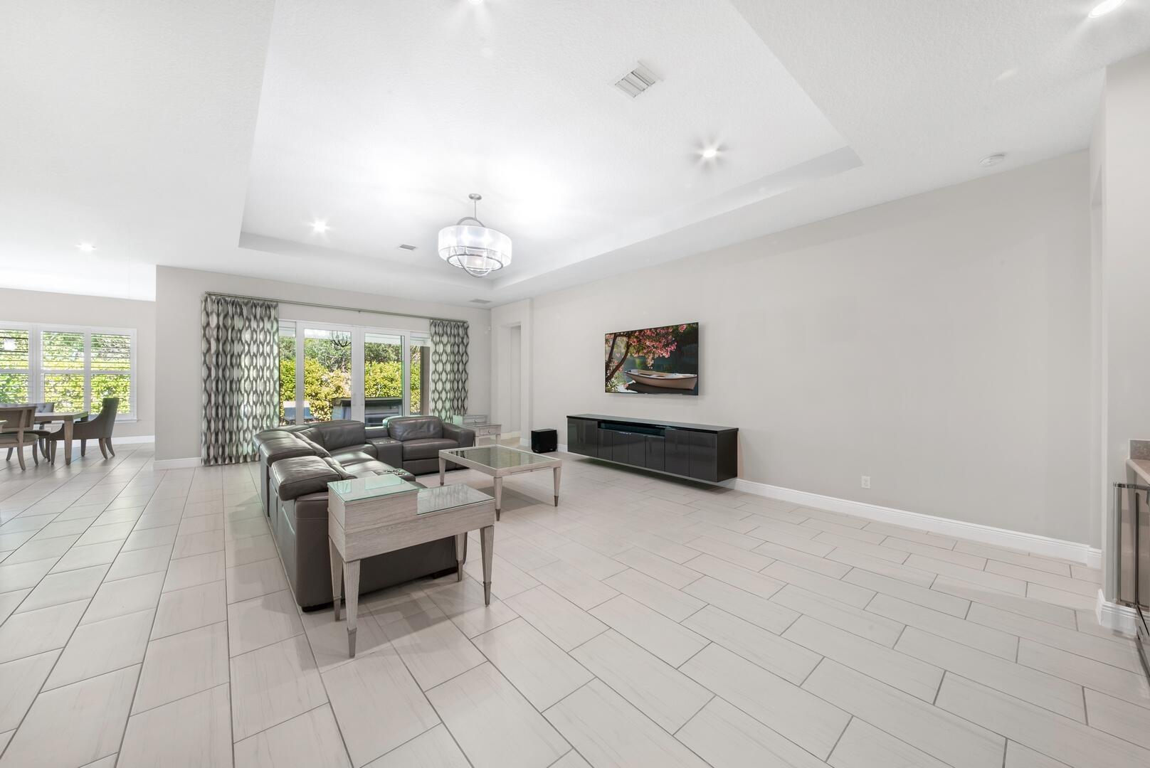 Welcome to this exquisite 4-bedroom, 3.5-bathroom single-story home, designed to impress with every detail. Nestled on a private lot backing to a serene preserve with no rear neighbors, this residence offers the ultimate in privacy, comfort, and contemporary luxury. Upon entering the inviting foyer, you'll be captivated by the open floorplan featuring neutral flooring, coffered ceilings, and custom lighting. The home's smart features include a Ring system and advanced smart home technology. Impact windows, a whole-house Generac generator, and a water softener provide security and convenience. The dream kitchen is a culinary masterpiece with classic white cabinetry, a tiled backsplash, stainless steel appliances, a wall oven, a walk-in pantry, pendant lighting, and a snack bar.