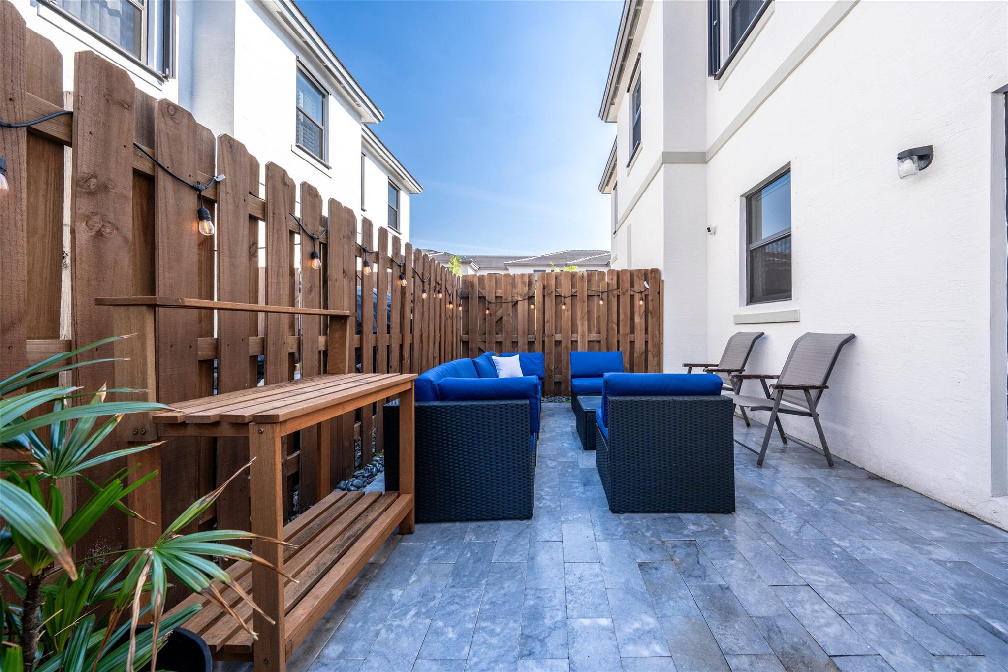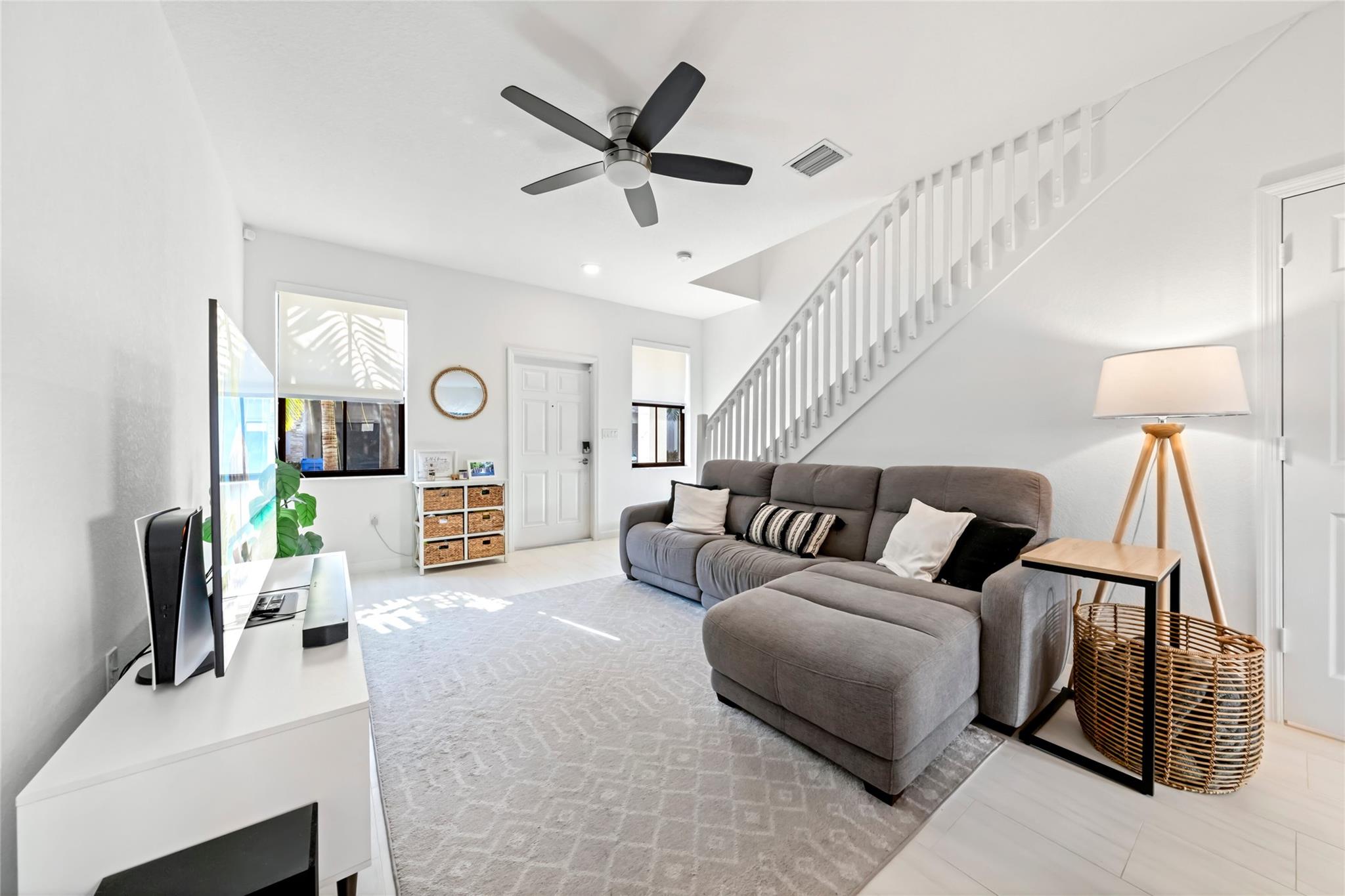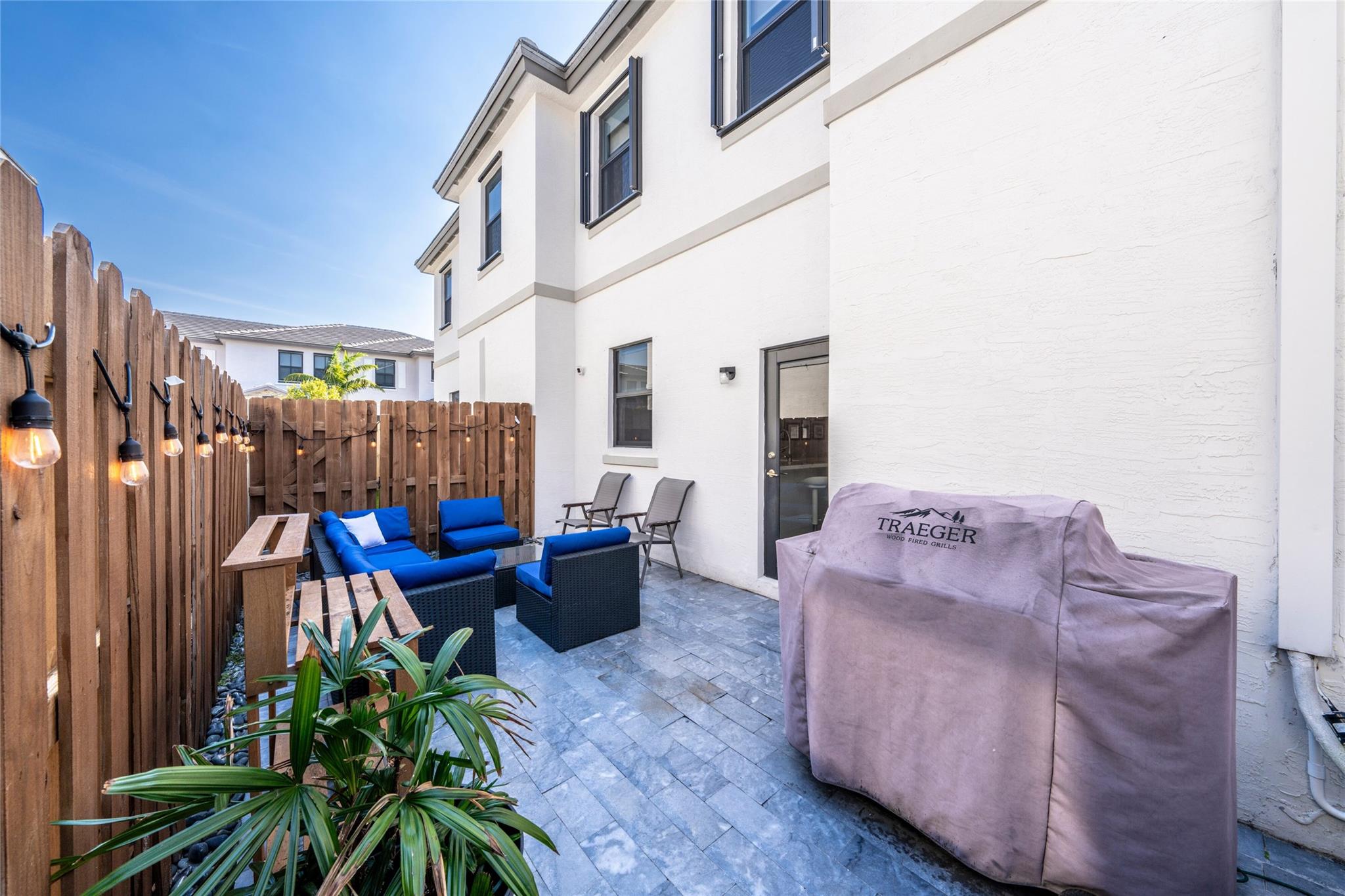 Beautiful, bright, open 3/2.5 Townhome in charming, gated community, The Edge on 20th! Constructed 4 years ago, everything is still relatively new, nothing to do but move in. Kitchen has been updated with quartz countertops, serving bar with waterfall edge. Tile floors throughout downstairs, vinyl wood floors on stairs/upstairs. The open kitchen/dining/living room is great for entertaining, along with spacious fenced rear patio w/pavers. Upstairs the primary suite is huge, featuring 3 closets and bathroom with glassed-in shower. Hurricane ready w/accordion shutters/panels. Recessed lighting throughout and shades with blackout shades on most windows. Smart home ready, Ring cameras outside, network system, Wi-Fi extenders. One car garage with two car tandem driveway. Don’t miss this place!