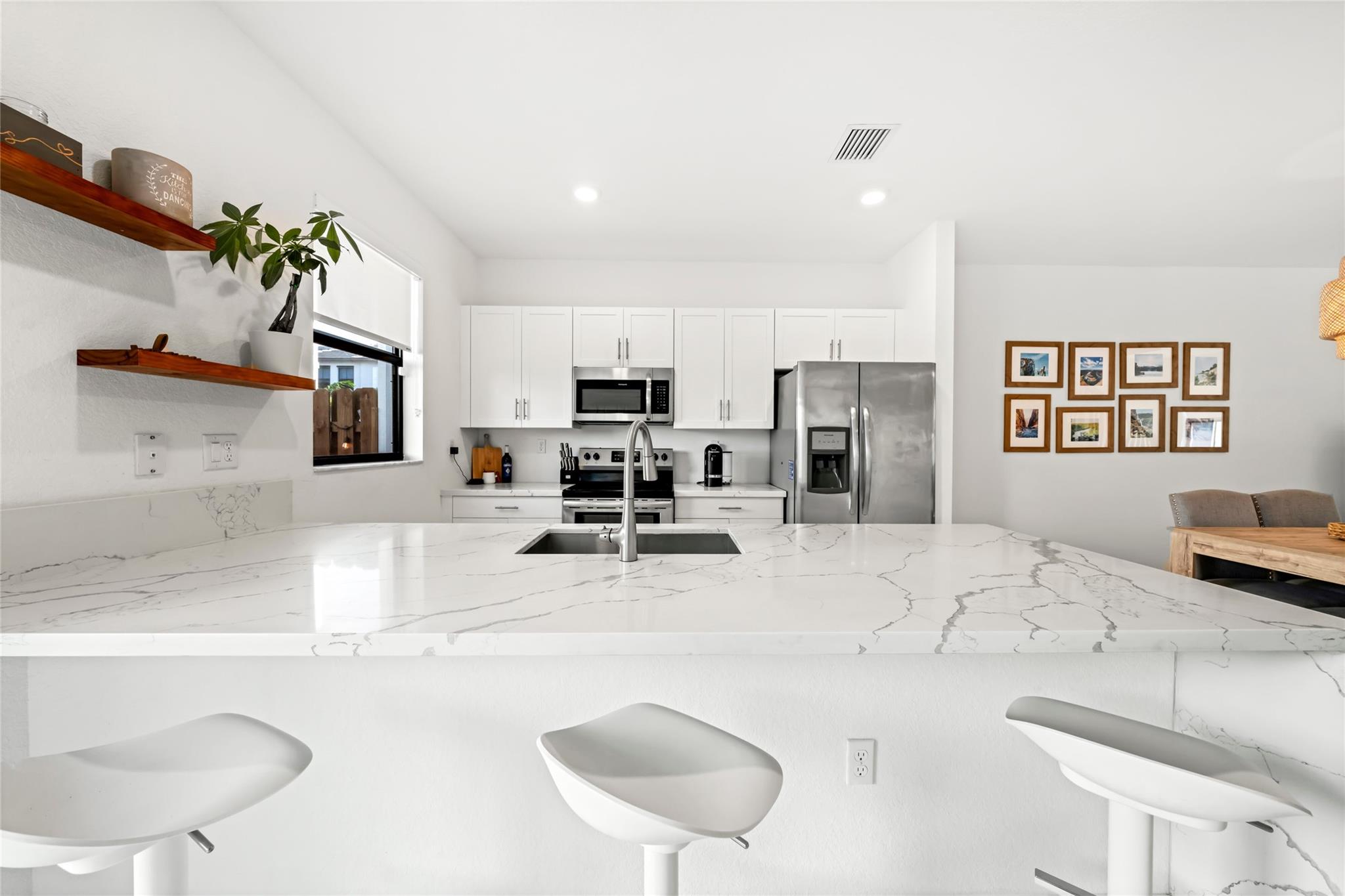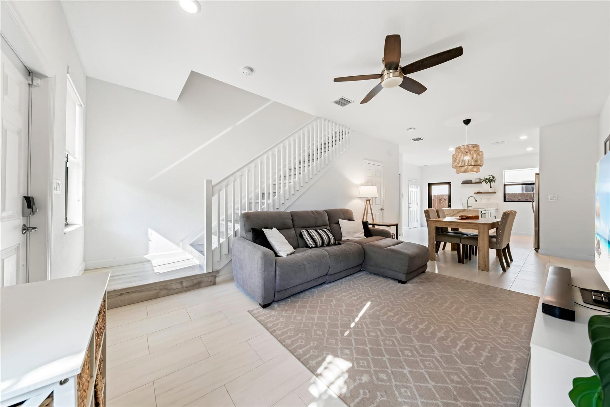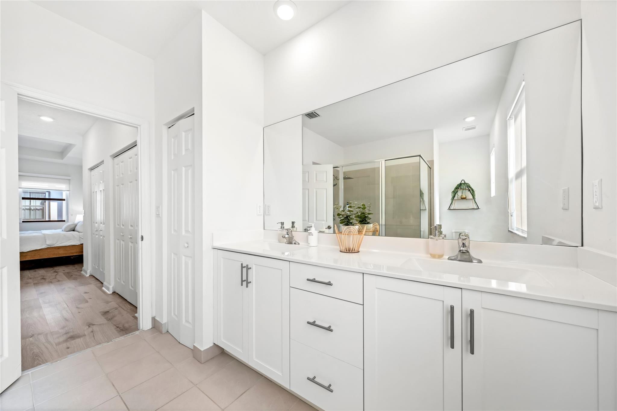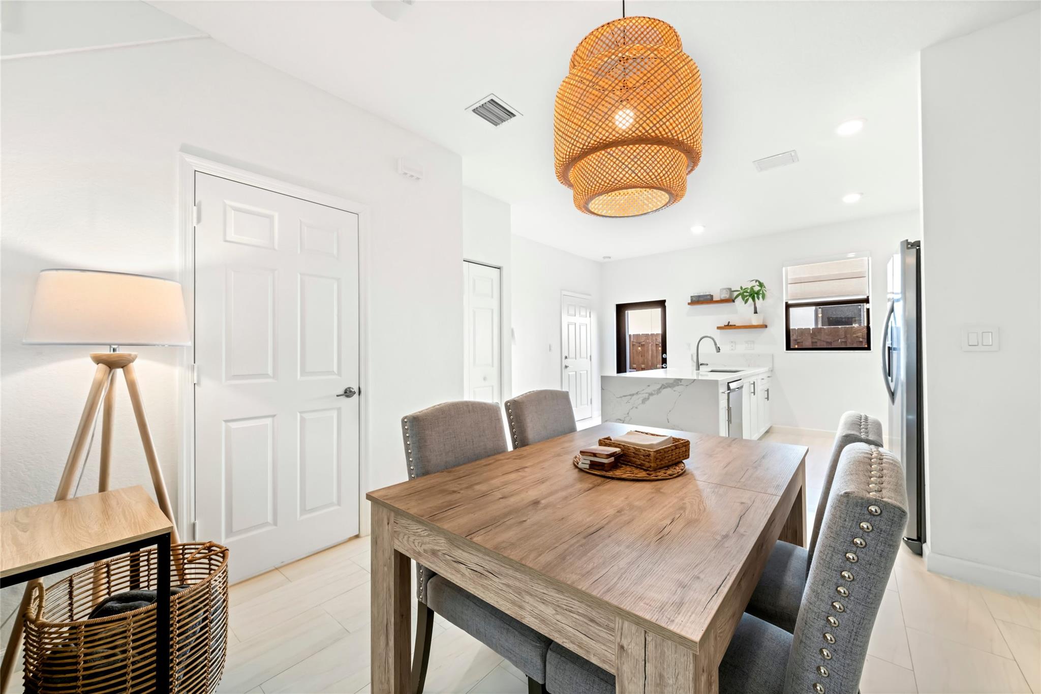 Beautiful, bright, open 3/2.5 Townhome in charming, gated community, The Edge on 20th! Constructed 4 years ago, everything is still relatively new, nothing to do but move in. Kitchen has been updated with quartz countertops, serving bar with waterfall edge. Tile floors throughout downstairs, vinyl wood floors on stairs/upstairs. The open kitchen/dining/living room is great for entertaining, along with spacious fenced rear patio w/pavers. Upstairs the primary suite is huge, featuring 3 closets and bathroom with glassed-in shower. Hurricane ready w/accordion shutters/panels. Recessed lighting throughout and shades with blackout shades on most windows. Smart home ready, Ring cameras outside, network system, Wi-Fi extenders. One car garage with two car tandem driveway. Don’t miss this place!