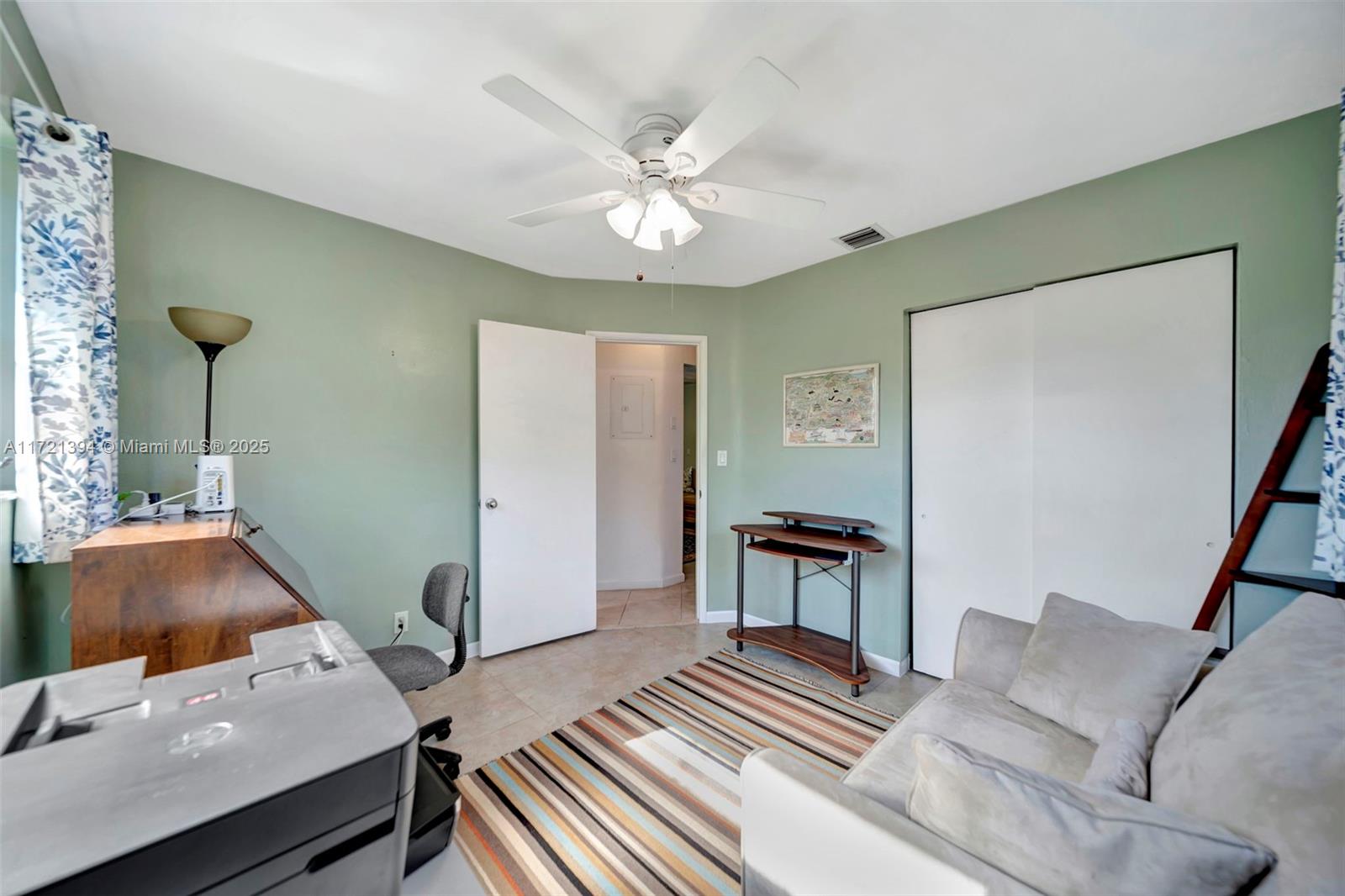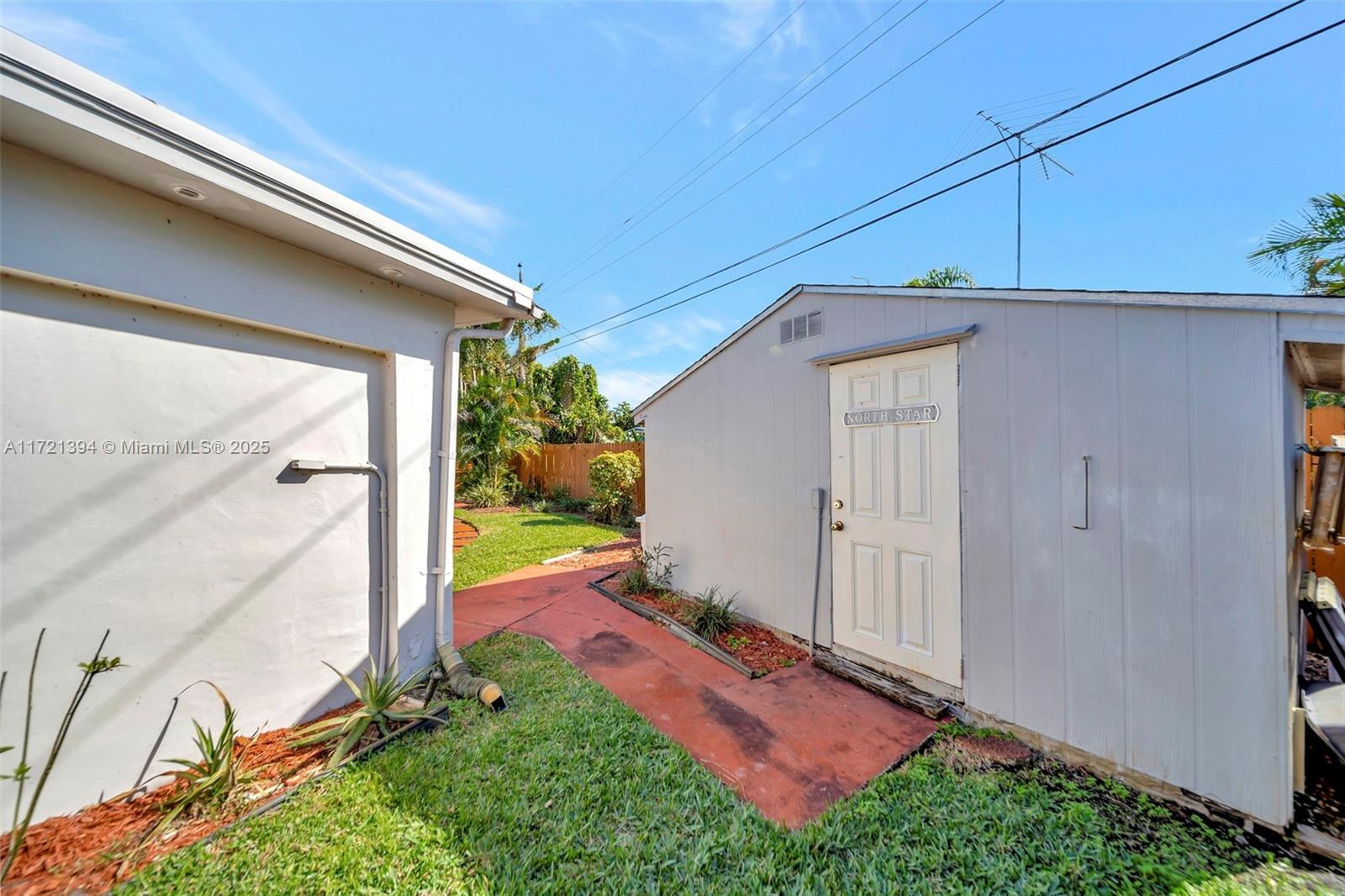 This 4-bedroom, 3-bath single family home showcases pride of ownership! The 3-bedroom split floor plan is complemented by a 4th bedroom and 3rd bath with a separate entrance, ideal for a home office or in-law suite. The serene fenced backyard features a sprinkler system, covered porch, a detached shed with electricity, and also extra outside storage. 7 year old roof, 1 year new A/C, tiled floors throughout and an updated master bath add to its appeal. Conveniently located near schools, shopping, and within walking distance of local conveniences. A must-see property offering versatility and charm!