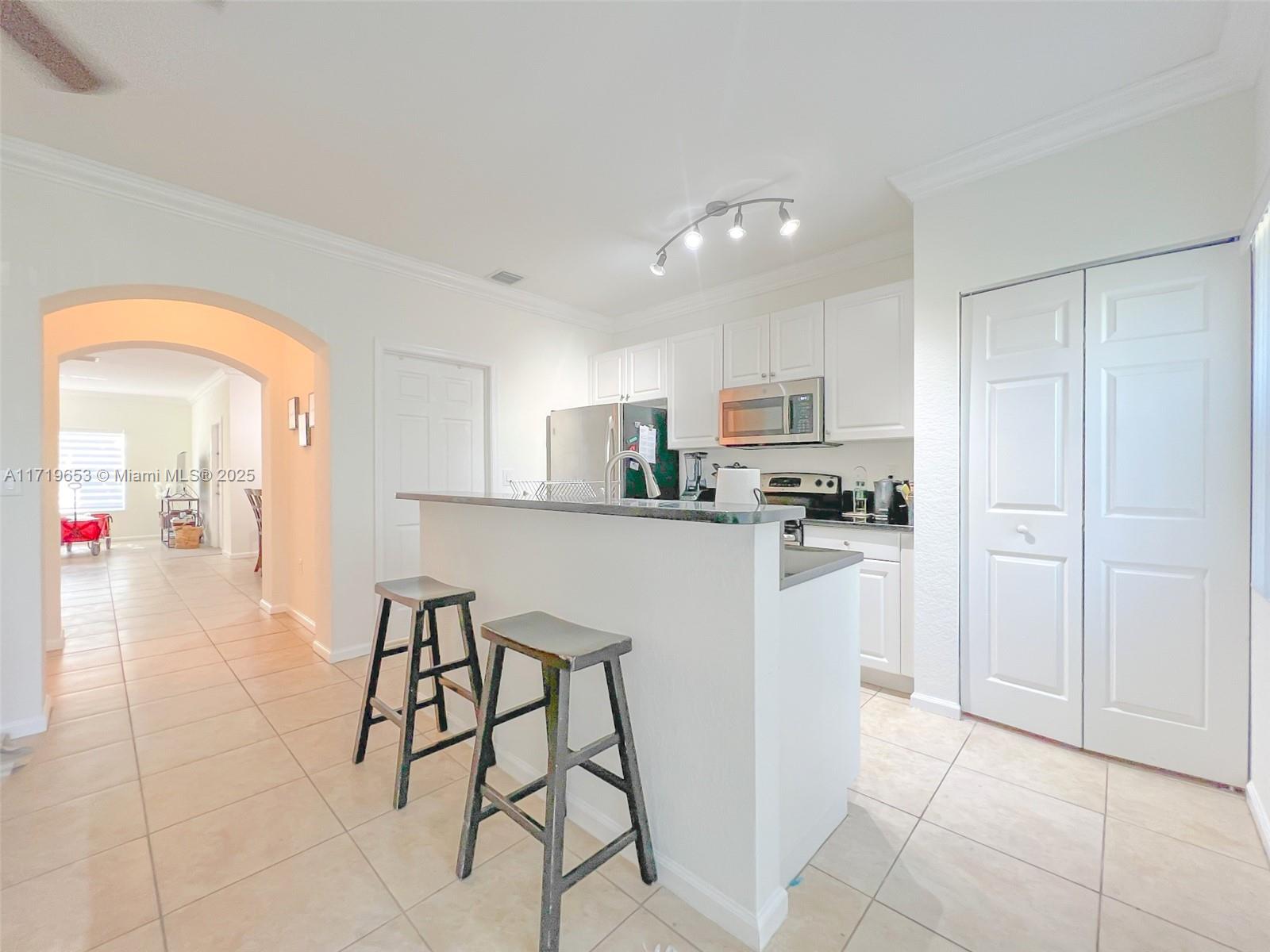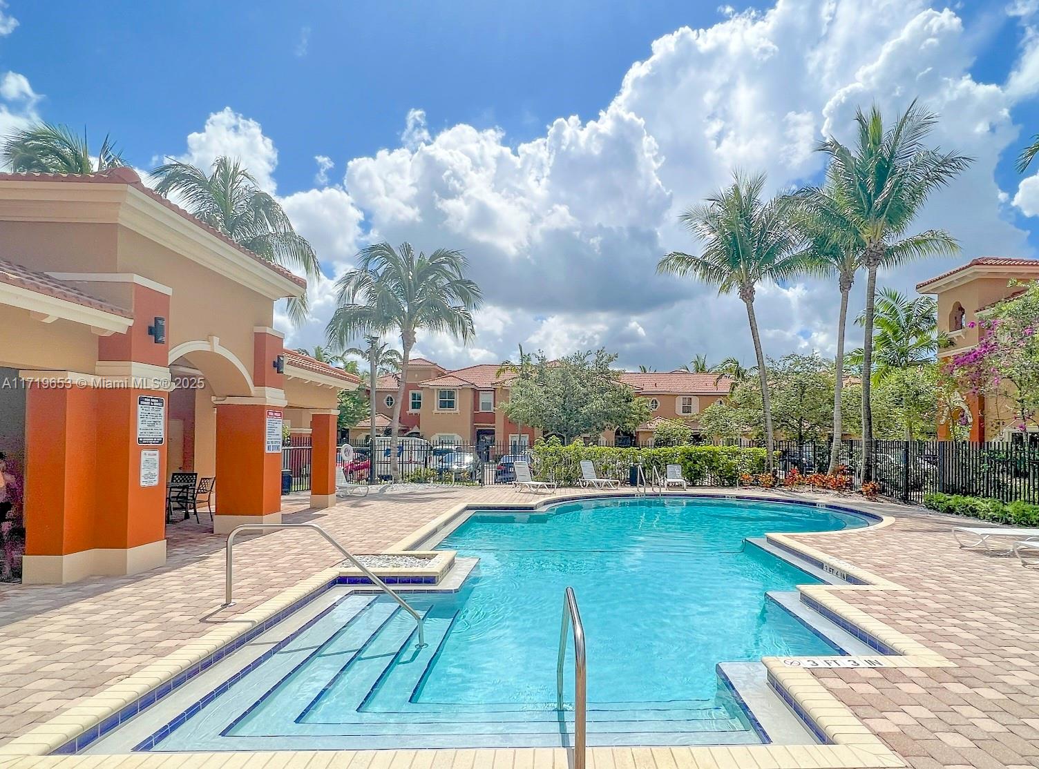 Spacious 3 bedroom, 2 1/2 bath Townhome in the sought-after gated community of Martinique. The home features a smart layout with separate living, dining, and family rooms, and an open-concept kitchen with granite countertops and stainless steel appliances. The kitchen & family room walk out to private patio great for entertaining. Major upgrades include IMPACT windows and doors and 2022 AC system. Biggest 3 bedroom model in the 2007-built community. Martinique amenities include a modern pool, playground, and community clubhouse. Fantastic location close to shopping, entertainment, the Turnpike, I-75, and top school options. Great association with reserves and roof included in fee. Move quick on this one!