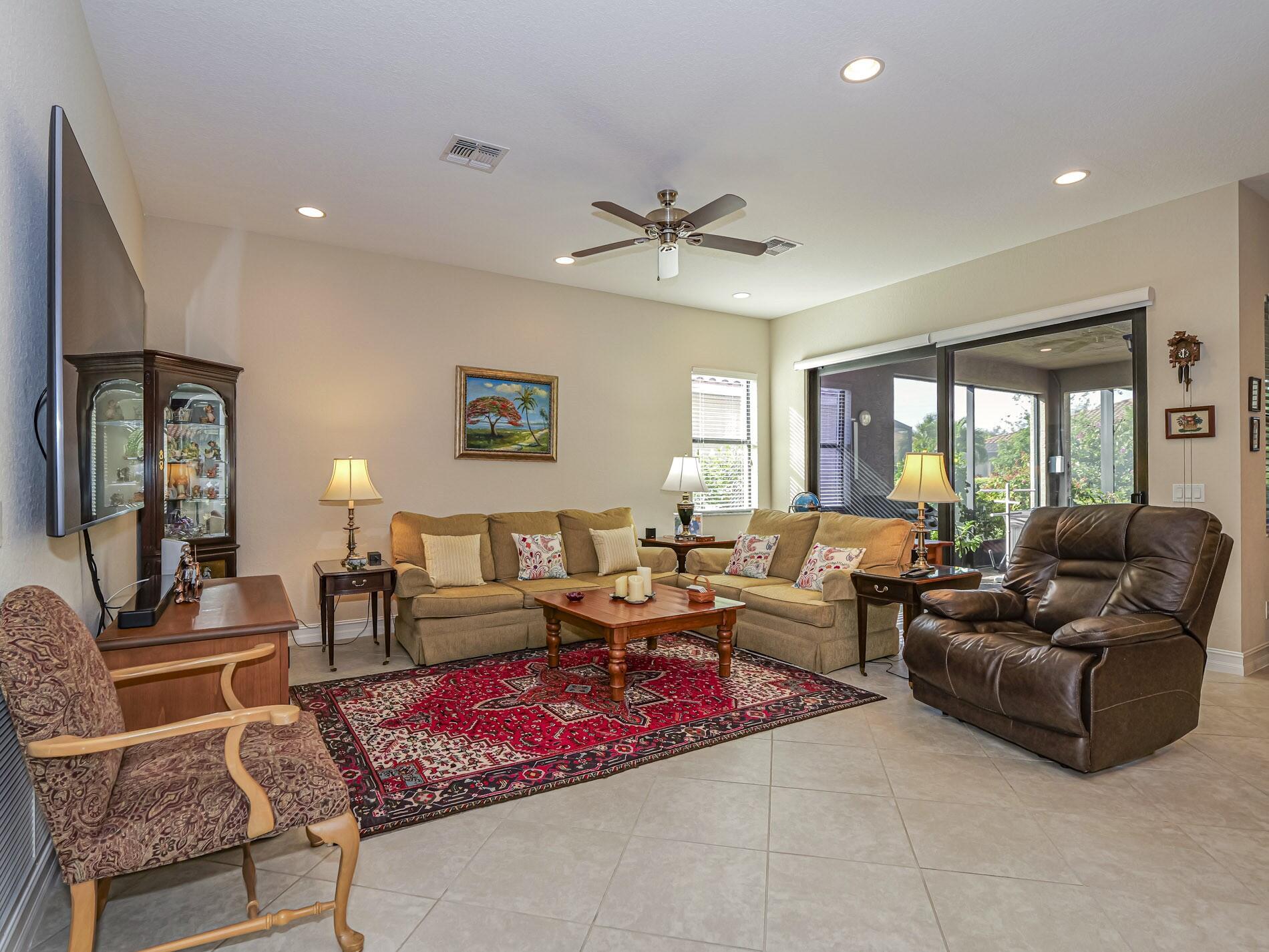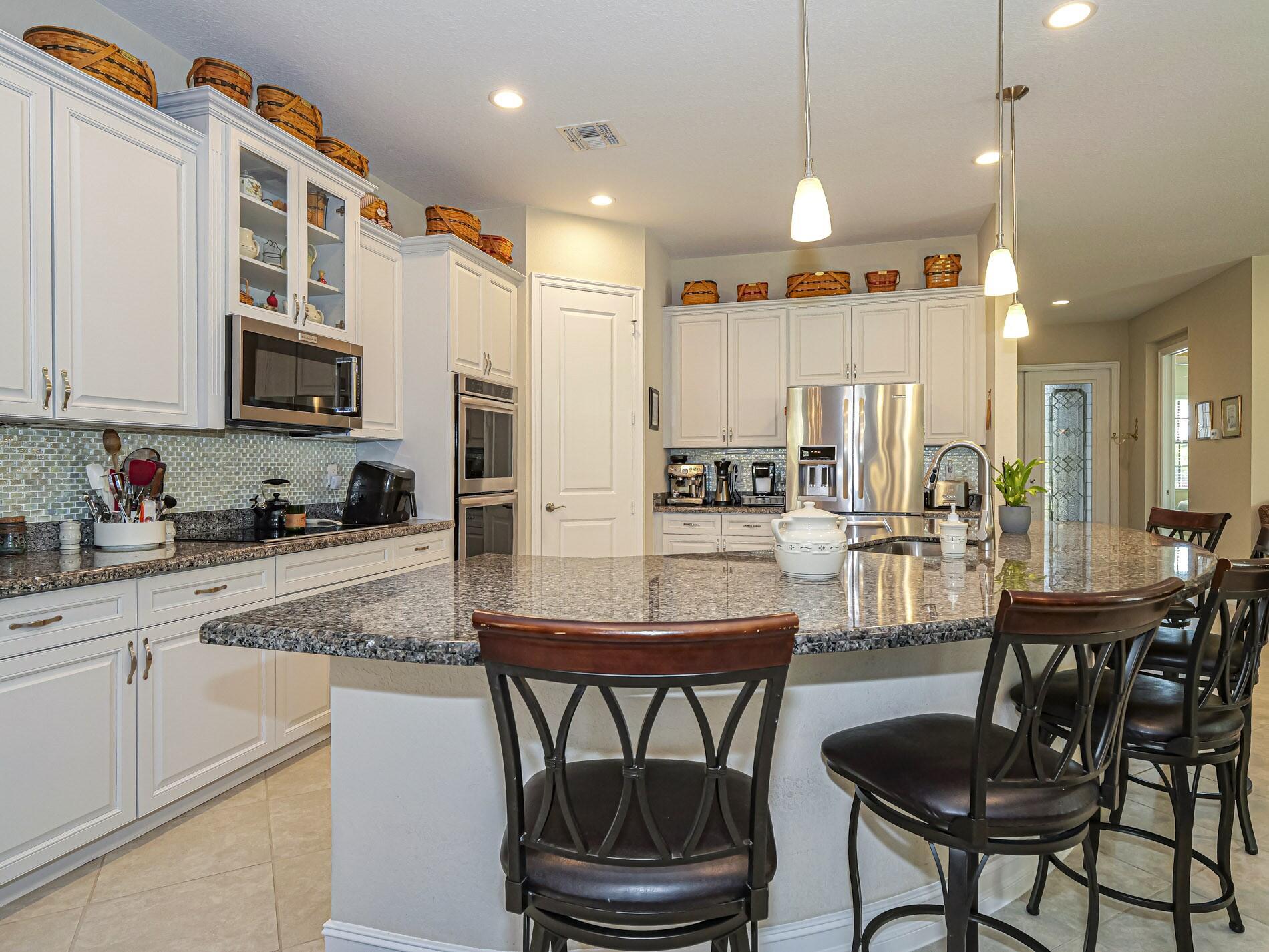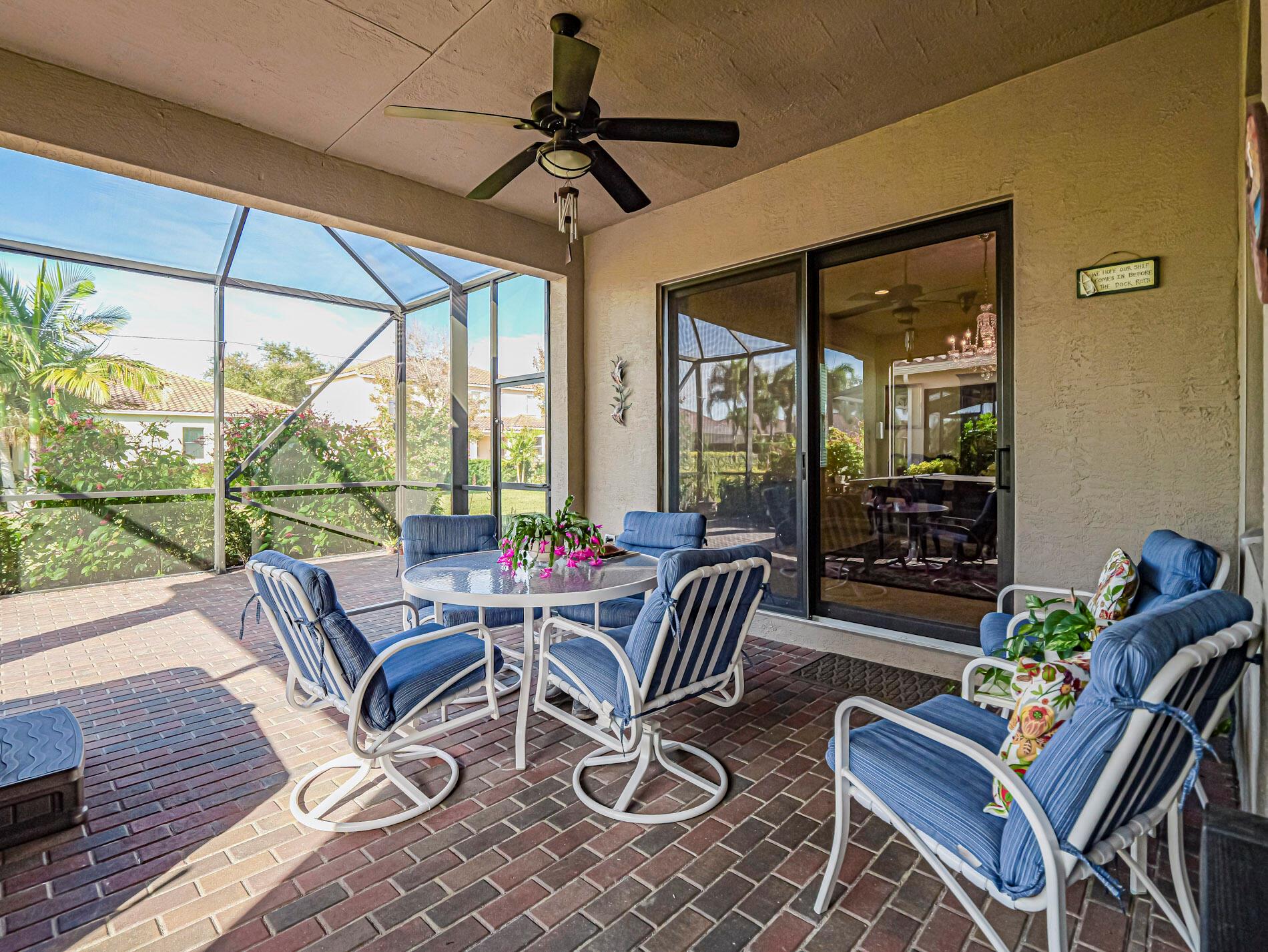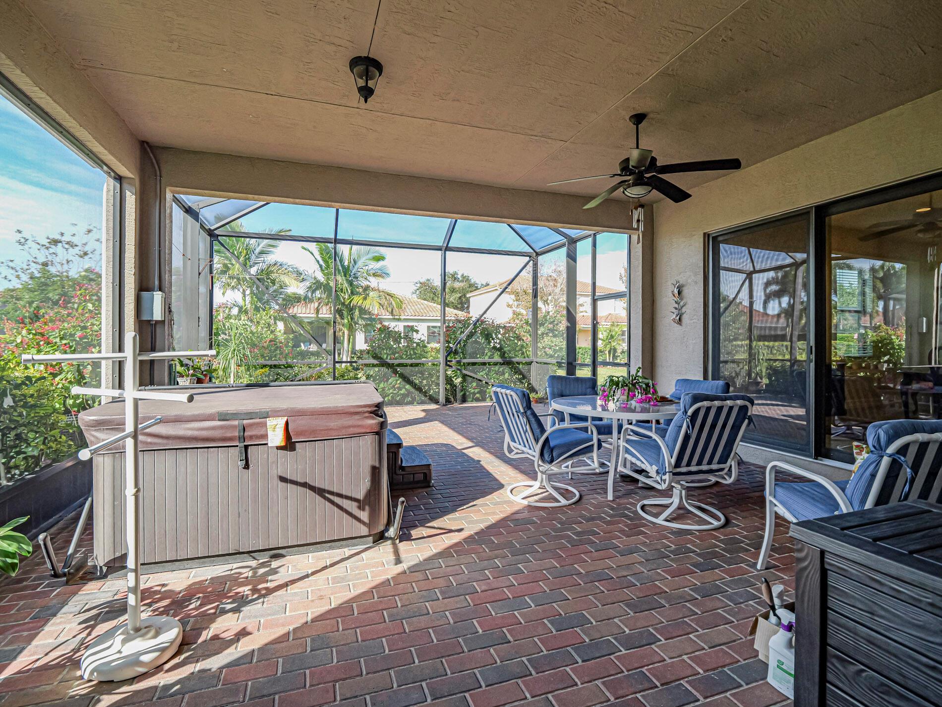 Come see the desirable Richmond model. This 3/3 with a den features impact windows, 10' ceilings and 8' doorways, gourmet kitchen open with 10' island and double ovens, extended screened patio, lush landscaping and fruit trees, hot tub and much more. Gated community features low HOA fees, all lawn maintenance, fitness center, heated pool, tennis/pickleball courts, and more. Minutes from shopping, restaurants and beaches.