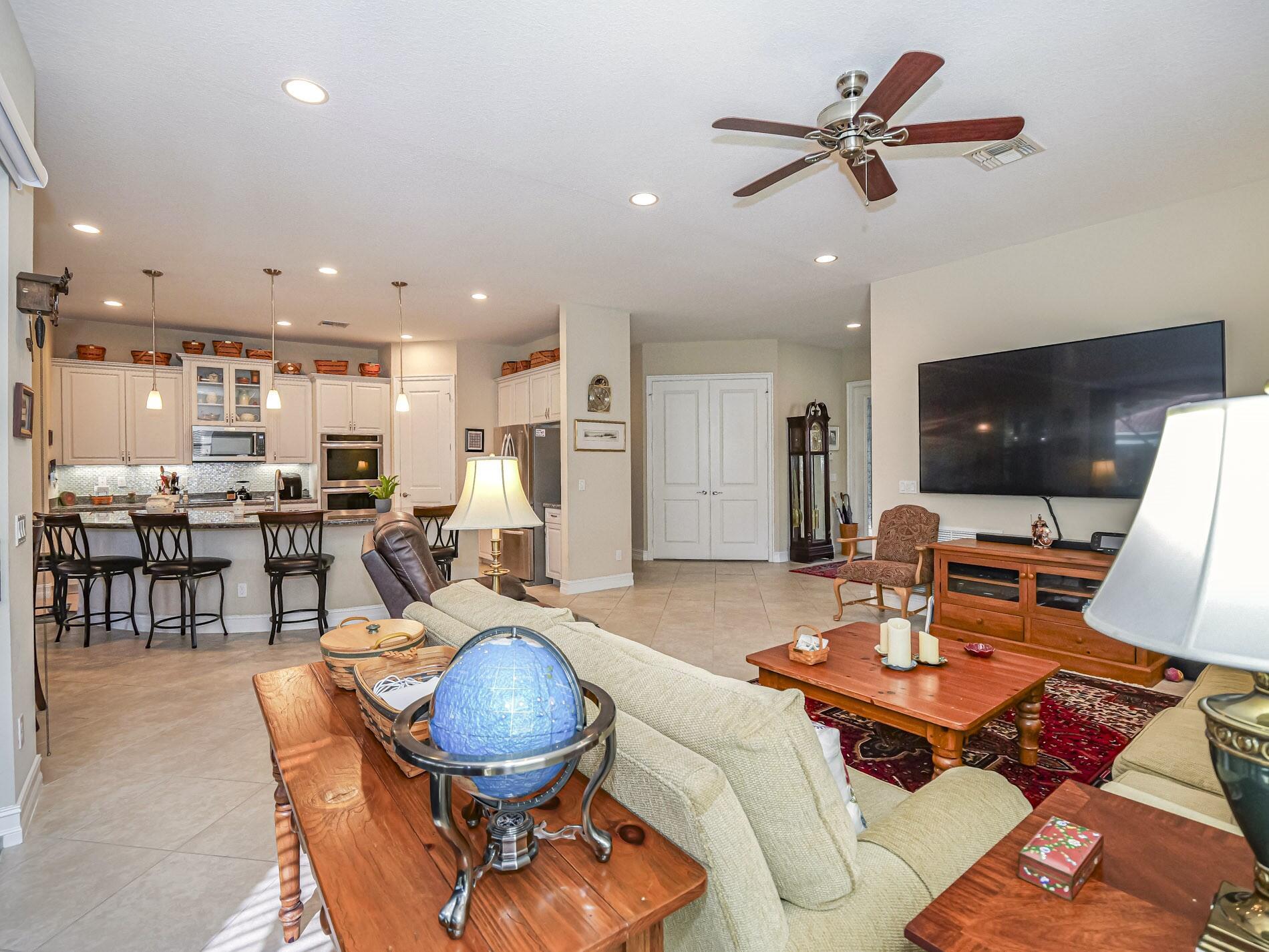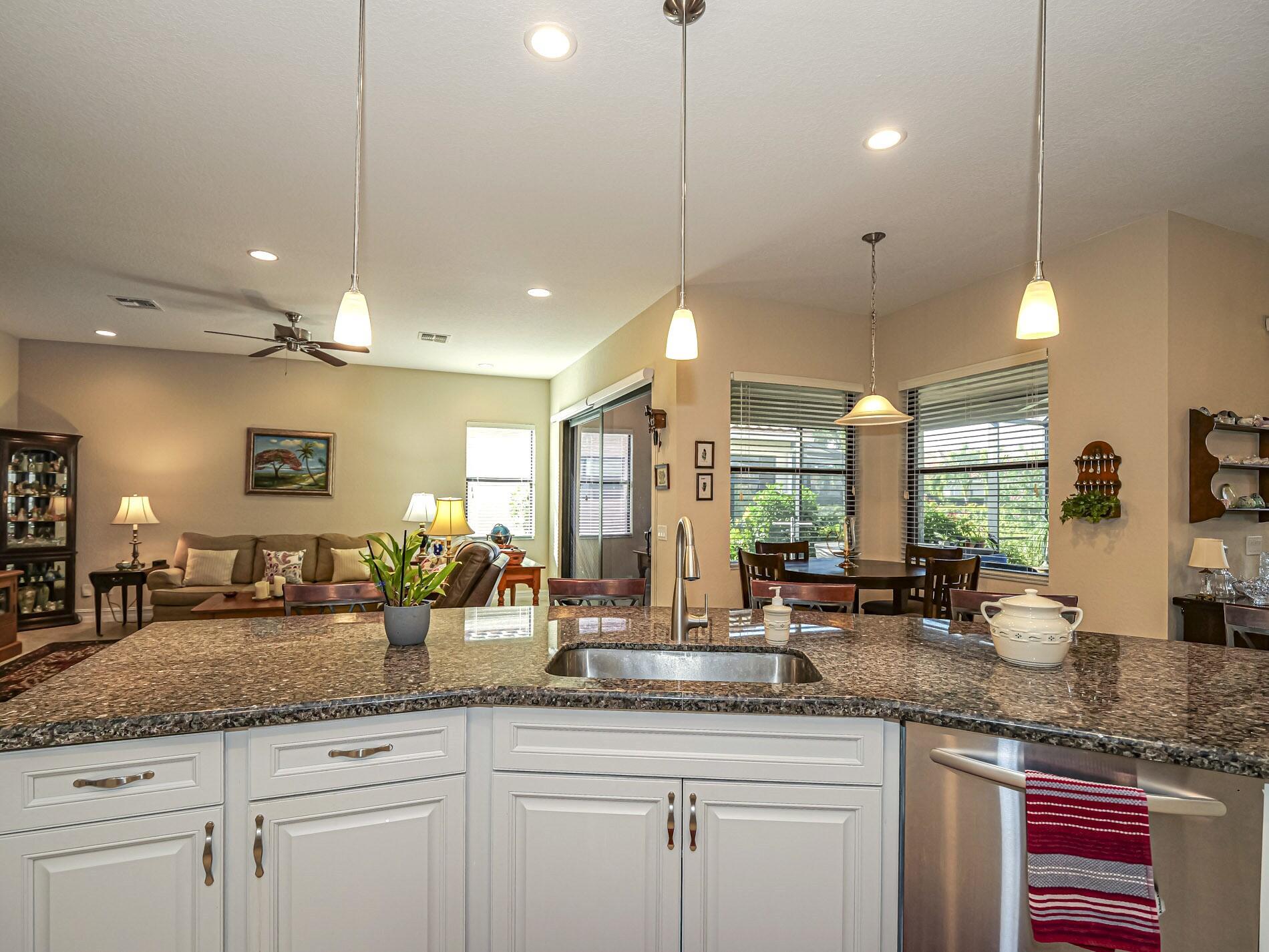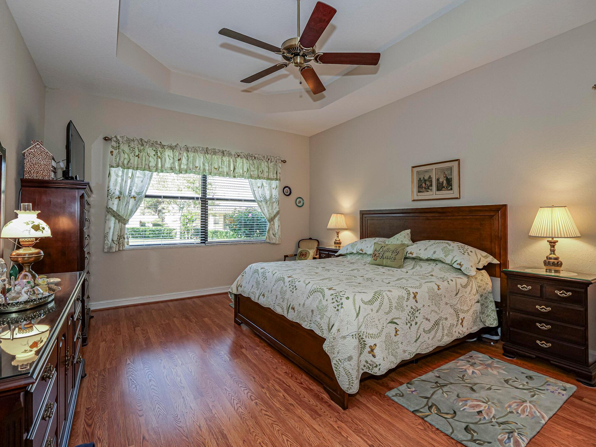 Come see the desirable Richmond model. This 3/3 with a den features impact windows, 10' ceilings and 8' doorways, gourmet kitchen open with 10' island and double ovens, extended screened patio, lush landscaping and fruit trees, hot tub and much more. Gated community features low HOA fees, all lawn maintenance, fitness center, heated pool, tennis/pickleball courts, and more. Minutes from shopping, restaurants and beaches.