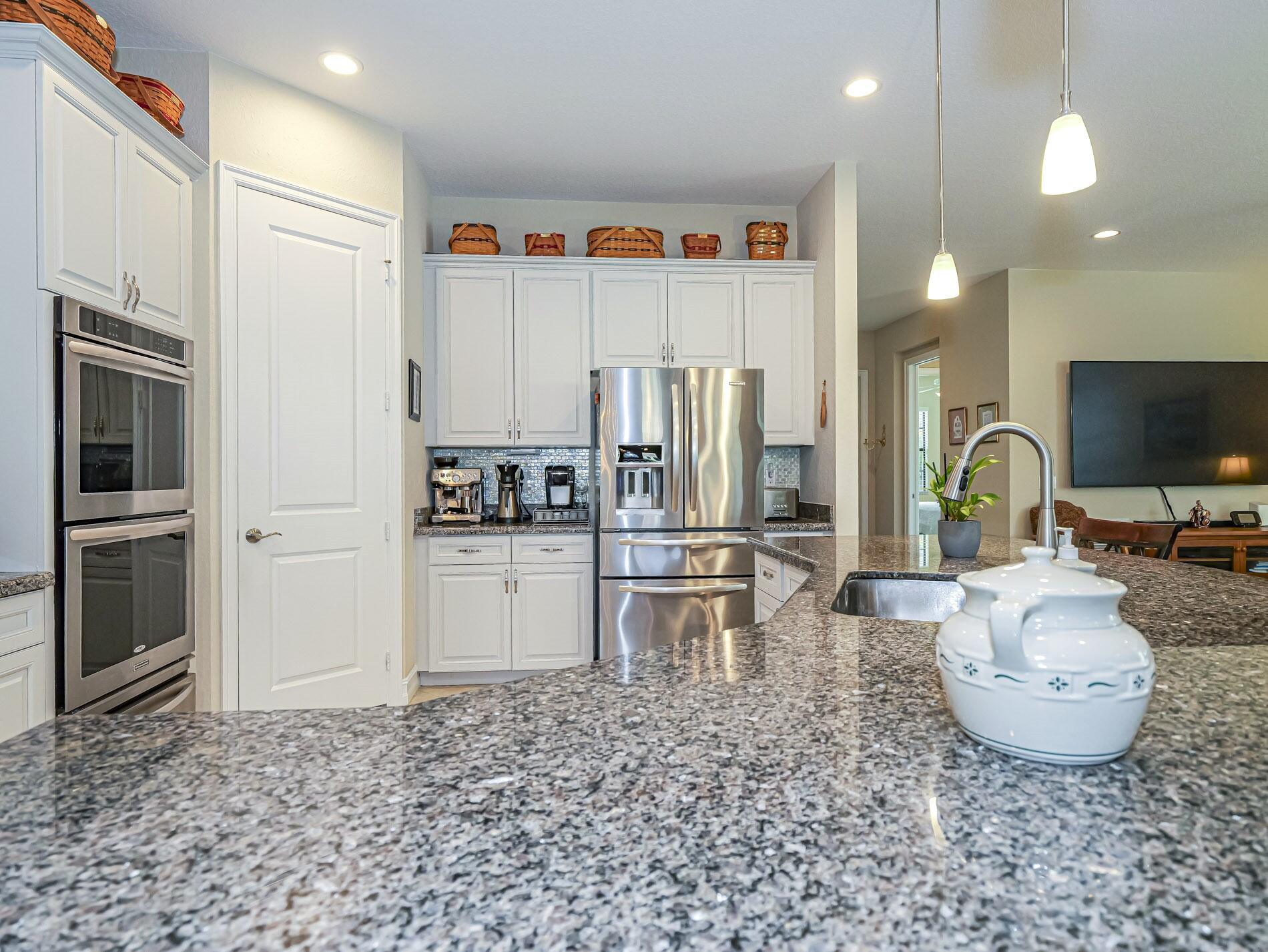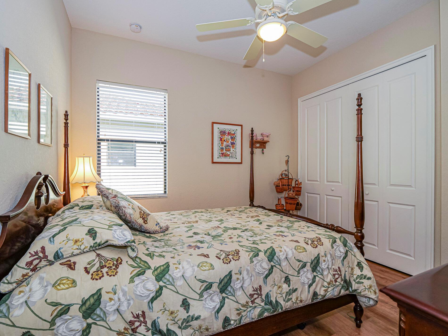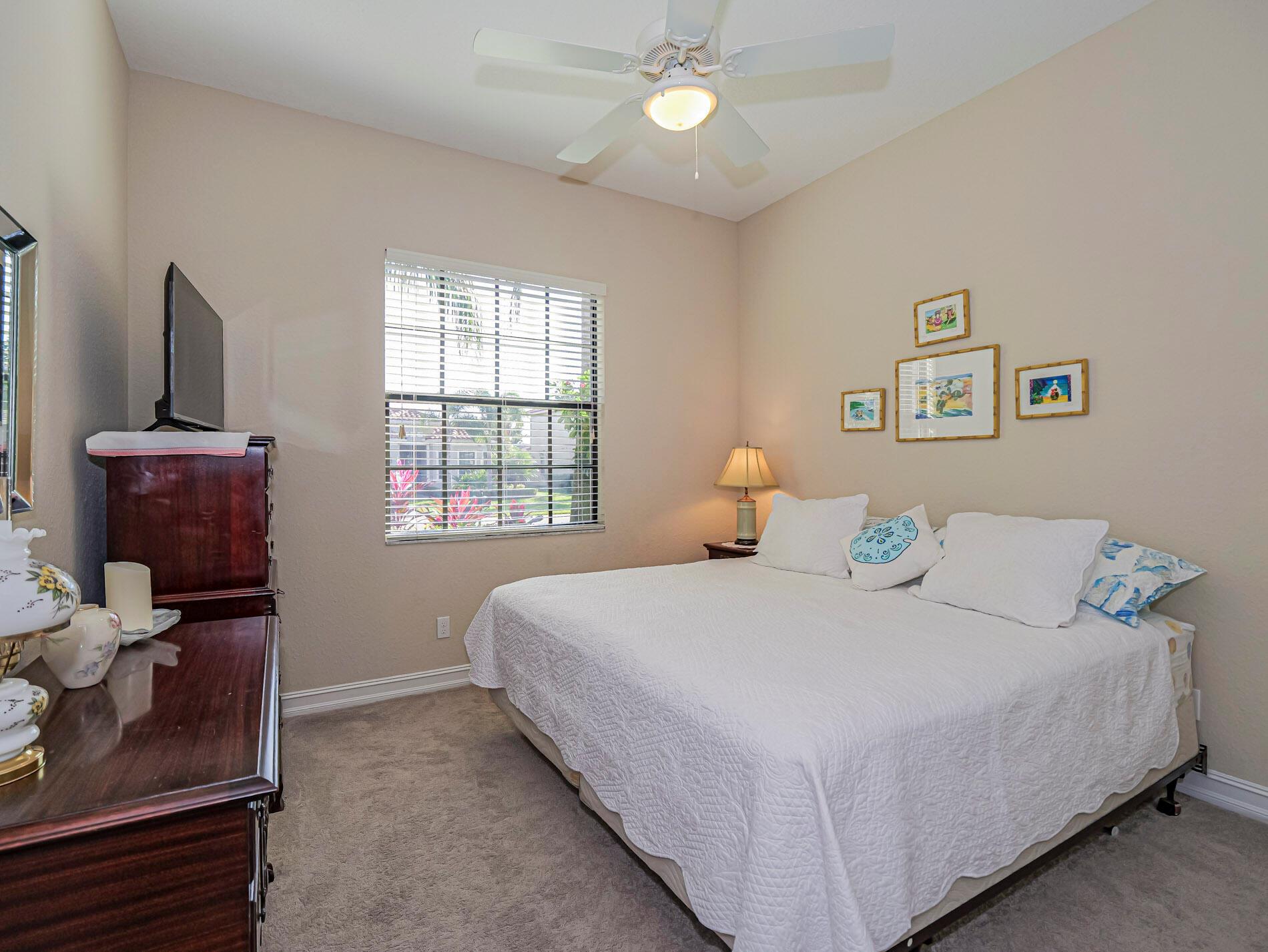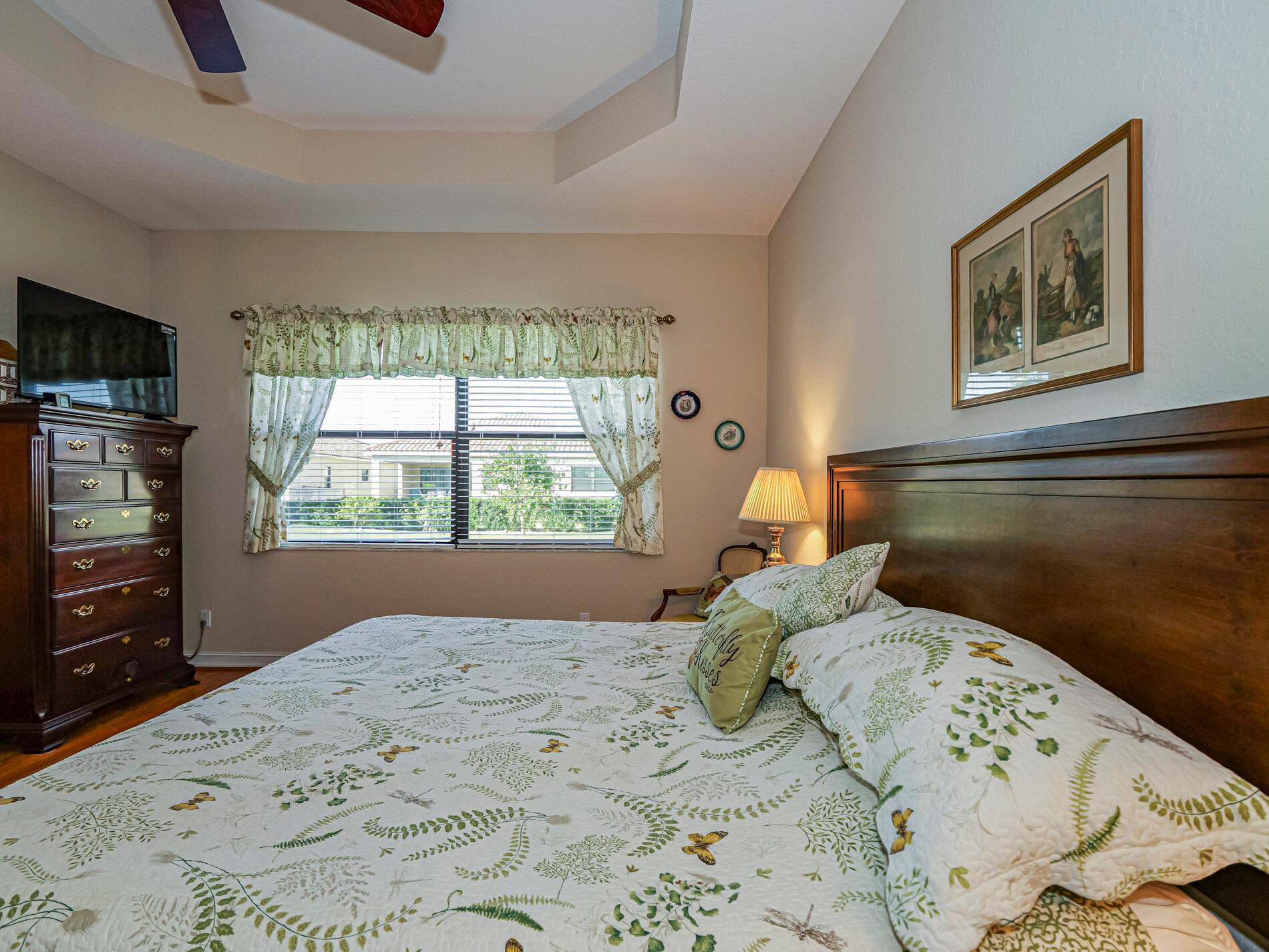 Come see the desirable Richmond model. This 3/3 with a den features impact windows, 10' ceilings and 8' doorways, gourmet kitchen open with 10' island and double ovens, extended screened patio, lush landscaping and fruit trees, hot tub and much more. Gated community features low HOA fees, all lawn maintenance, fitness center, heated pool, tennis/pickleball courts, and more. Minutes from shopping, restaurants and beaches.