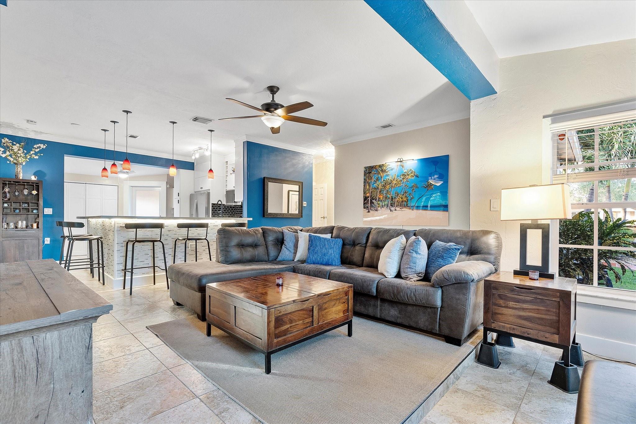 Enter into your dream home! This stunning property features a breathtaking open floor plan, soaring ceilings, elegant countertops, and gorgeous flooring. Brand-new appliances make the kitchen a chef’s paradise. Nestled in a park-like setting, the lush landscaping includes mango and coconut trees, creating your tropical oasis. Enjoy energy savings with solar panels and battery support, ensuring 24/7 power and credits from FPL! This beautifully renovated home offers 4 bedrooms, 2 bathrooms, and ADU potential to maximize functionality. The sunny gym offers endless possibilities—home office, studio, or relaxation space. Don’t miss this one-of-a-kind property that blends luxury, efficiency, and versatility. Schedule your showing today!