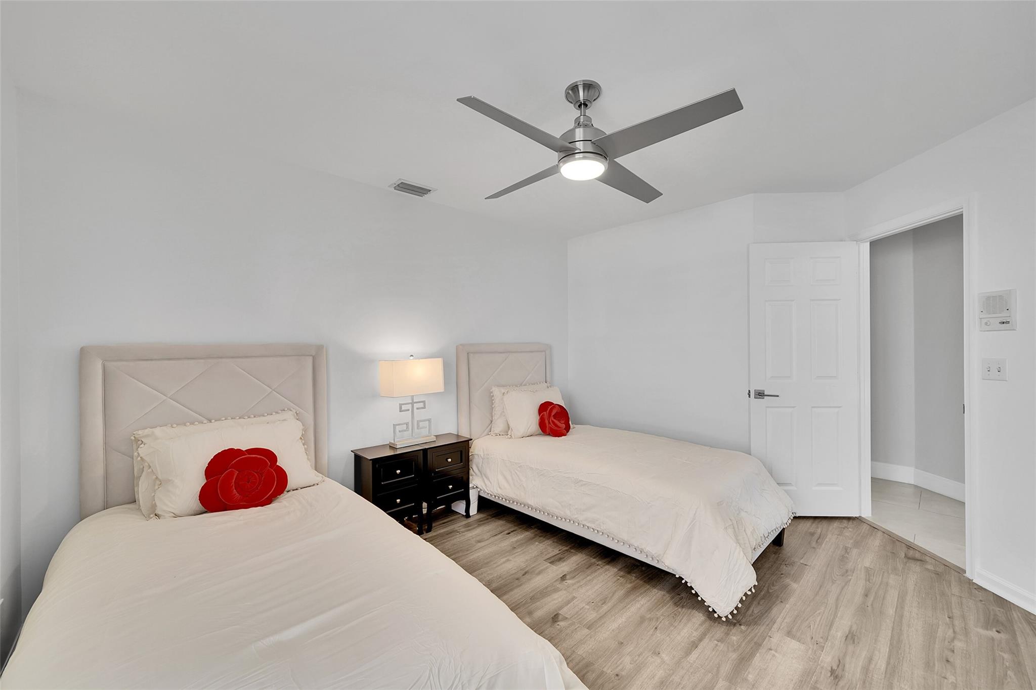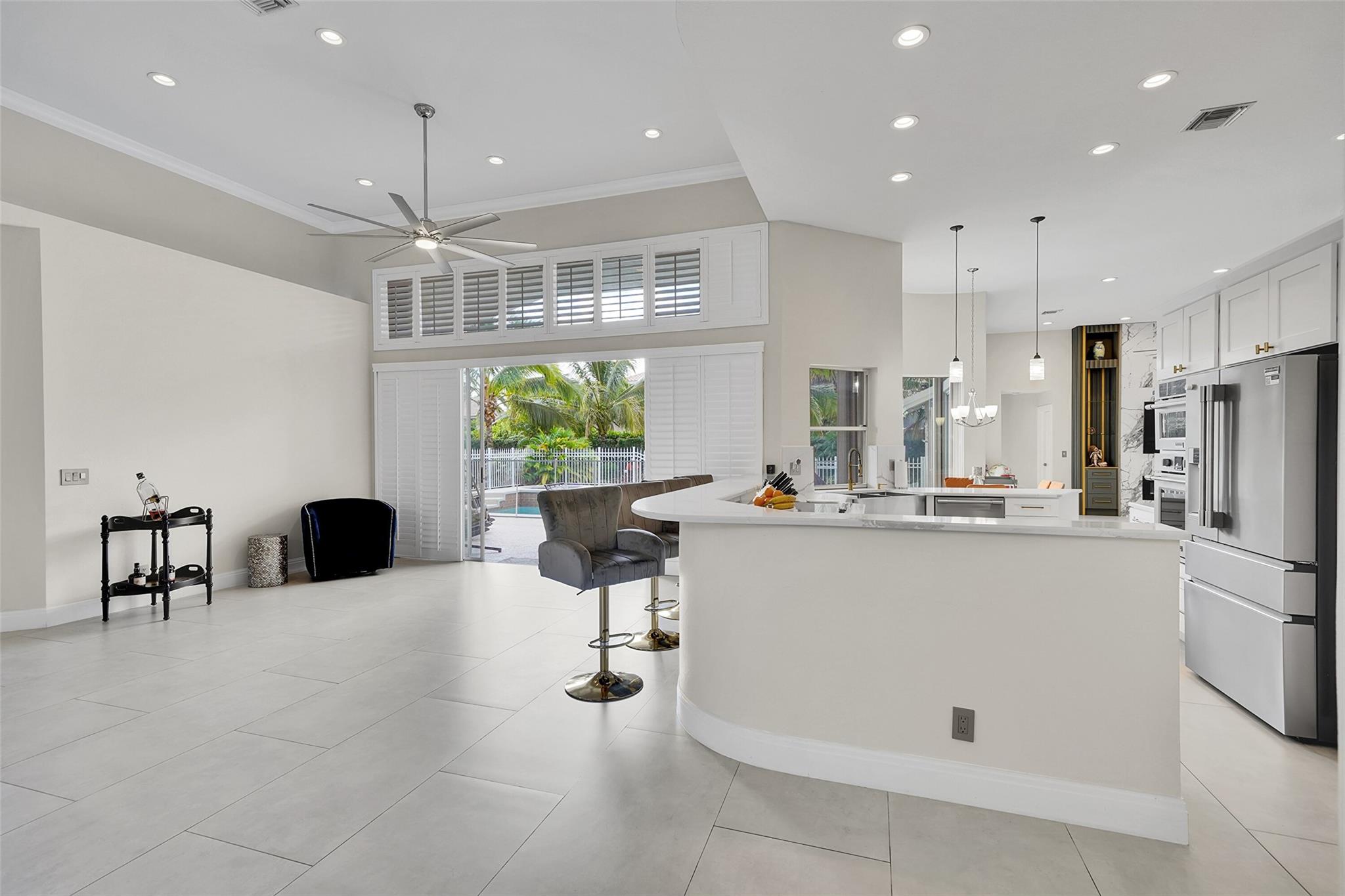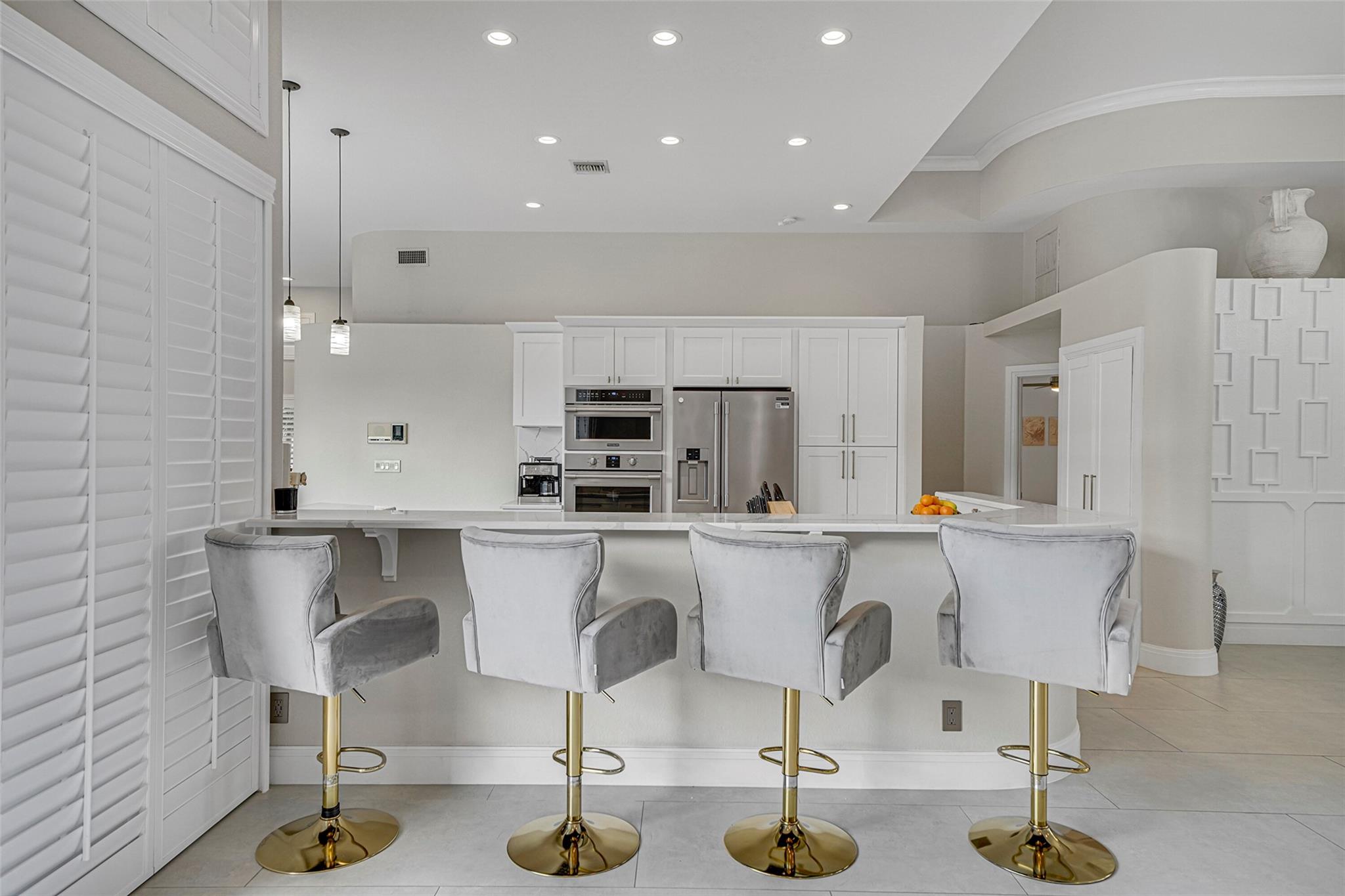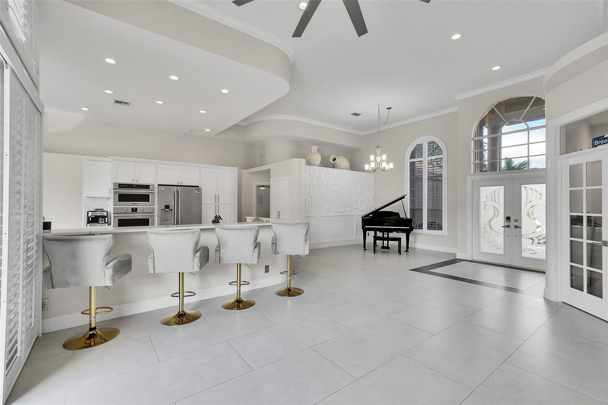 Welcome to your dream home in Kensington Gardens! This fully remodeled residence features 5 spacious bedrooms & 3 luxurious bathrooms across over 2,800 sq. ft. Located on a large cul-de-sac lot, it offers tranquility and convenience, minutes from top-rated schools, shopping, & major highways. Highlights include soaring ceilings, new flooring throughout the home, a decorative fireplace, 2010 roof, new gourmet kitchen with Quartz counters & SS appliances. The landscaped yard has professional lighting, a sparkling pool, ample relaxation space. The master suite boasts pool access, 3-large closets, & a spa-like en suite bathroom. Practical upgrades include two new AC units, a water heater, a three-car garage, and low HOA fees. This home is a blend of luxury, comfort, and convenience—a must-see!