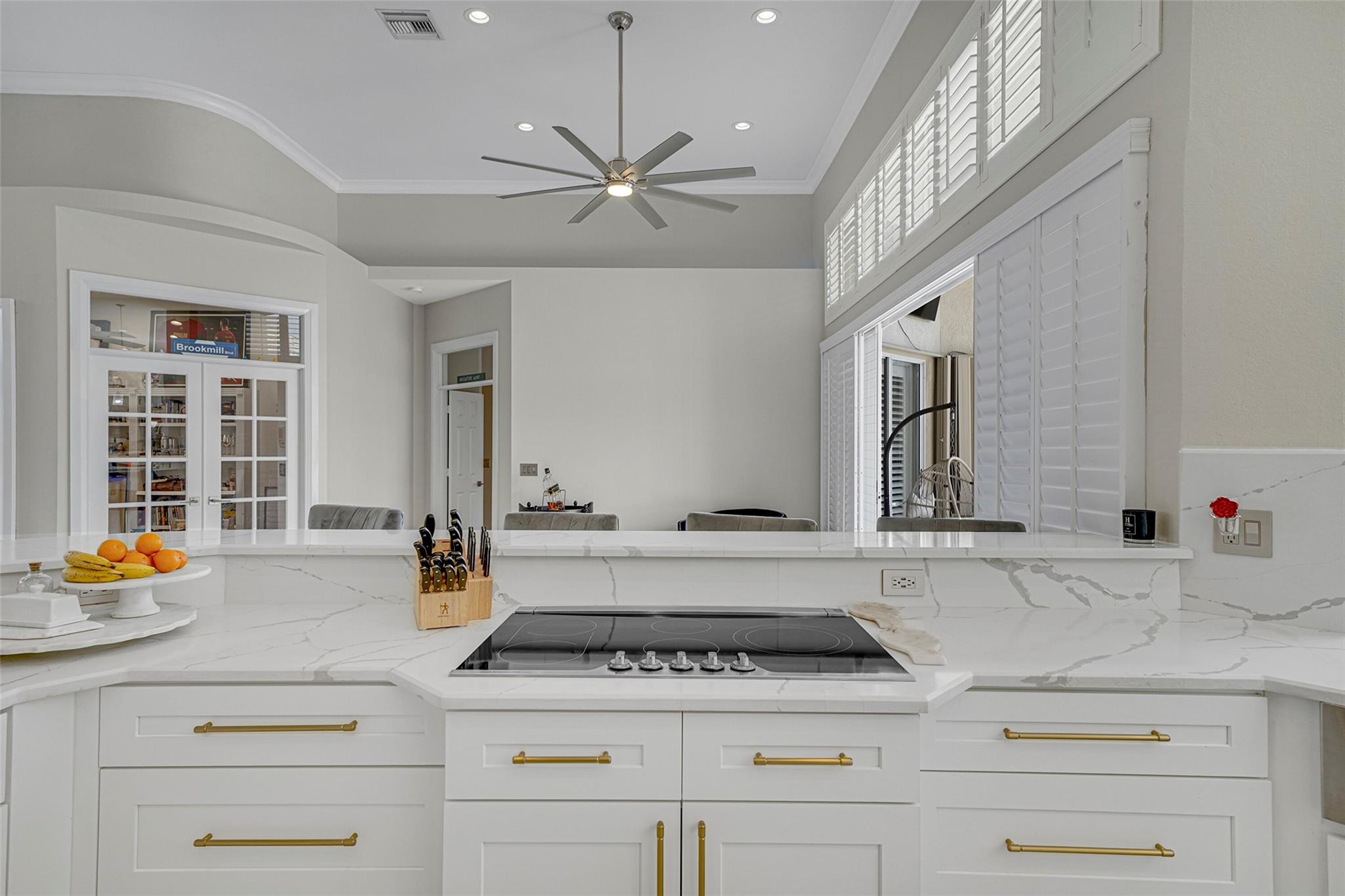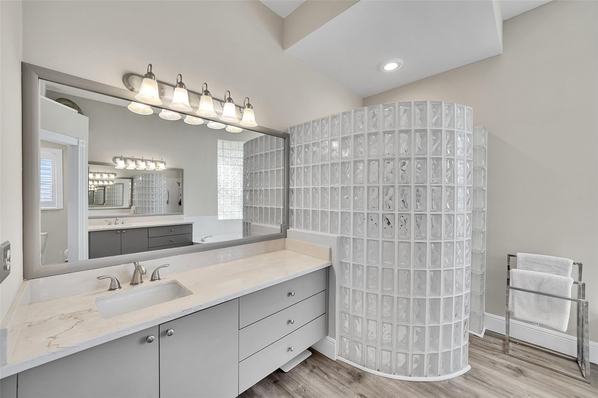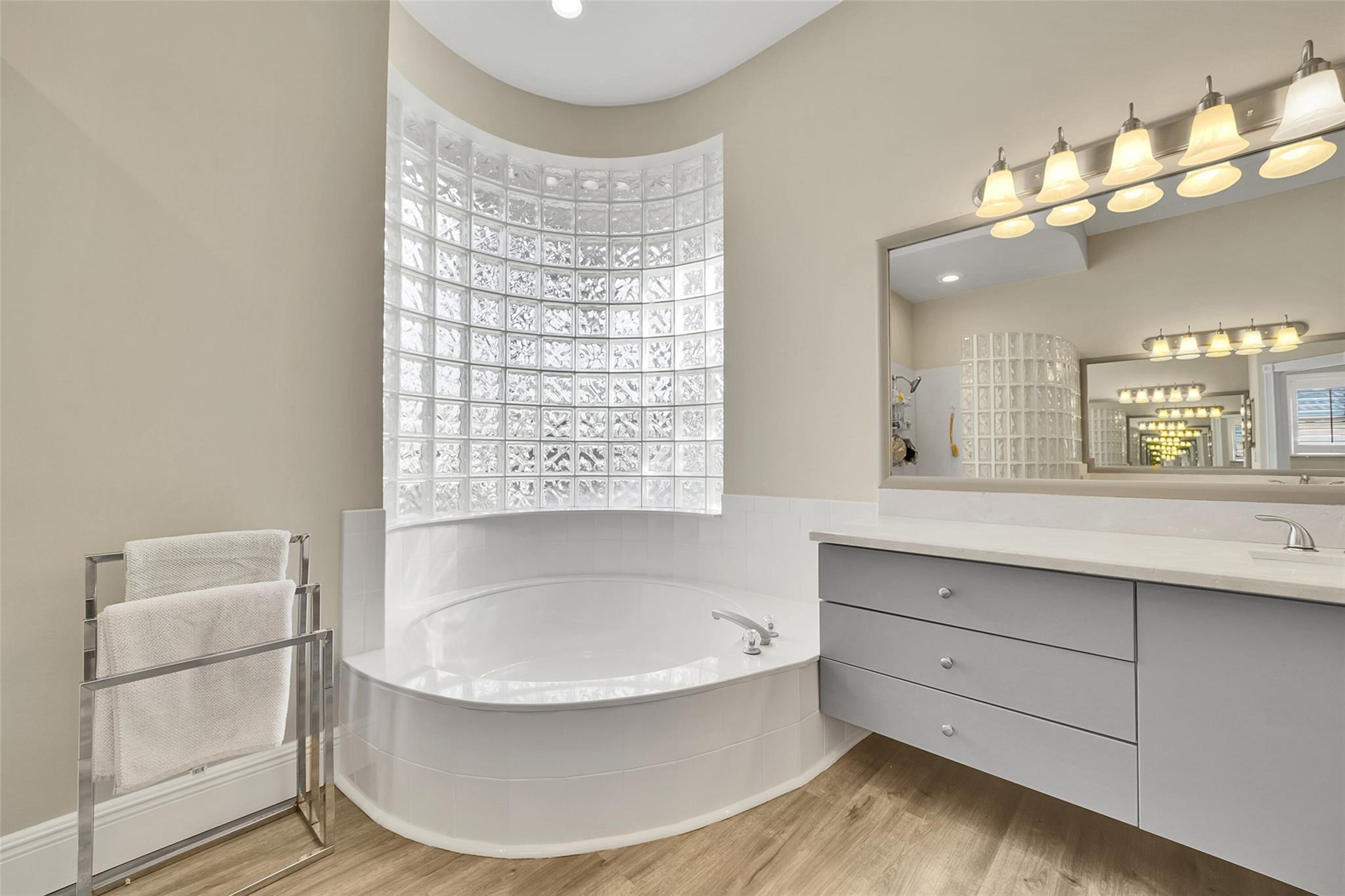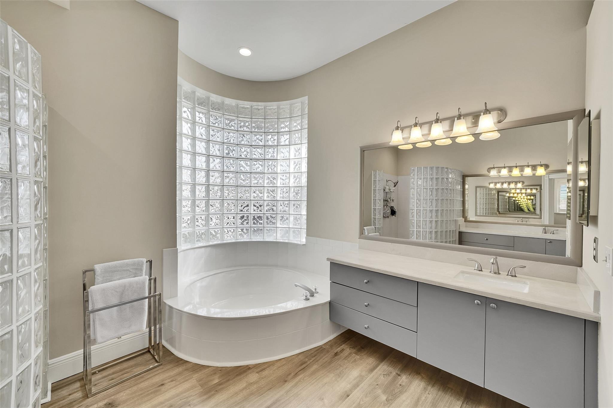 Welcome to your dream home in Kensington Gardens! This fully remodeled residence features 5 spacious bedrooms & 3 luxurious bathrooms across over 2,800 sq. ft. Located on a large cul-de-sac lot, it offers tranquility and convenience, minutes from top-rated schools, shopping, & major highways. Highlights include soaring ceilings, new flooring throughout the home, a decorative fireplace, 2010 roof, new gourmet kitchen with Quartz counters & SS appliances. The landscaped yard has professional lighting, a sparkling pool, ample relaxation space. The master suite boasts pool access, 3-large closets, & a spa-like en suite bathroom. Practical upgrades include two new AC units, a water heater, a three-car garage, and low HOA fees. This home is a blend of luxury, comfort, and convenience—a must-see!