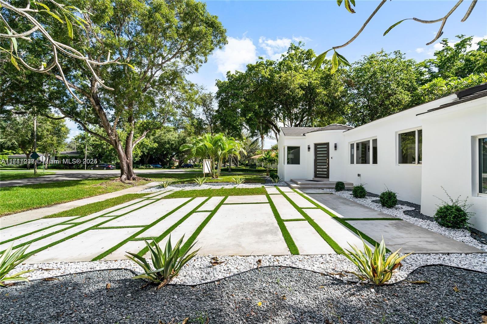 Situated at the end of a quiet street, this home is a serene retreat set on an 11,043 corner lot. Step into your own private paradise with a heated saltwater pool and jacuzzi. The spacious backyard features a sprawling pool deck and lots of green area, offering a picturesque setting for outdoor living and entertaining. New Large Driveway, Entry Stairs and Landscape design. Inside, enjoy the comfort of impact windows and doors, along with modern updates including PVC plumbing, porcelain 48x24 tiles, Custom Closets, and new Appliances. Light-filled interiors adorned with charming wood beam ceilings create a welcoming ambiance, complemented by a gourmet kitchen and renovated bathrooms. With convenient access to nearby parks and dining destinations.