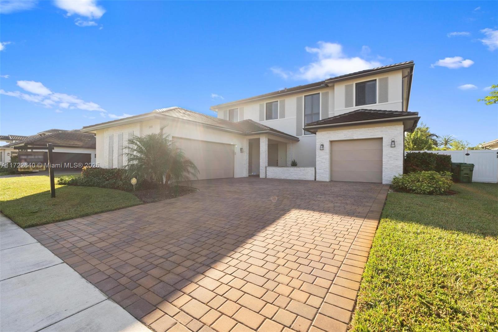 Located in Kingfisher Estates, developed in 2022 by CC Homes, this stunning 5-bedroom, 4.5-bath home in Davie blends modern luxury with thoughtful details. Features include a spacious 3-car garage, rain gutters, plantation shutters, custom closet buildouts, and a dedicated laundry room. The kitchen offers top-of-the-line stainless steel appliances, a large center island, and a walk-in pantry. The luxurious master suite boasts dual walk-in closets, a soaking tub, walk-in shower, dual vanities, and dual toilets. Additional bedrooms include walk-in closets. A covered terrace completes the outdoor living space. Located in Davie, known for lush parks, equestrian trails, and top-rated schools, with easy access to major highways—this home offers both luxury and convenience.