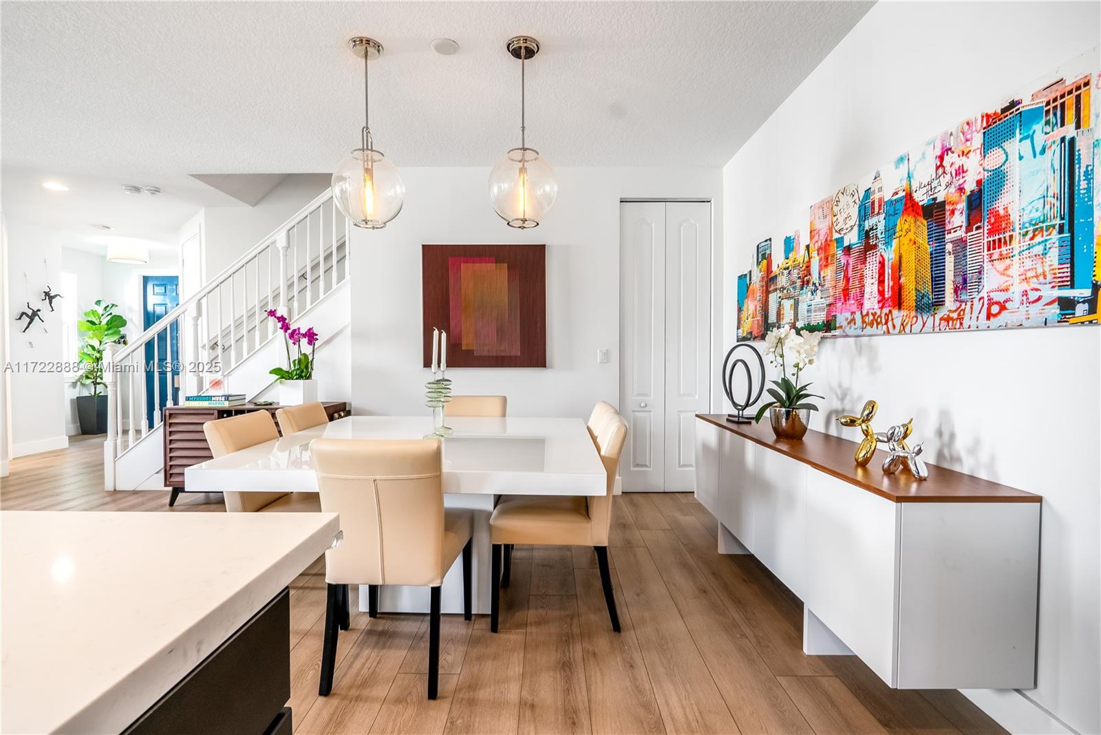 This beautiful modern 2-story home, 4 bedrooms 2.5 bathrooms, built in 2017, is located in the heart of Davie and ready for you to move in! The home features impact windows, a remodeled kitchen with quartz countertops, LED lights under the cabinets, and a custom pantry for extra storage. Enjoy the fresh look of new flooring throughout the house, along with custom-made closets in every room for better organization. The roller shades and blackouts provide privacy and style, while the patio is designed with low-maintenance artificial grass, perfect for relaxing or entertaining. Nestled in a great community, this home offers modern finishes, comfort, and a convenient location. Schedule your showing today and make it yours!