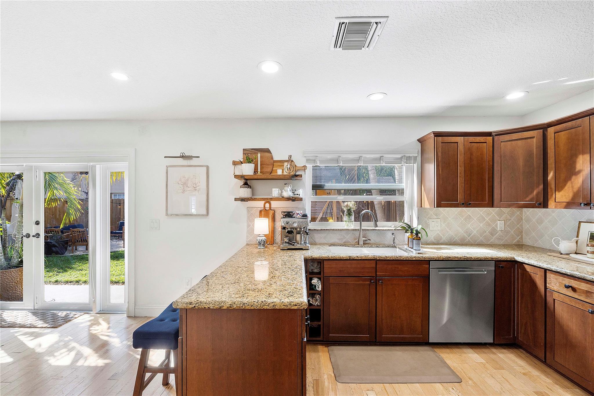 Gorgeous, move in ready home in a great location. Wall removed in the fourth bedroom to make huge primary suite. Primary bathroom updated with double vanity, walk-in glass shower enclosure, and separate soaking tub. Full impact windows and doors. Roof and gutters 2023. AC and gas water heater 2023. Beautiful hardwood floors throughout. Kitchen features granite counters, gas stove and stainless appliances. Downstairs 1/2 bath remodeled 2023. Fully fenced backyard. Garage has been converted into a bonus/playroom and can easily converted back. Washer and dryer 2024. Outstanding location and neighborhood. Just minutes to Sawgrass Mills, Sawgrass Expressway, shopping and restaurants. Schedule your showing today!