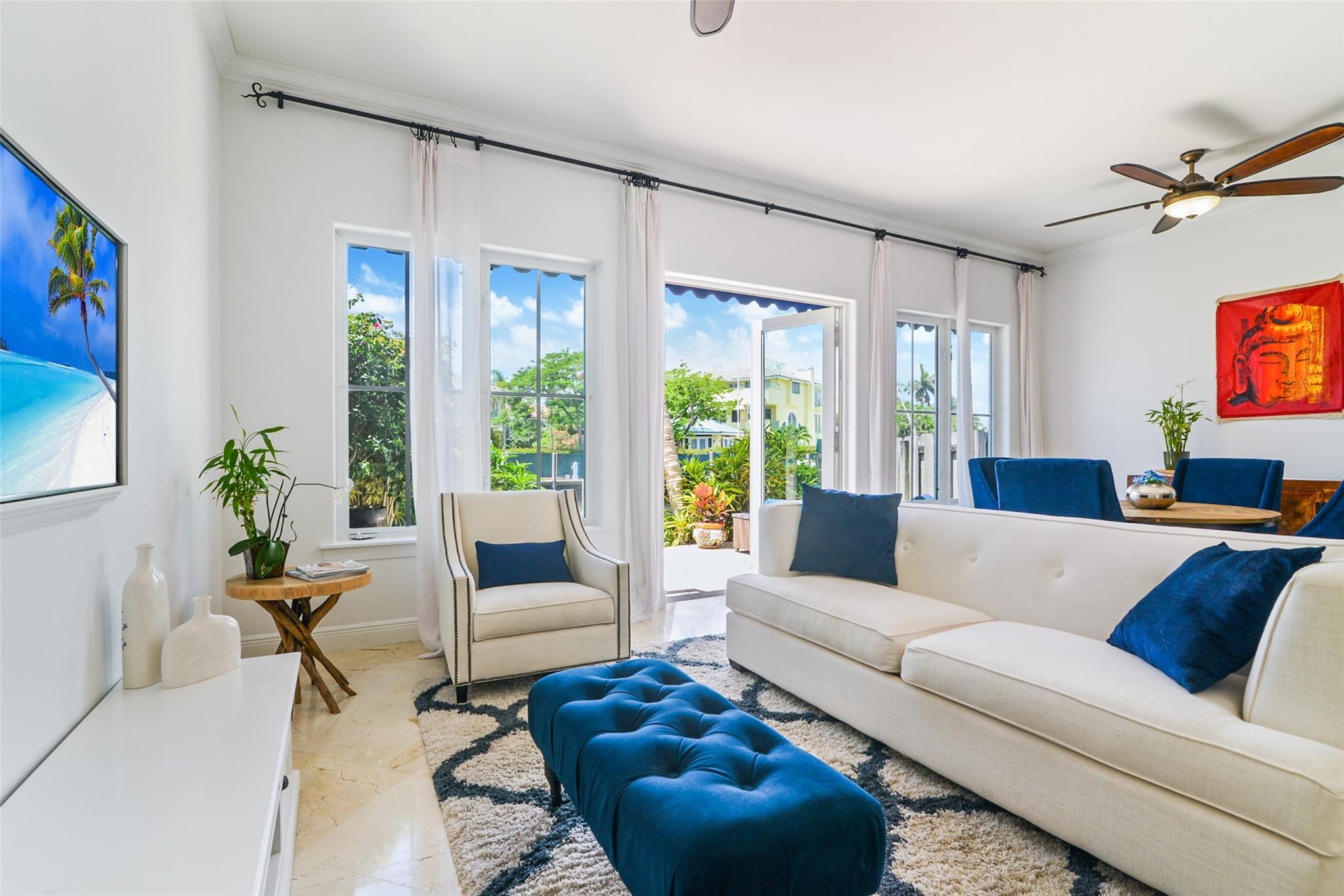 Stunning Waterfront 3-Bed, 2-Full Bath + 2 Half-Bath Townhouse, offering 3,345 sf. of living space. Features a spacious living area, open kitchen seamlessly flowing into the family room & a formal dining area. Soaring ceilings & beautiful tile and wood flooring throughout. The expansive primary suite boasts a sitting area, walk-in closets & a waterfront balcony. The primary bath offers a separate whirlpool tub, a marble shower & dual vanities. Step outside to the private 1st-floor patio, perfect for relaxation, or head up to the rooftop terrace, offering sensational Intracoastal views, equipped with summer kitchen, bar & lounging space. 2-car garage and 2 private parking spaces. Located near the beach, parks, tennis courts, Galleria Mall, and restaurants. * A+ rated Bayview School District