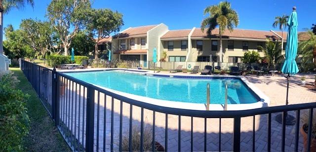 What a location!!! Right off Bayview, with all the feels of a single family neighborhood. Enter this move-in ready, fully furnished unit through the travertine tiled front patio, you are greeted by the expansive and open Living Room/Kitchen/Stairway, viewing all the way through the kitchen and dining room, to the back patio by the pool. The freshly painted, and Beautifully updated kitchen/dining room with matching cabinetry throughout, creates the perfect flow through the entire first floor, great for entertaining. Warm tile flooring throughout the lower level. Kitchen has under-counter full sized washer and dryer, SS Appliances, and granite countertops. There is a powder room on the main level, perfect for your guest, while both bedrooms on the upper level have their own full bathrooms.