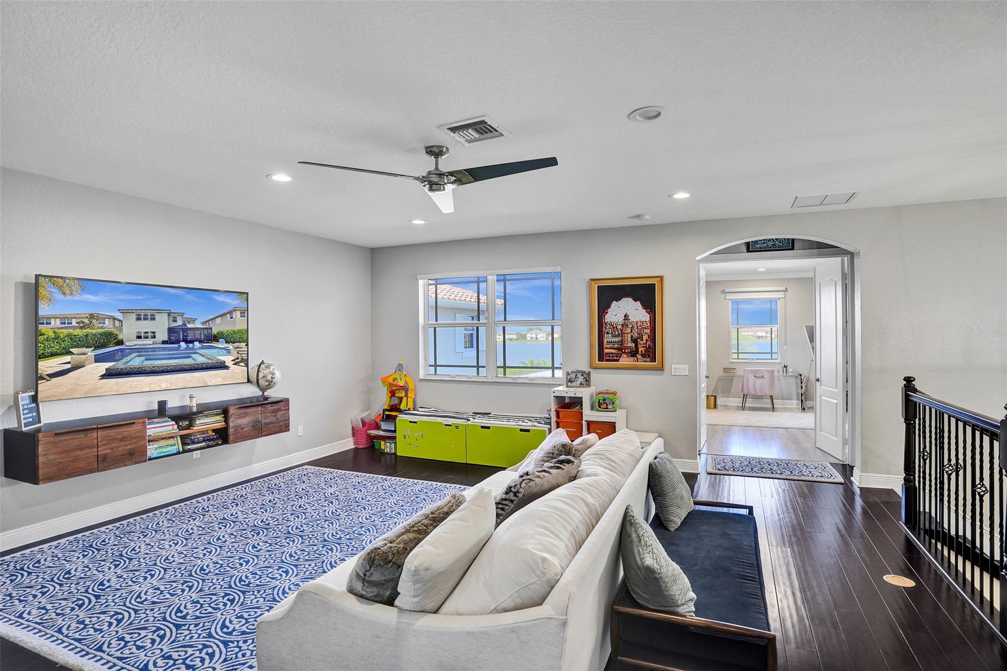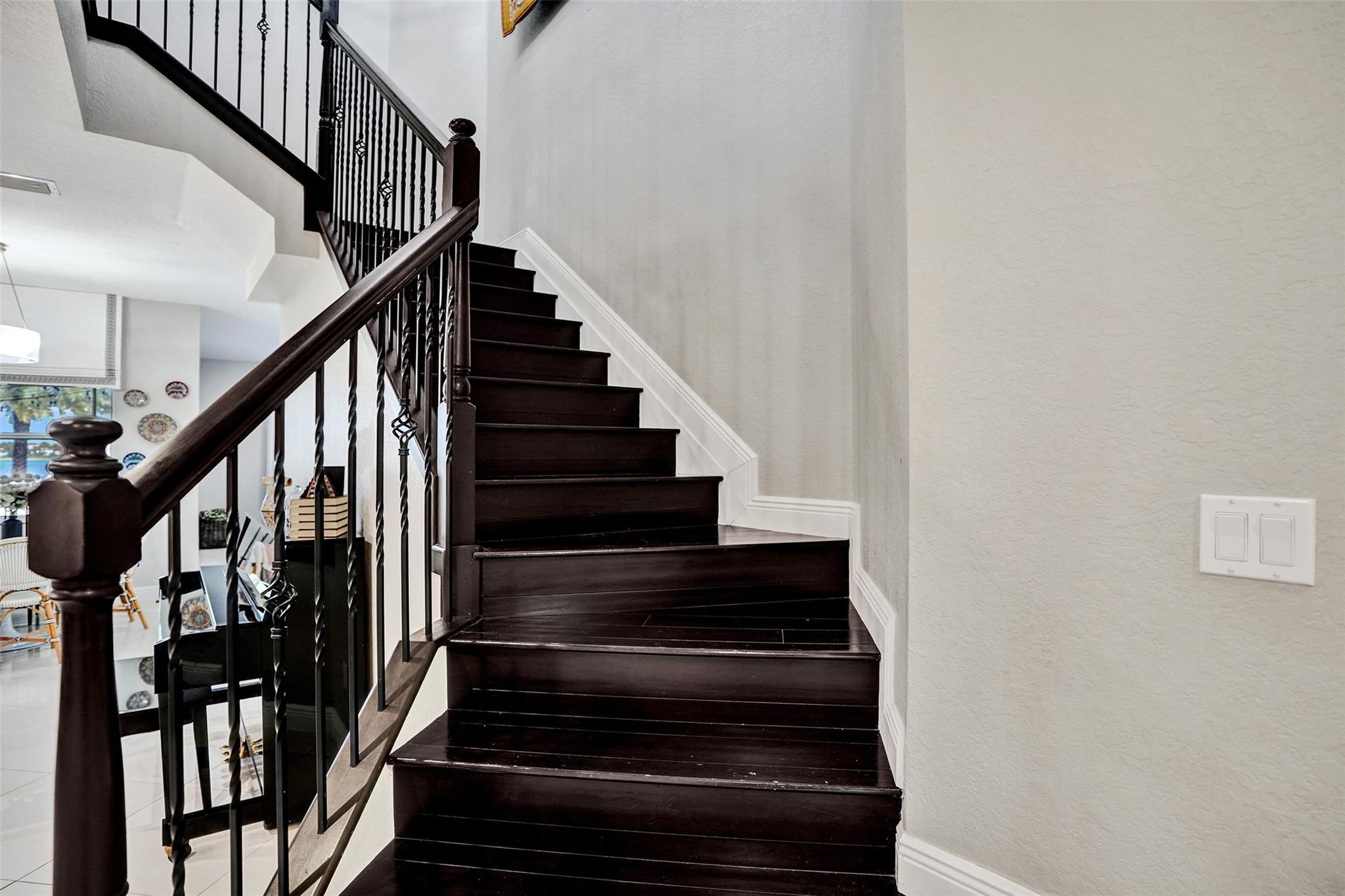 Gorgeous home, better than a model! This Waterton over 4,064 square feet is largest home in the Executive collection on an amazing wide lake water lot, in beautiful MiraLago. This home is superbly upgraded, has 5 Bedrooms (one down) and 4 full baths. Large living room, formal dining and family room make this the perfect for entertaining. Large primary suite with sitting area, custom closets and window treatments. Generous sized additional family room. Enjoy paradise in your backyard sanctuary pristine lake frontage. Spectacular pool with separate spa and several seating areas screened and open, outdoor kitchen and green spaces over $250K. Amazing gated community; resort-style amenities, including gyms, tennis, spin room, basketball, billiards room, tot lots, kids Water Parks and ballroom.