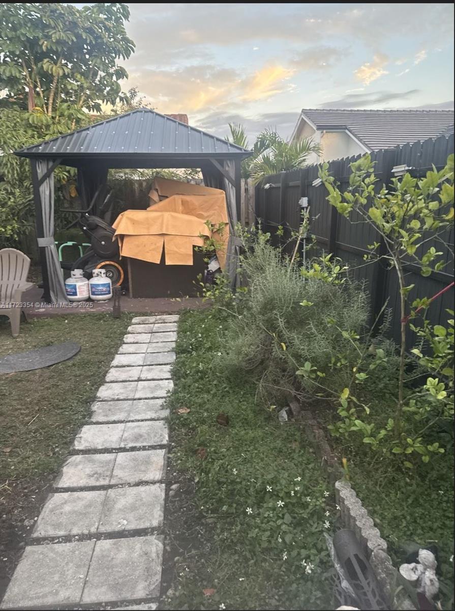 Charming and fully remodeled 4-bedroom, 4-bathroom single-family home, offering spacious living areas and a modern kitchen! Featuring a NEW roof for your peace of mind, impact-resistant doors, and windows. This beautifully updated property boasts an open-concept floor plan, a versatile den that can serve as an extra bedroom or home office, and a gourmet kitchen with high-end appliances. Each generously sized bedroom provides ample privacy and comfort. One of the 4 bedrooms has a convenient private entrance and full bathroom, offering potential for additional income. The large patio also includes a new gazebo, and a shed, perfect for outdoor relaxation and entertainment. Located in a desirable neighborhood close to top schools, shopping, and parks. This move-in-ready home is a must-see!