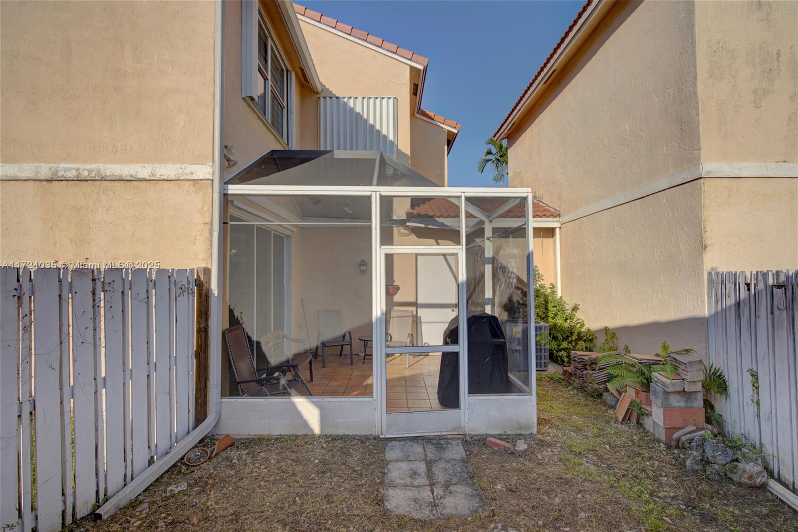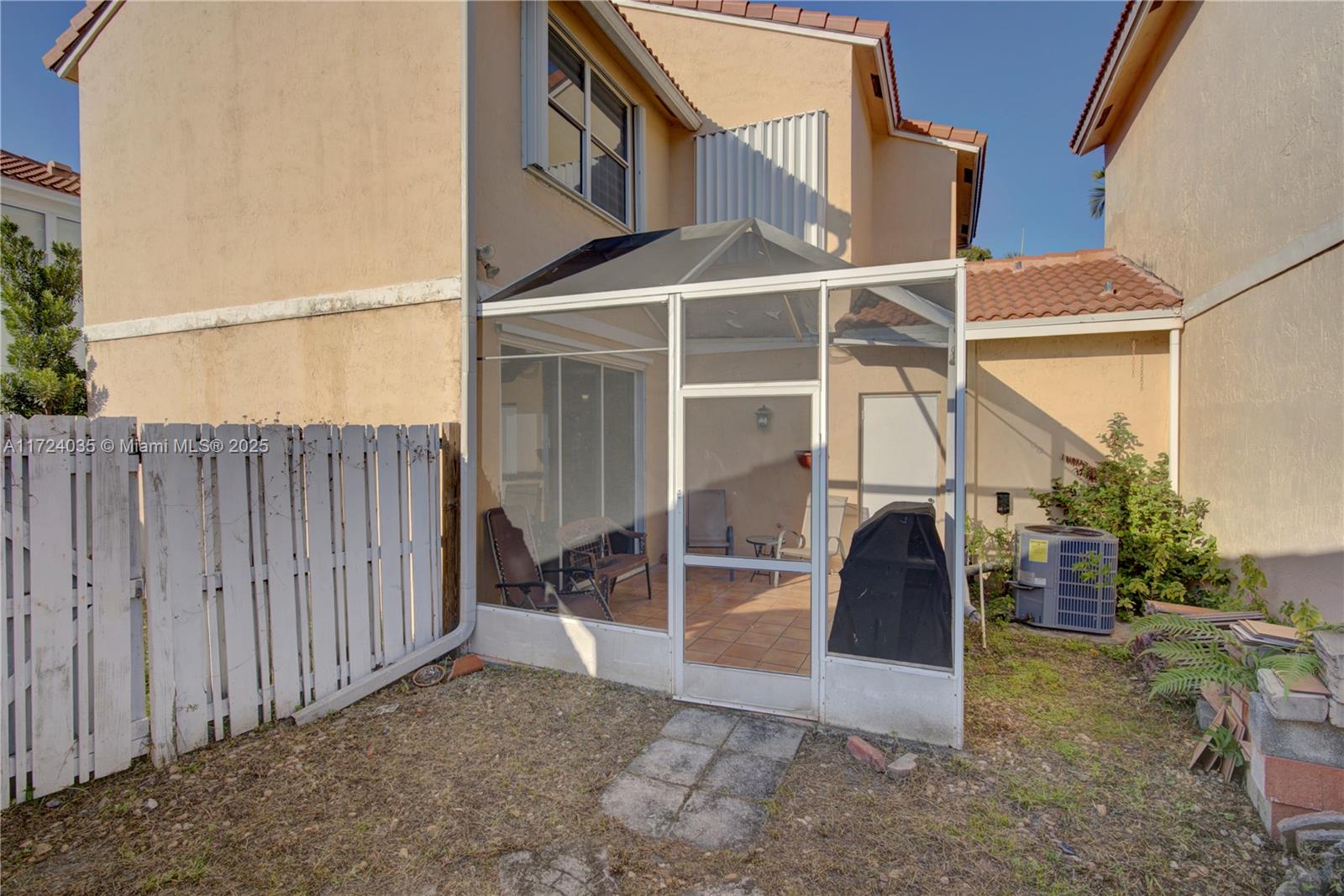 This beautiful townhouse offers a perfect blend of style and functionality. With 3 spacious bedrooms and 2.5 baths, the home features a welcoming first-floor entry, elegant tile and wood flooring, and ample natural light throughout, with a new roof installed in 2023, and brand new AC. The kitchen comes equipped with modern appliances, including a refrigerator, microwave, electric range, washer, and dryer, ensuring convenience. Upstairs, the primary suite boasts a serene retreat with a combination tub and shower. The converted garage and storage room provide additional versatility. Outdoors, enjoy the garden view from your private patio. Community amenities include a pool, tennis courts, and a clubhouse for recreation.