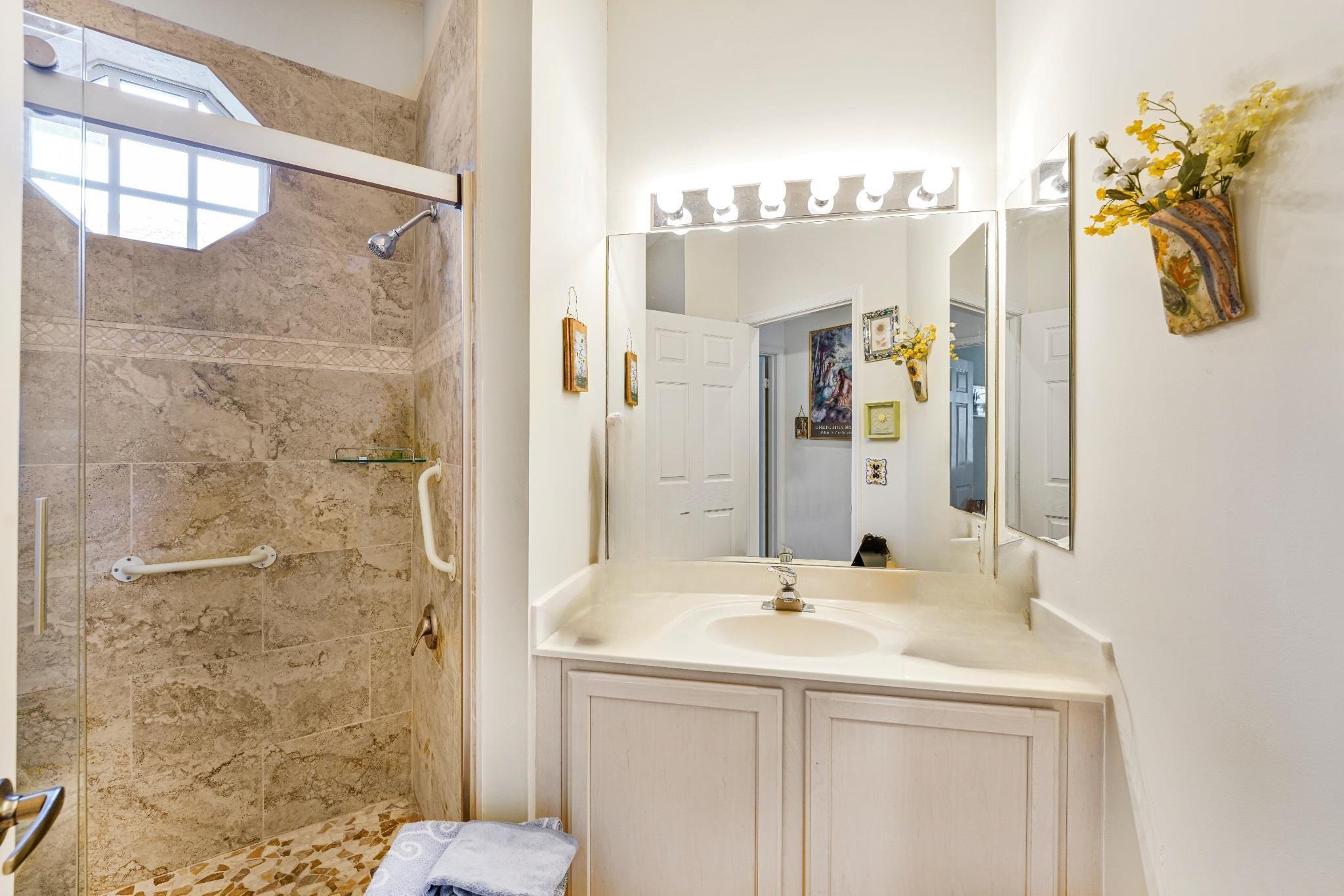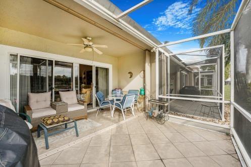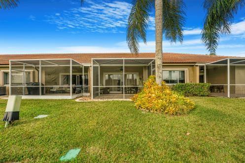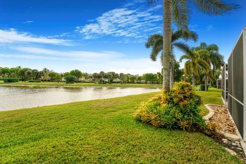 Beautiful 2 bedroom 2 bath waterfront villa with a one car garage. Two large stacked bedrooms each with their own bathrooms. Eat in kitchen and a pass through to the large living/dining area. Enjoy coffee on the lakefront open balcony. There is carpet in the 1 bedroom and tile throughout the living areas. Accordian shutters on all windows and a new roof installed in 2022. The AC is 2 years old. The home has been immaculately maintained by the original owner. The community offers something for everyone from the large clubhouse to the pool, jacuzzi, tennis courts, basketball courts, and a gym. There is an on site property manager. The community is within a mile of the turnpike, 3 miles from I-95, near all shopping, dining hospitals, airports and the beach. The only thing missing is you!!!