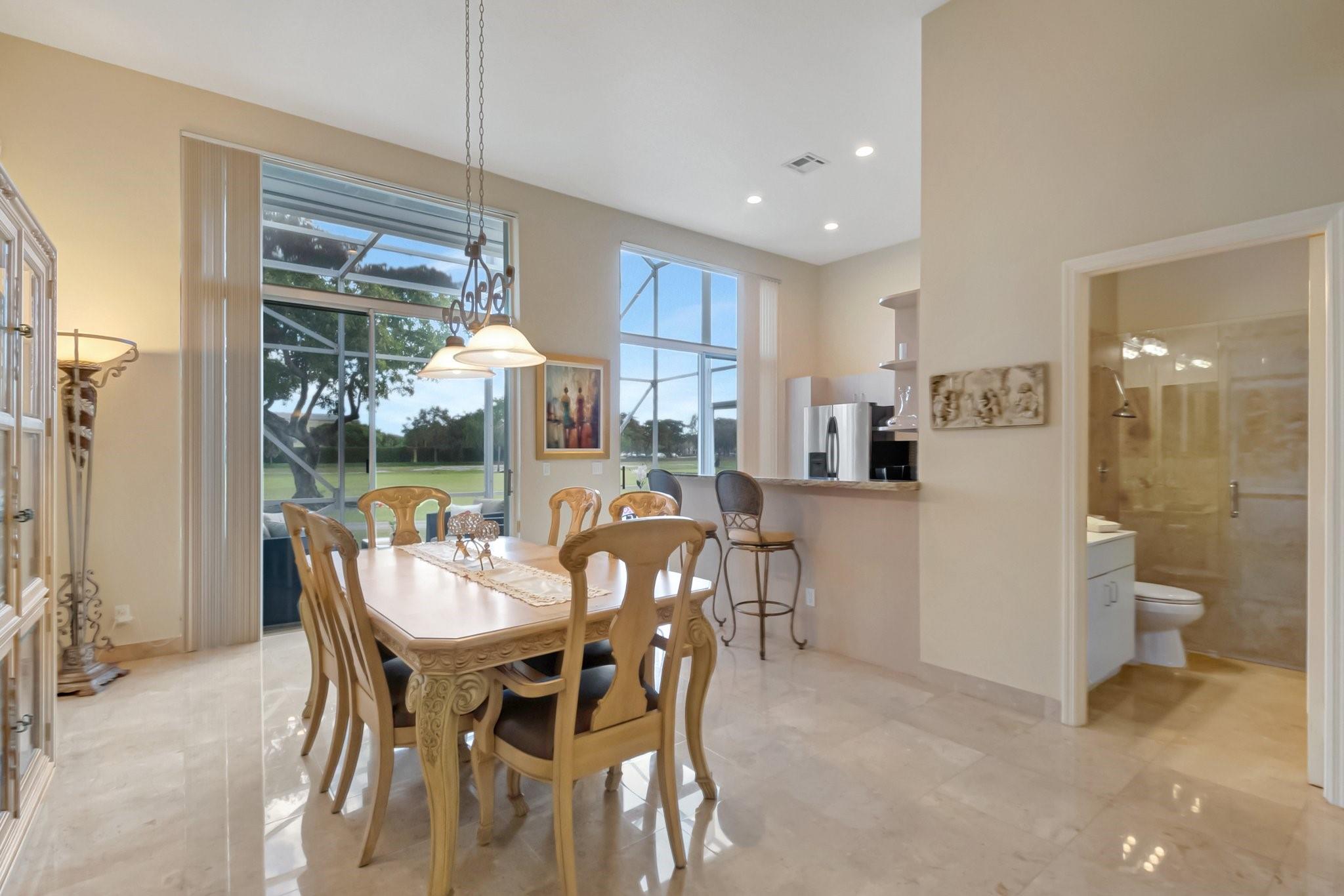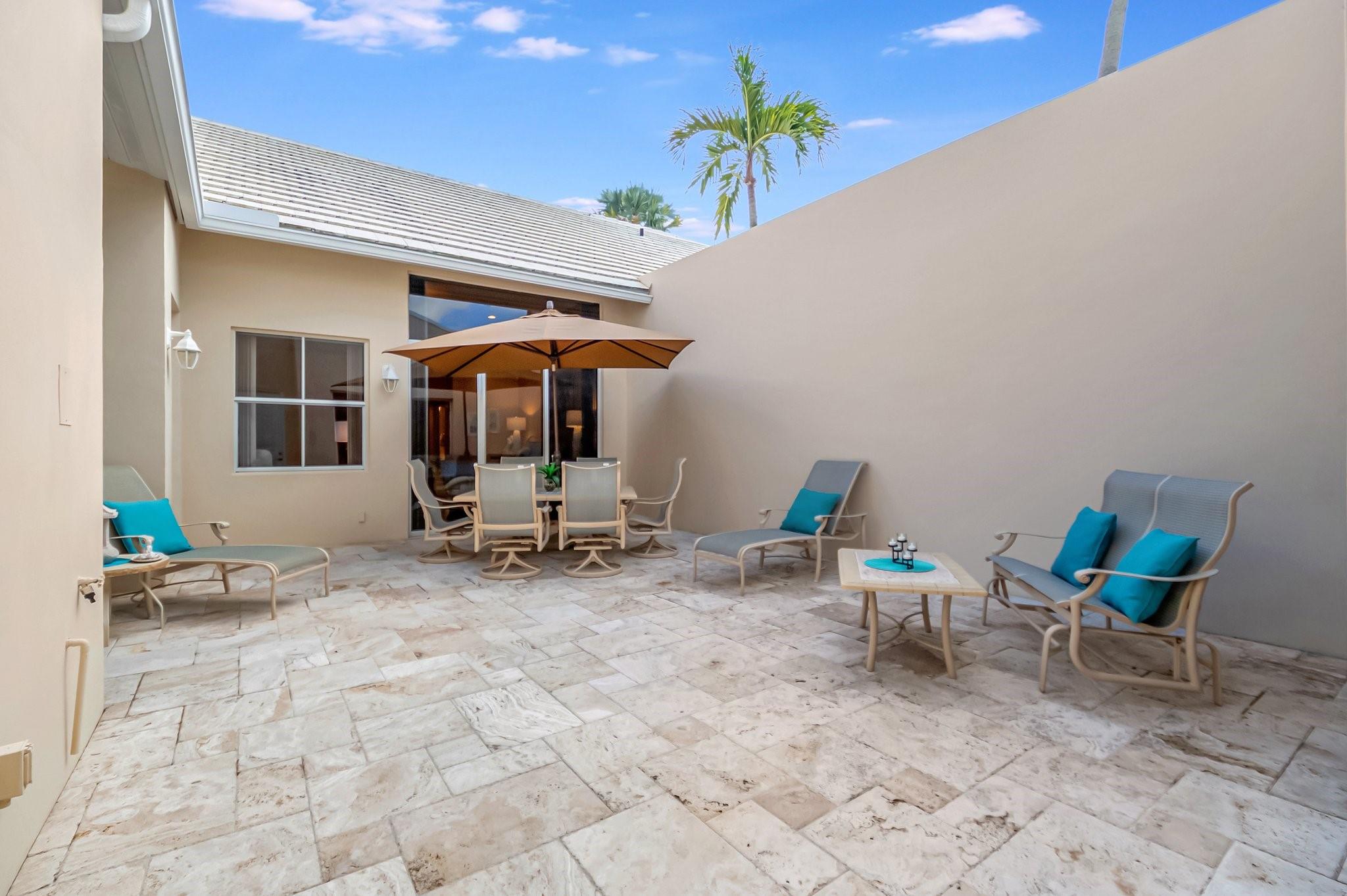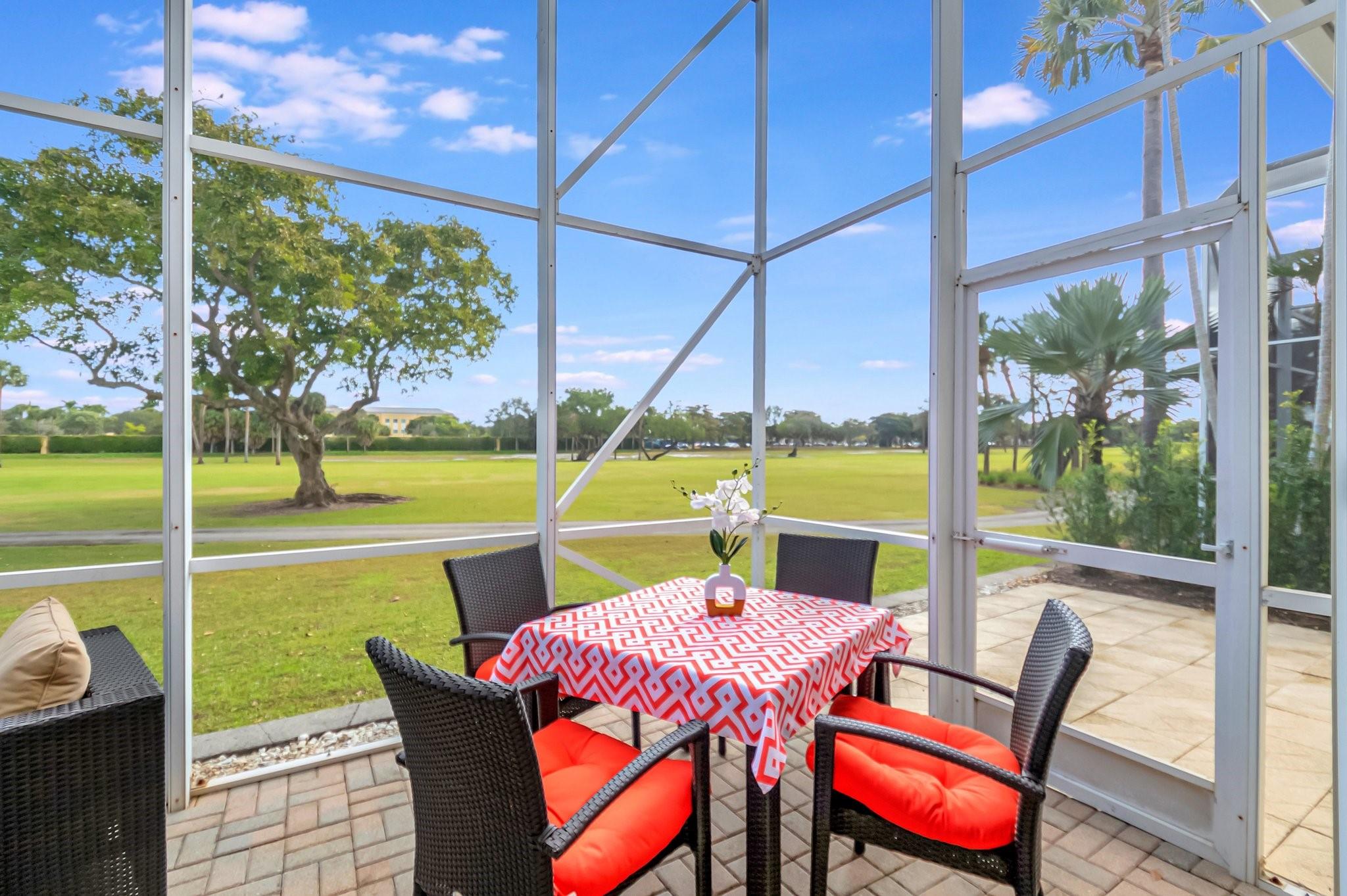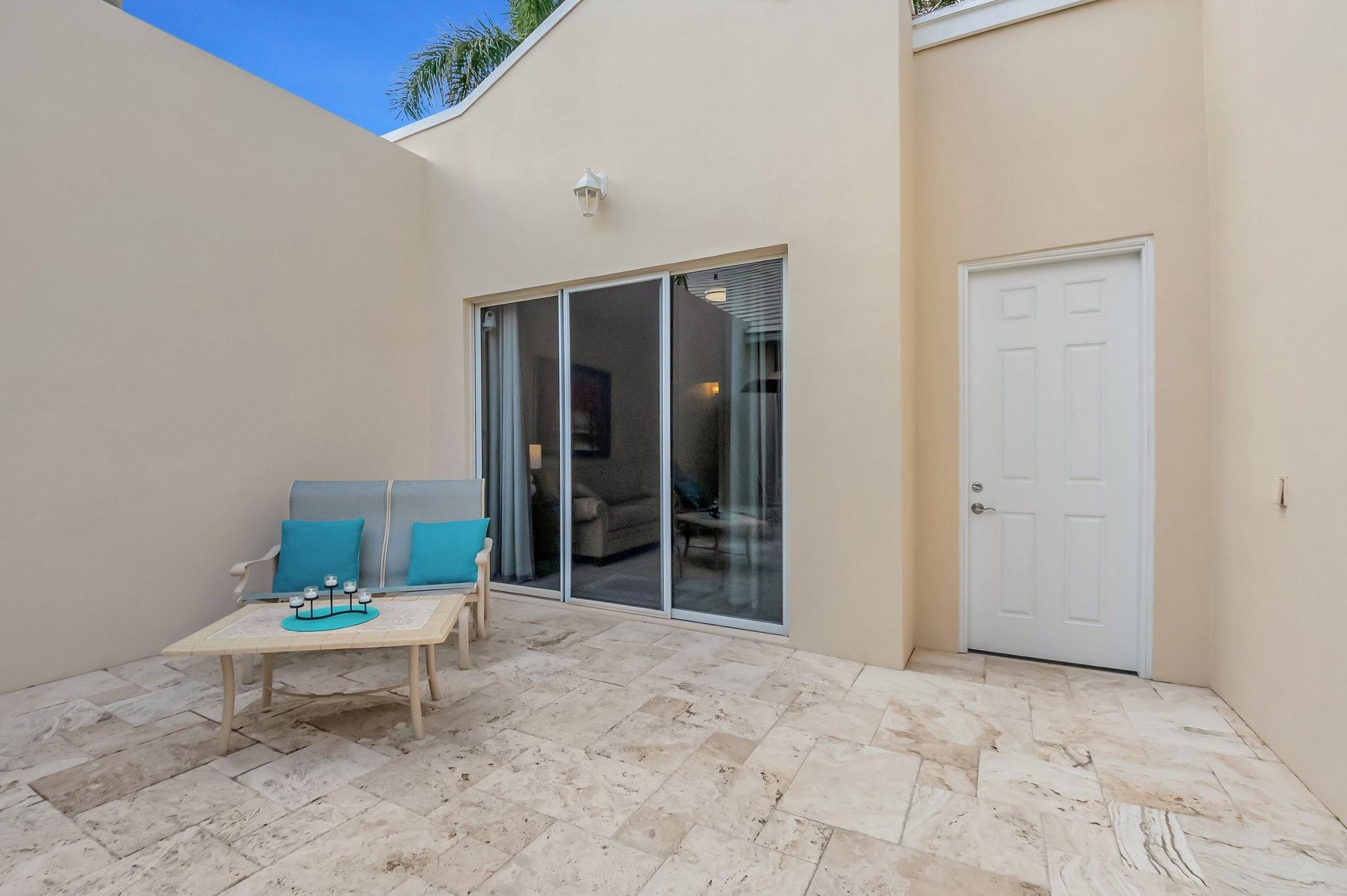 REDUCED 100K FOR QUICK SALE! STUNNING PRISTINE & BRIGHT 1-STORY COURTYARD Townhouse, 2 BEDS/3 BATHS w/GOLF VIEW in desirable GATED Community of BOCA RATON CC, NO MANDATORY MEMBERSHIP* GUEST HOUSE is the 2nd BED* FULLY NICELY FURNISHED & TURNKEY, including 2 TVs (83” & 65”), Wine cellar, Patio sets & ALL* SPLENDID MARBLE floors throughout* OPEN concept w/graceful arch & VOLUME ceilings create SPACIOUSNESS* 2 car-garage attached w/TILED floor, Laundry room & TANKLESS WH* 3 walk-in closets* EVERPURE WATER FILTER SYSTEM for the whole house* HVAC ductwork redone, relocated in ATTIC in garage for QUIETER inside, A/C 2022* HOA $500/mo: Security, Cable, INTERNET, Landscaping & Exterior Paint* Country Club living w/18 hole GOLF course (PAY AS YOU PLAY), onsite restaurant & splendid lush landscaping
