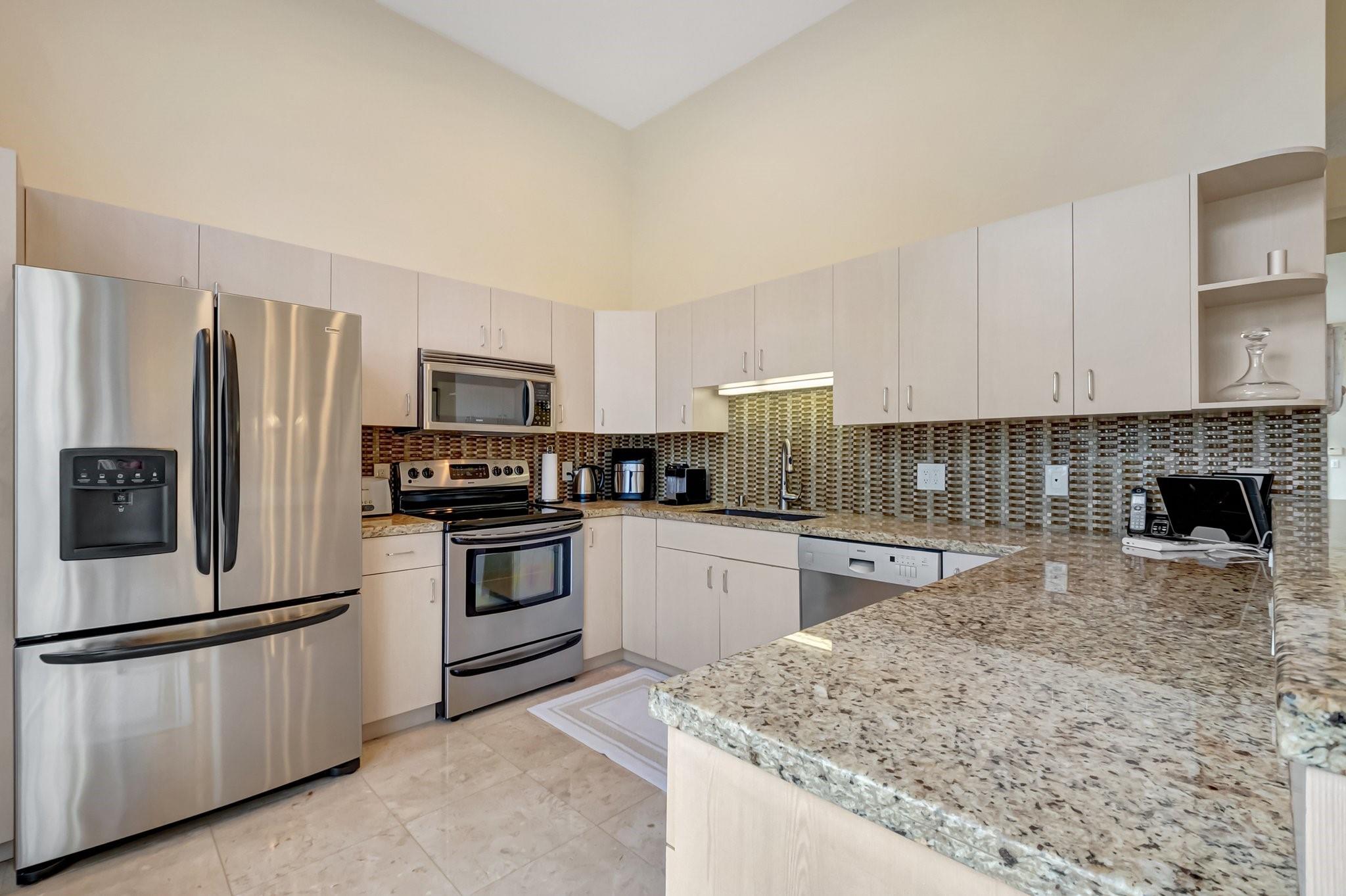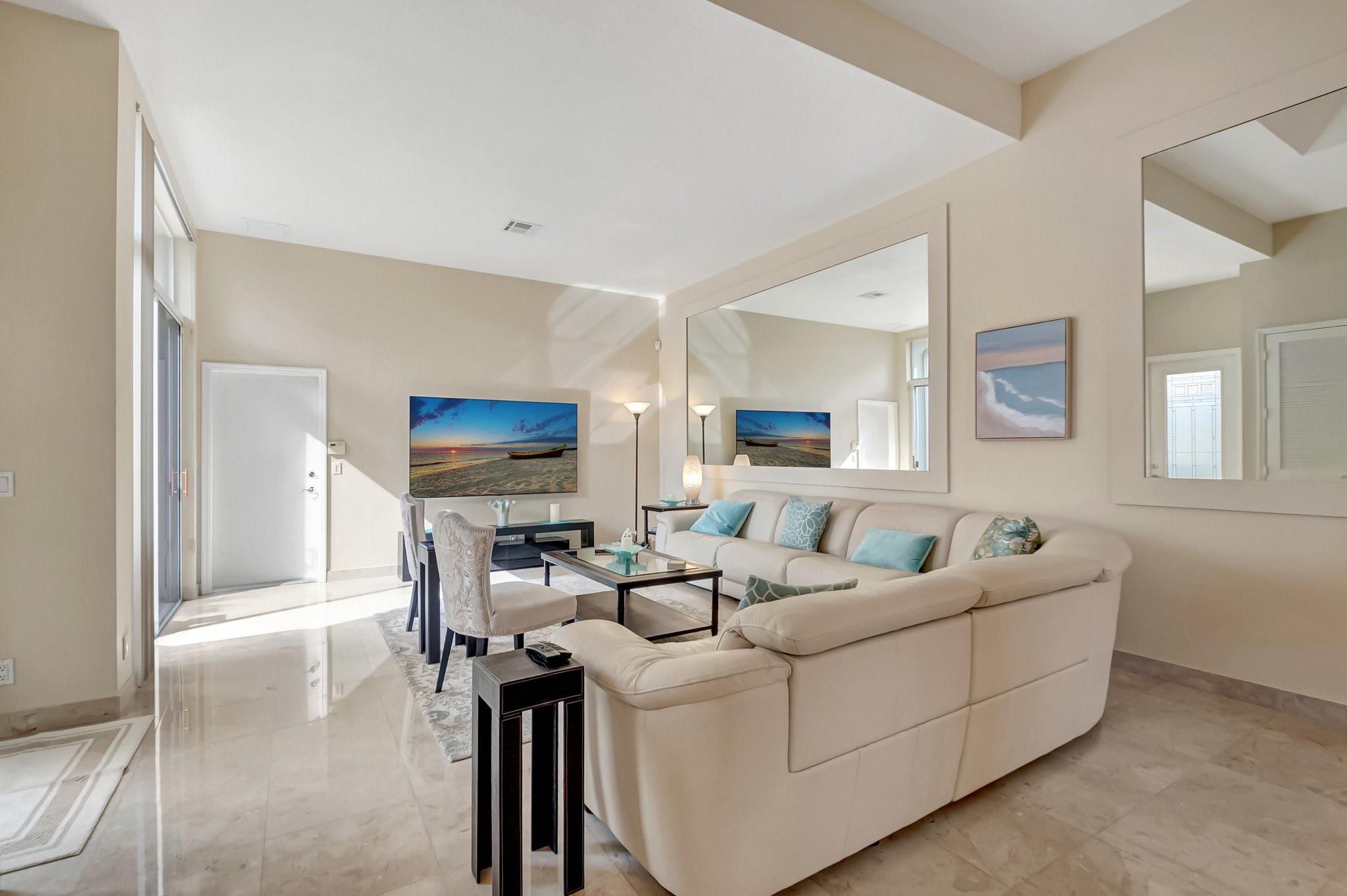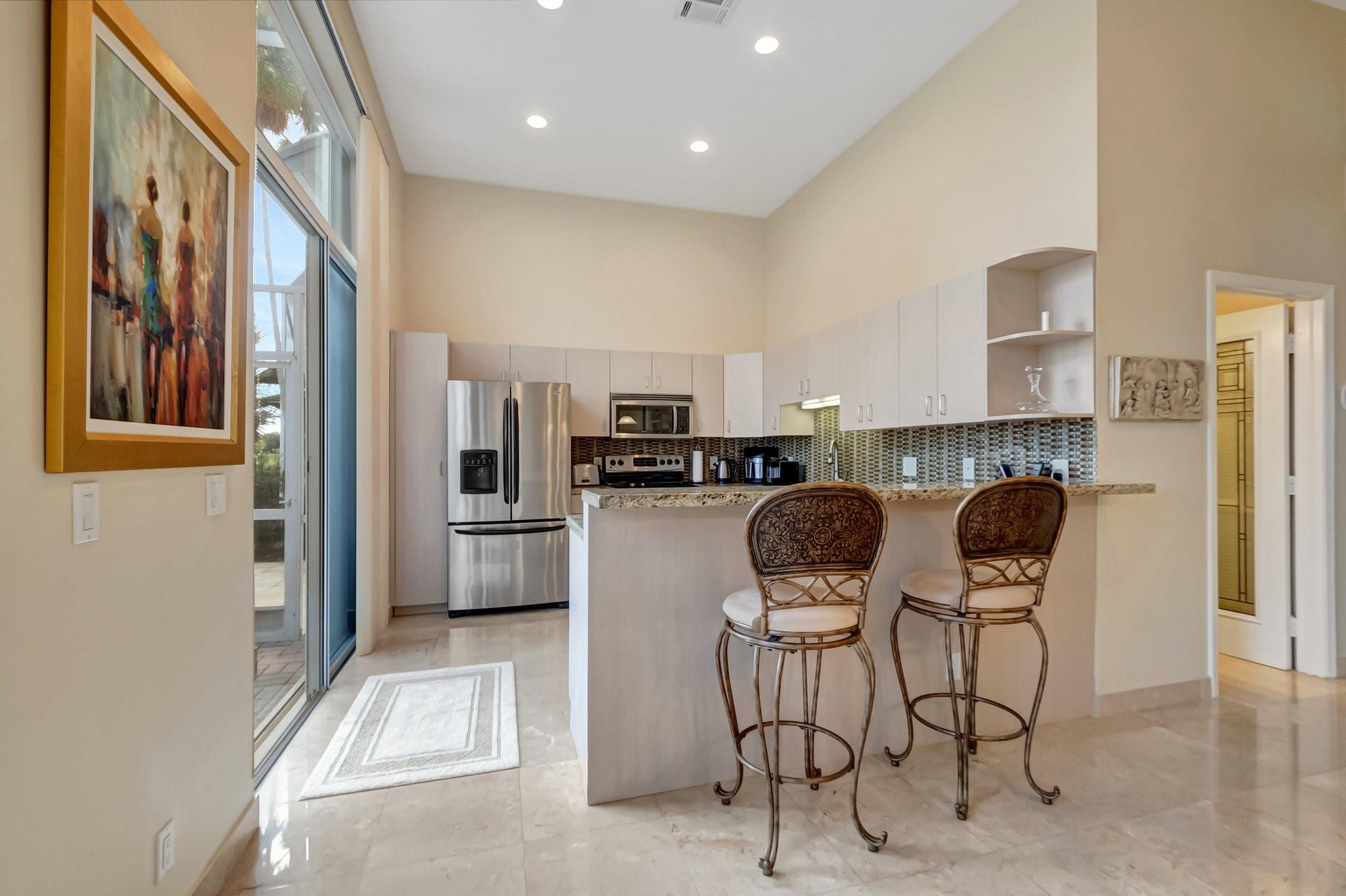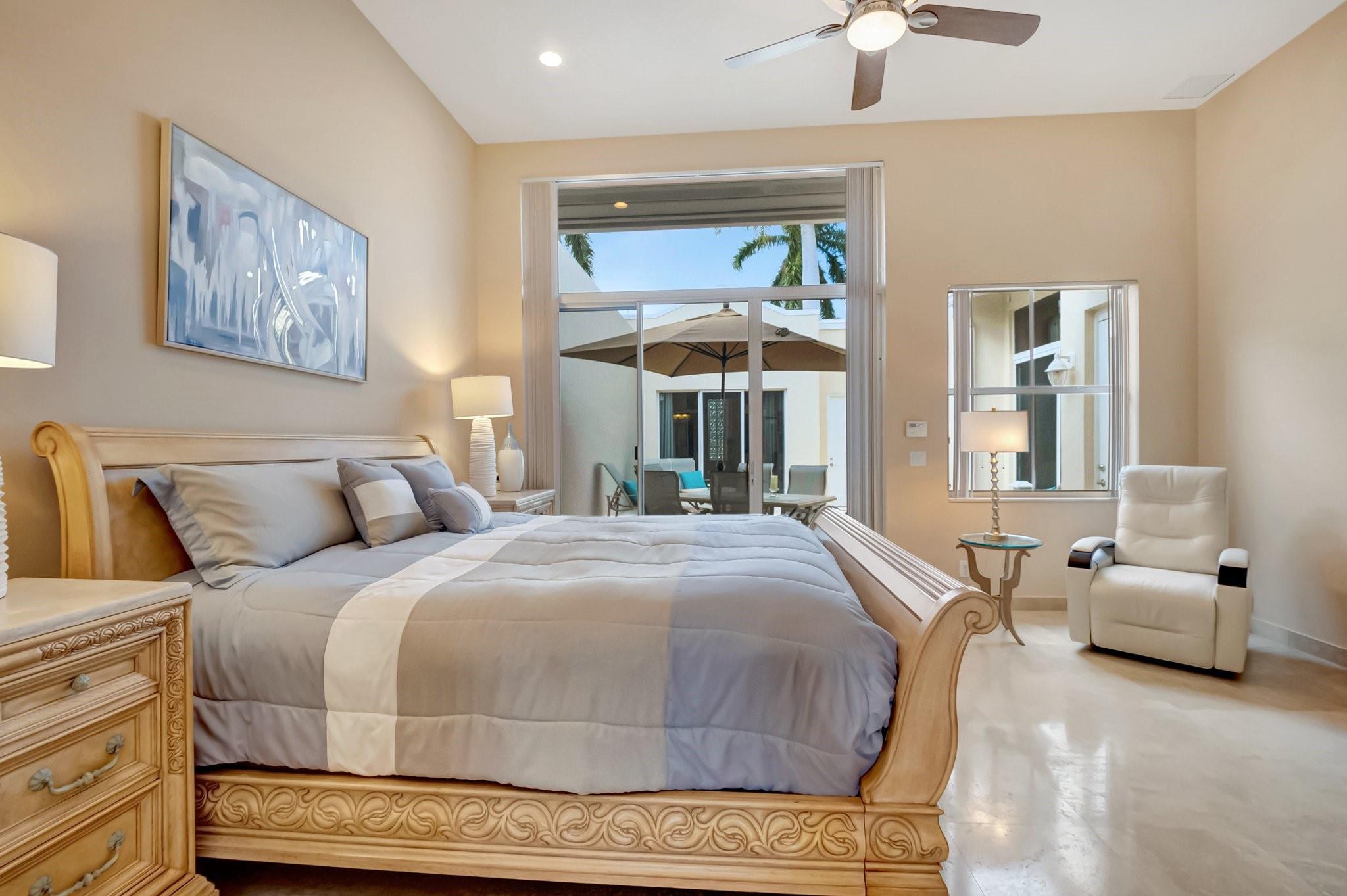 REDUCED 100K FOR QUICK SALE! STUNNING PRISTINE & BRIGHT 1-STORY COURTYARD Townhouse, 2 BEDS/3 BATHS w/GOLF VIEW in desirable GATED Community of BOCA RATON CC, NO MANDATORY MEMBERSHIP* GUEST HOUSE is the 2nd BED* FULLY NICELY FURNISHED & TURNKEY, including 2 TVs (83” & 65”), Wine cellar, Patio sets & ALL* SPLENDID MARBLE floors throughout* OPEN concept w/graceful arch & VOLUME ceilings create SPACIOUSNESS* 2 car-garage attached w/TILED floor, Laundry room & TANKLESS WH* 3 walk-in closets* EVERPURE WATER FILTER SYSTEM for the whole house* HVAC ductwork redone, relocated in ATTIC in garage for QUIETER inside, A/C 2022* HOA $500/mo: Security, Cable, INTERNET, Landscaping & Exterior Paint* Country Club living w/18 hole GOLF course (PAY AS YOU PLAY), onsite restaurant & splendid lush landscaping
