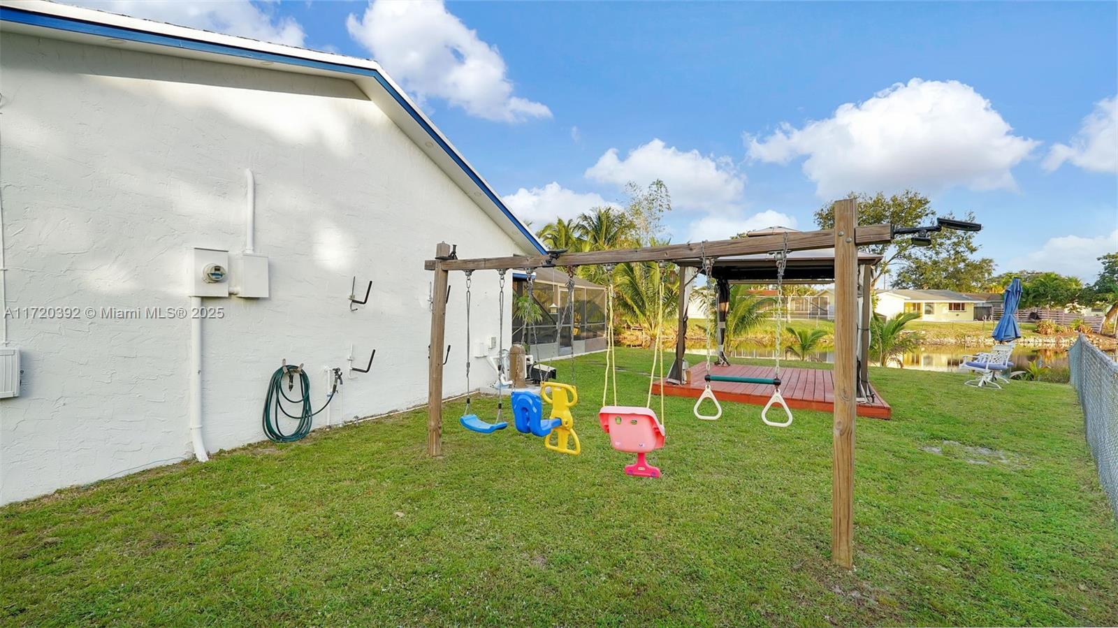 Welcome home to this beautiful and rarely available lake-front pool home situated on an oversized pie-shaped lot with NO HOA! Enjoy your morning coffee or dining alfresco with breathtaking lake views! Outdoor living is the highlight of this home with ample space for entertaining guests & enjoying, from your spacious backyard equipped with large glistening pool, hot tub, outdoor bar, pergola, children's play area, to the relaxing updated wood front porch. Featuring updated laminate flooring, high ceilings, crown molding, updated appliances & more. The home is equipped with High impact windows & doors or accordion shutters for peace of mind. NO HOA with ample space on either side of home for a boat or RV! Close to shopping, highways, parks & schools! You do not want to miss this one!