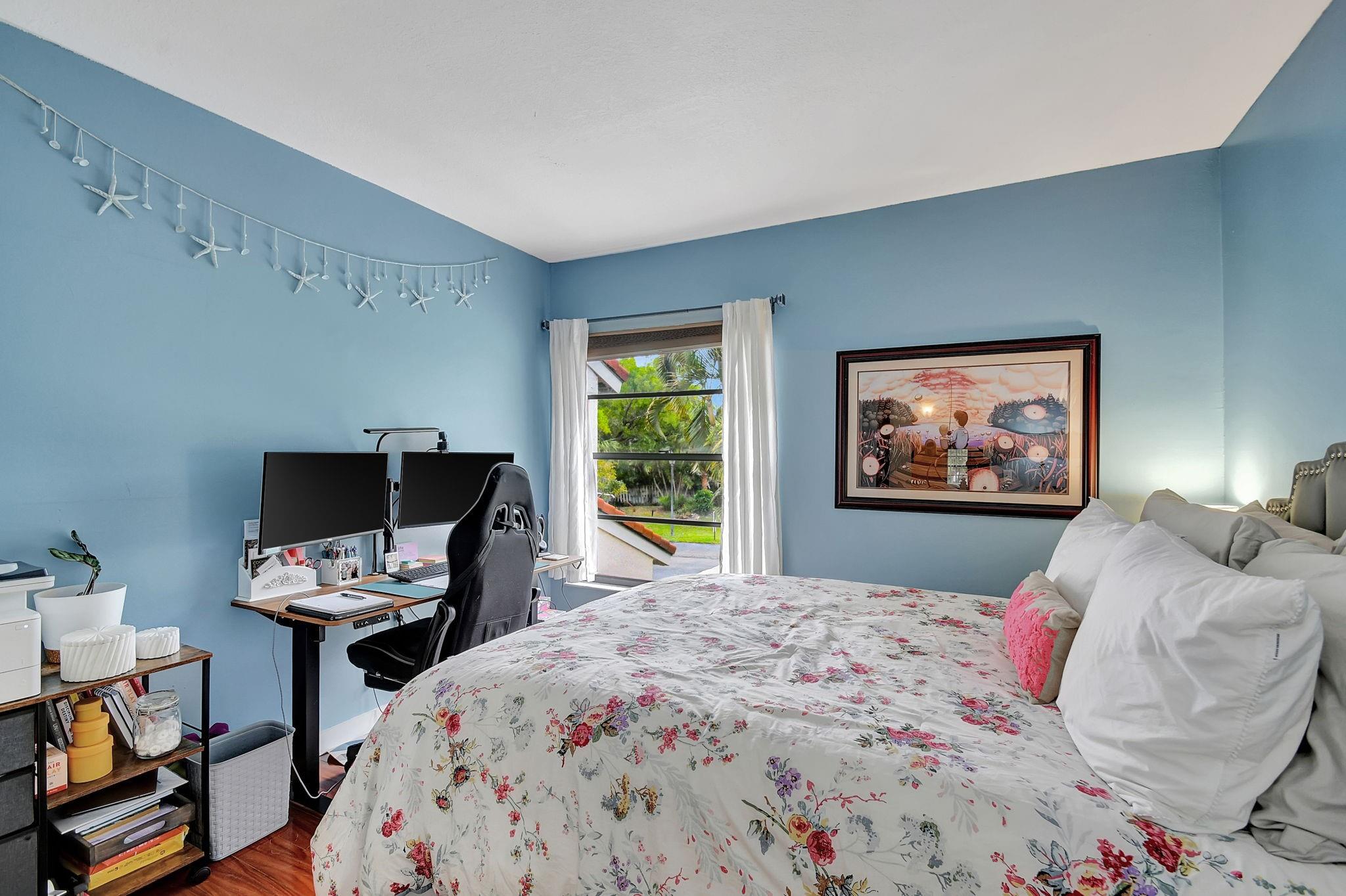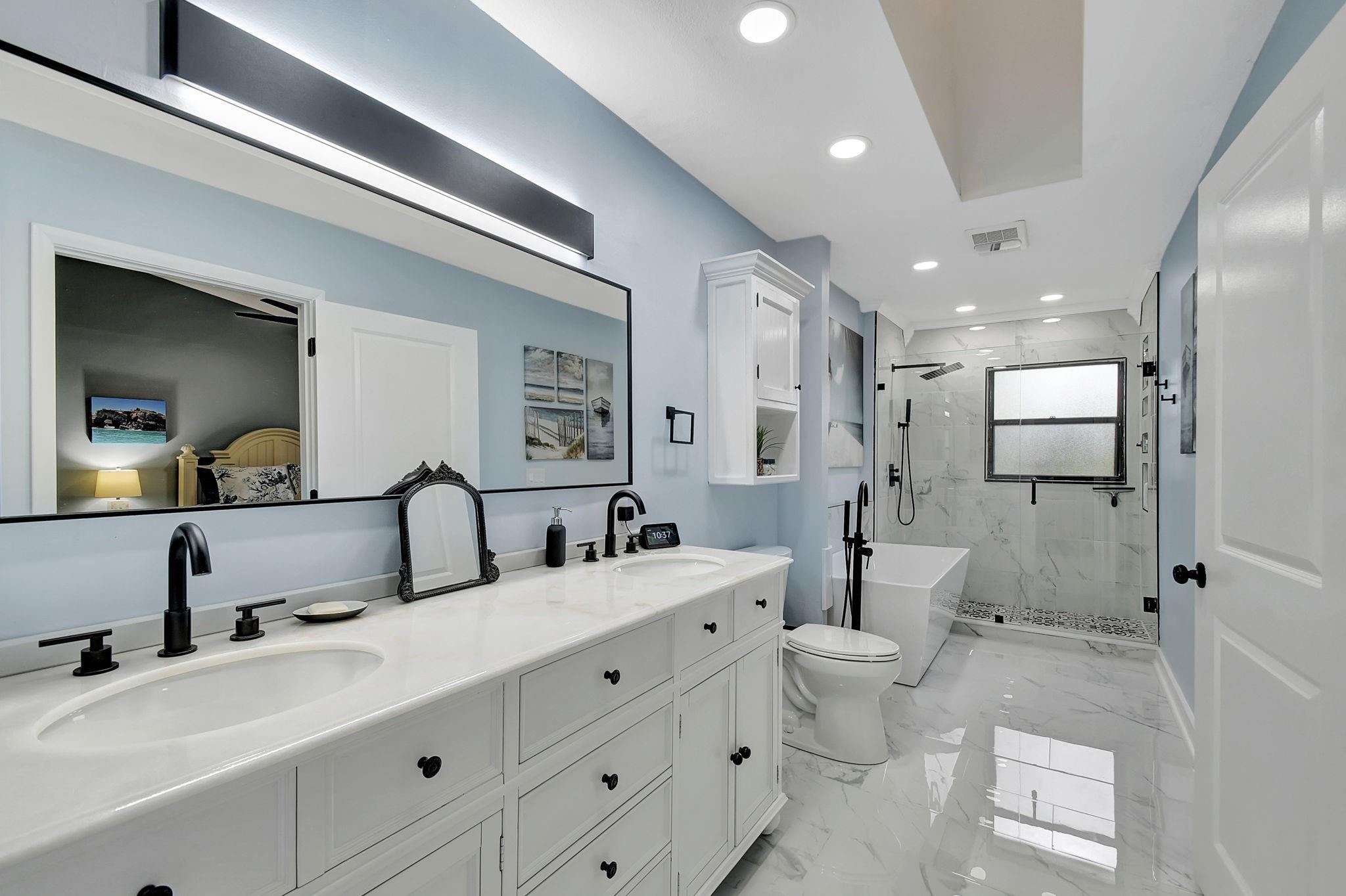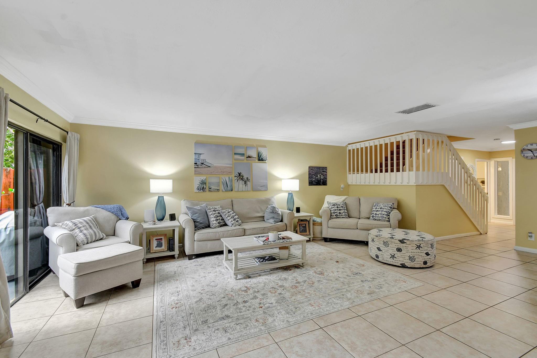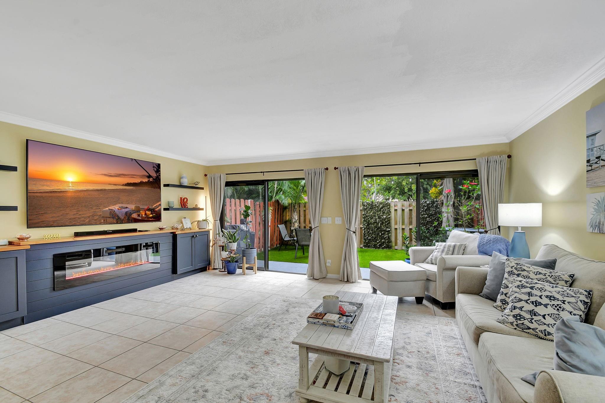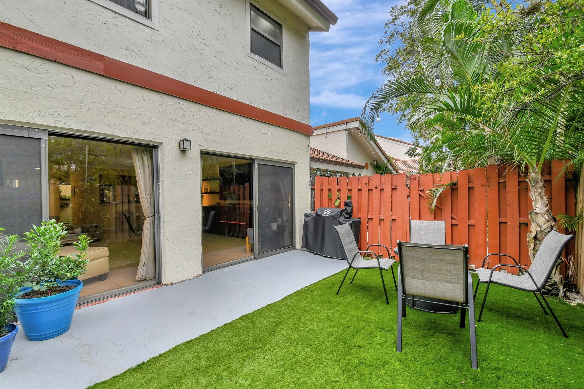 Gorgeously remodeled townhouse with 3 bedrooms, 2 full bathrooms and a a half bath downstairs. Park on your driveway and in the one car garage which connects to a lovely courtyard for privacy and natural light. Inside the home you'll love the enormous living room with a fenced in backyard complete with astroturf for easy maintenance. Upstairs you have three bedrooms and two wonderfully remodeled bathrooms. The primary bathroom is like a personal spa with tons of closet space and skylight. The community is small and the HOA covers the roof, exterior insurance, pool, clubhouse, pest control, landscaping and lawn, cable and internet, water, and trash. You'll love the location near downtown WPB, WPB airport, and the Tanger Outlet shopping!
