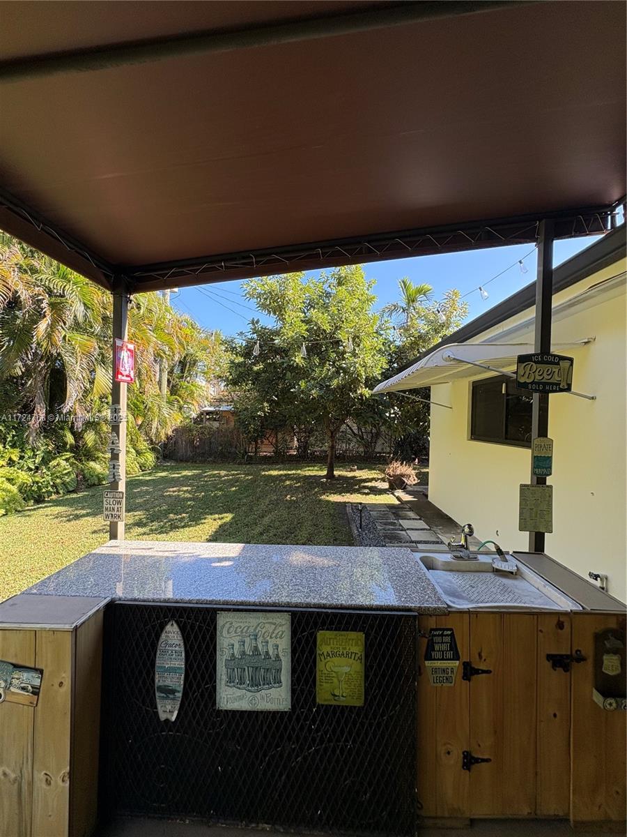 This stunning 3 bedroom with 2 and a half bathroom home offers an open split floor plan with elegant floors throughout. The oversized kitchen features quartz countertops, stainless steel appliances, and high-end wood cabinetry. Enjoy a huge family room, formal dining room, and a versatile media room that can serve as a fourth bedroom. The hurricane-impact windows and garage door provide added security. Relax in the private backyard, complete with a tiled screened porch, outdoor kitchen, and lush banana and avocado trees. Located just minutes from the beach and Gulfstream Park, this home combines comfort, style, and convenience.