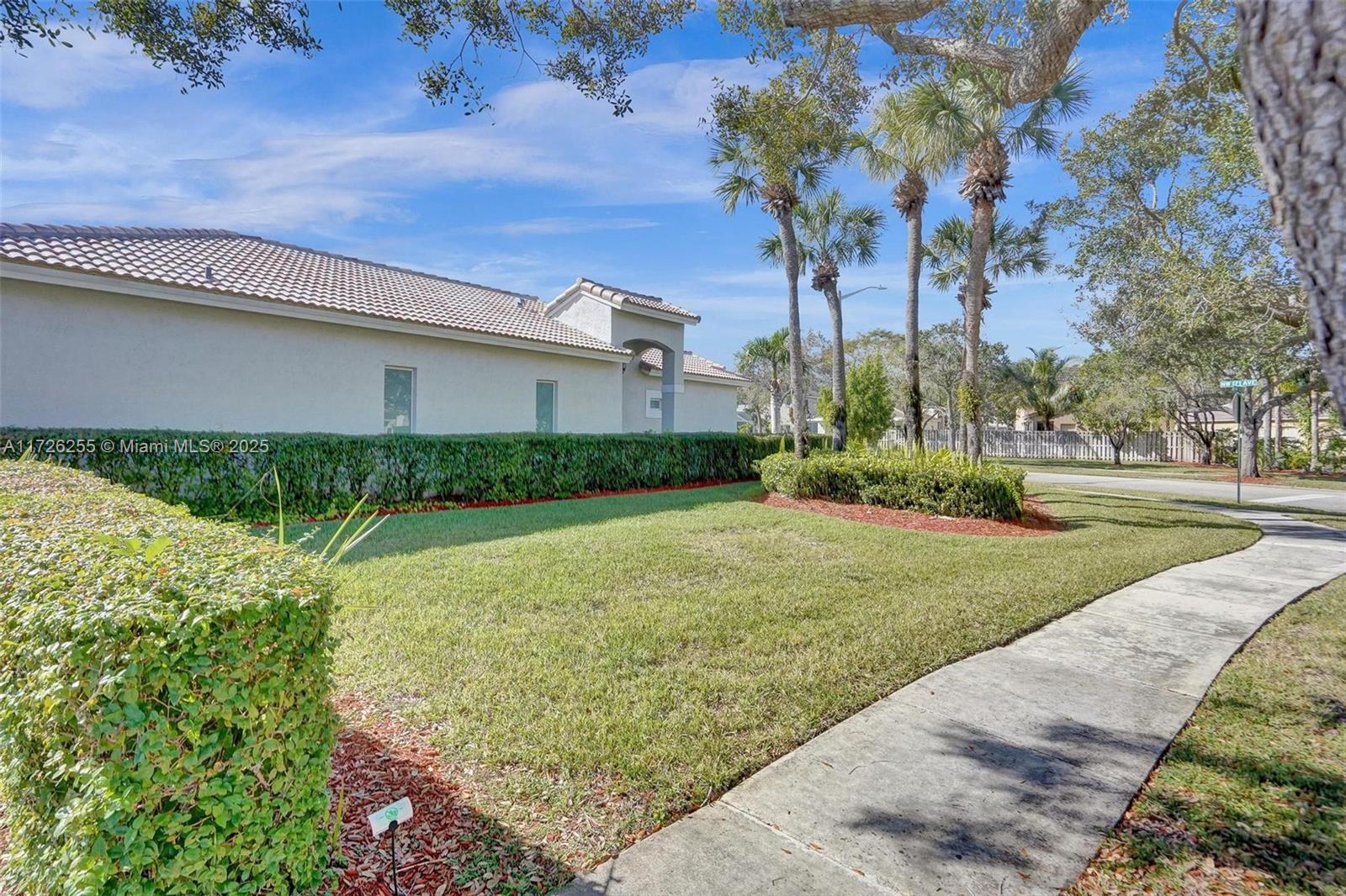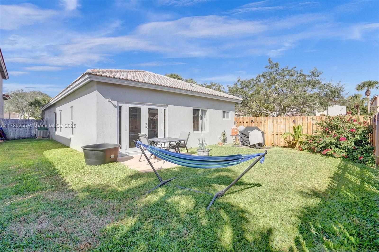 This charming 3-bedroom, 2-bathroom single-story home boasts modern upgrades throughout. 2020 brought a new roof, impact windows, and stylish French doors that lead to a beautifully landscaped fenced-in yard with twilight lighting. The renovated kitchen features sleek finishes, while the upgraded primary bathroom offers a luxurious retreat. Outdoor lighting enhances the curb appeal, creating a welcoming ambiance. The low HOA fee provides exceptional value, covering 24/7 security, internet, DirectTV and lawn care. Located in a prestigious guard-gated community with A+ rated schools, this home offers access to newly remodeled resort-style amenities, including a clubhouse, pools, fitness center, tennis courts, and playgrounds. Enjoy a lifestyle of convenience, comfort, and peace of mind.