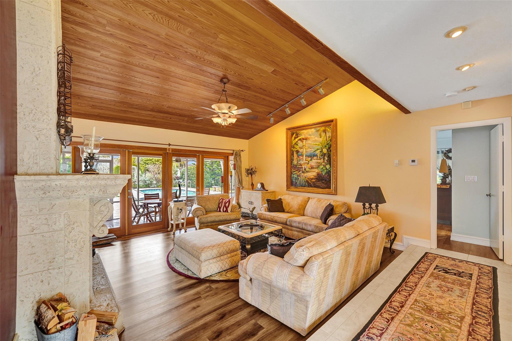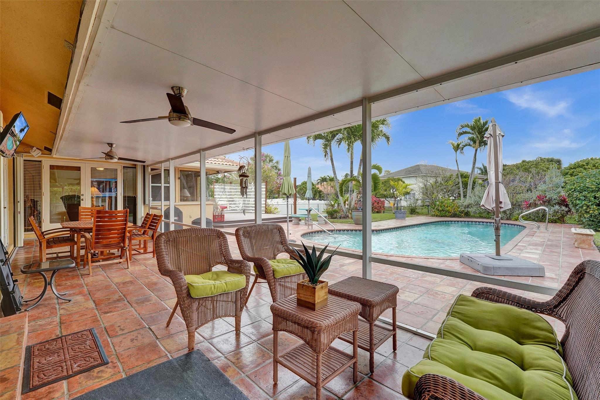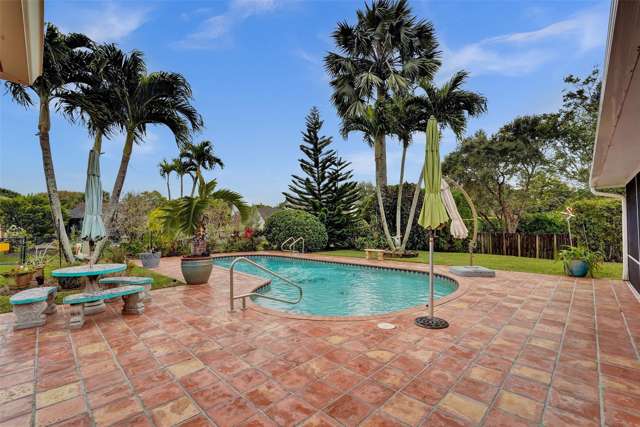 This charming three-bedroom, two-bathroom Plantation Acres home is located at the end of a cul-de-sac with a large driveway providing ample parking for you and your guests. Step inside to discover a welcoming open floor plan with the kitchen featuring granite countertops and upgraded cabinets, and an expansive primary bedroom and bathroom. Enjoy the outdoor living spaces with a fenced backyard and a custom Zen garden with lush turf surrounding a 100-gallon fishpond, newly installed TimberTech patio deck, an enclosed large screened patio space overlooking the custom-designed saltwater pool. This home also includes a 1000-gallon built-in generator, hurricane doors and windows, newer HVAC systems ensuring peace of mind. This property is perfect for both relaxation and entertaining!